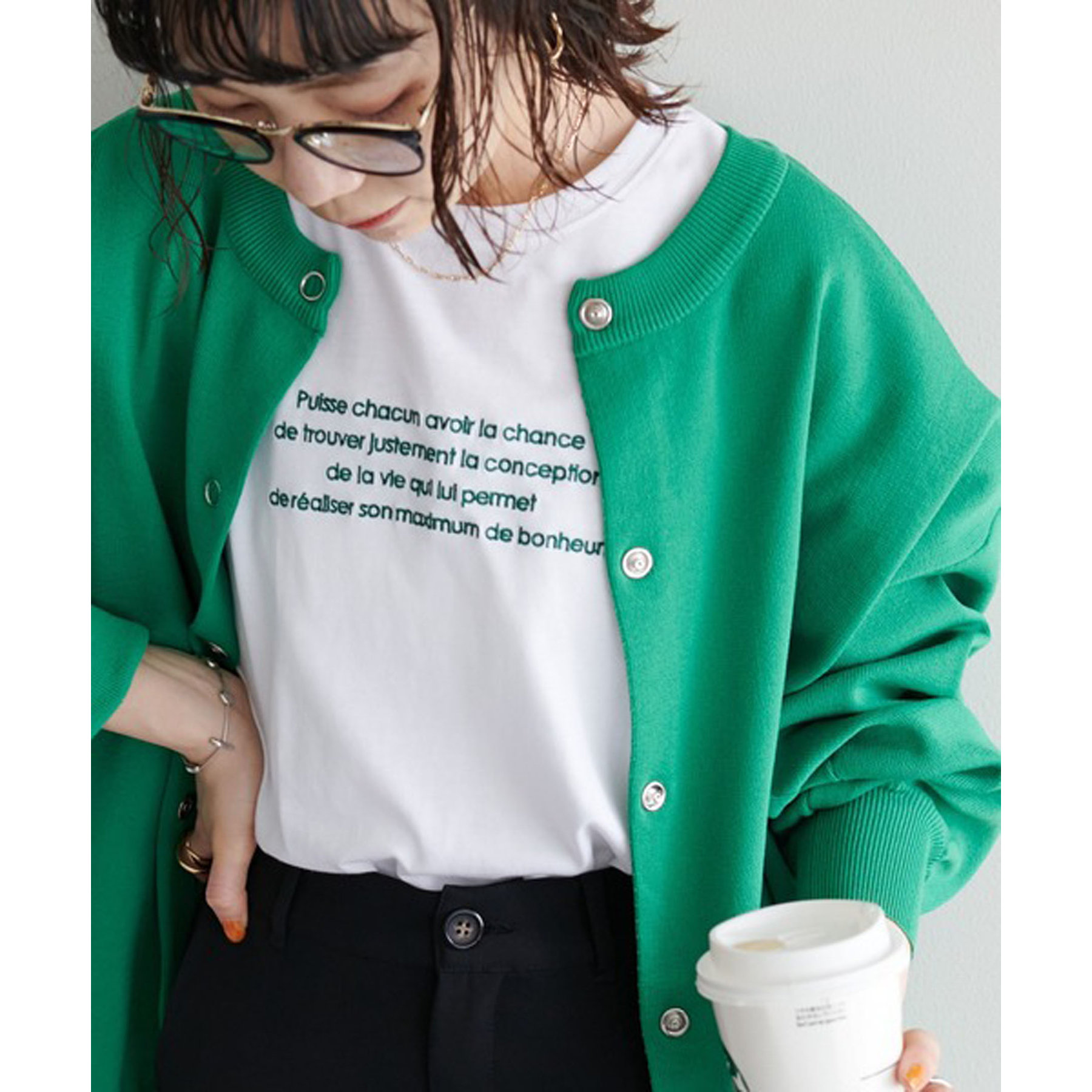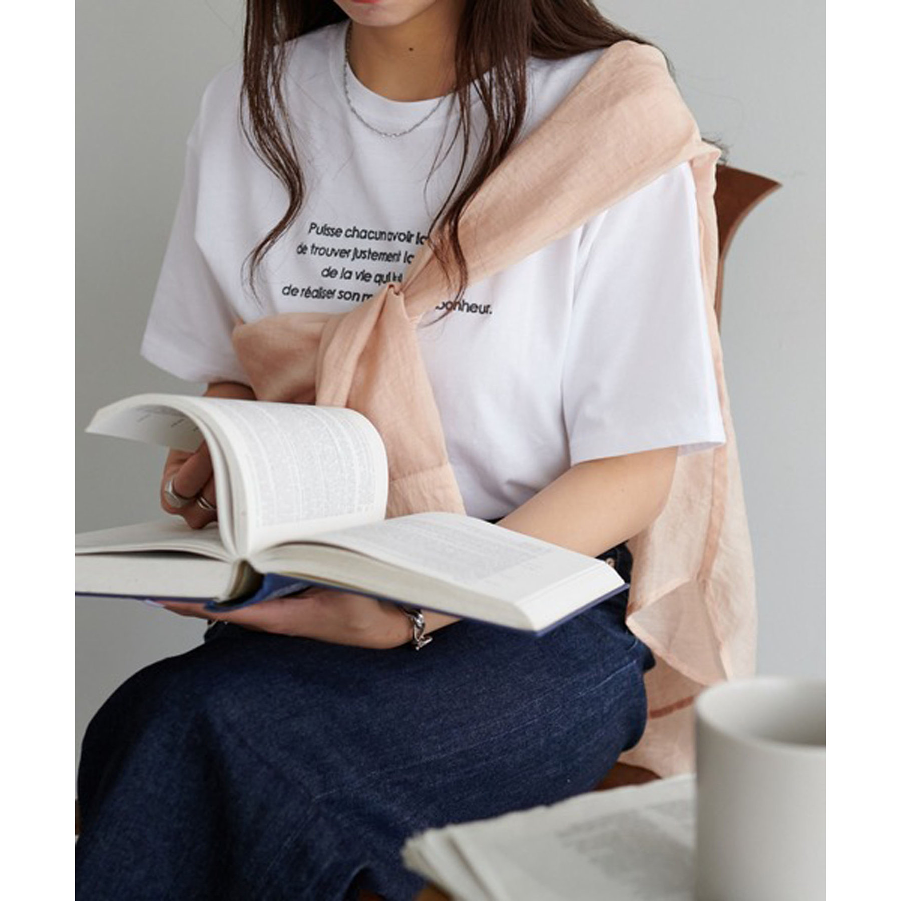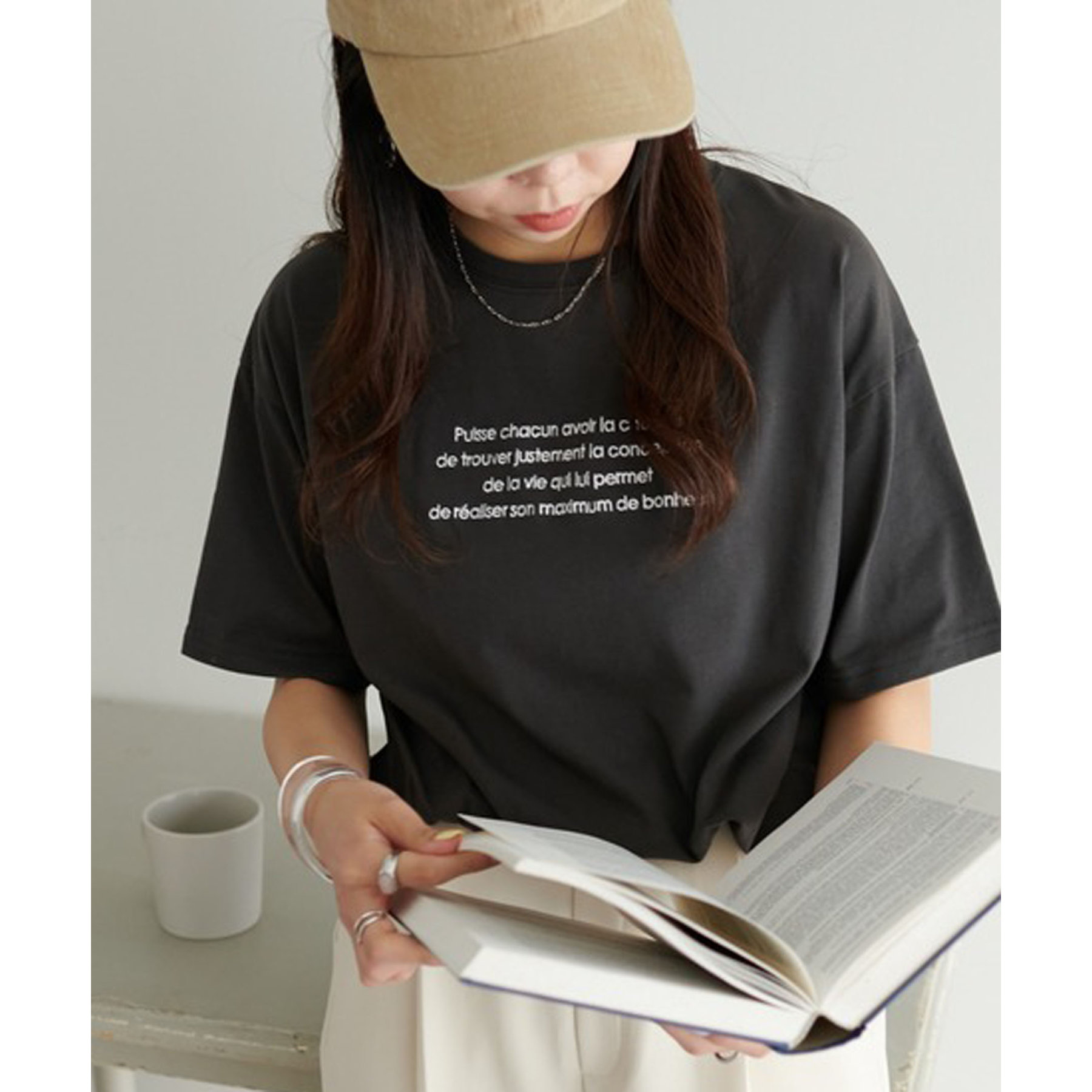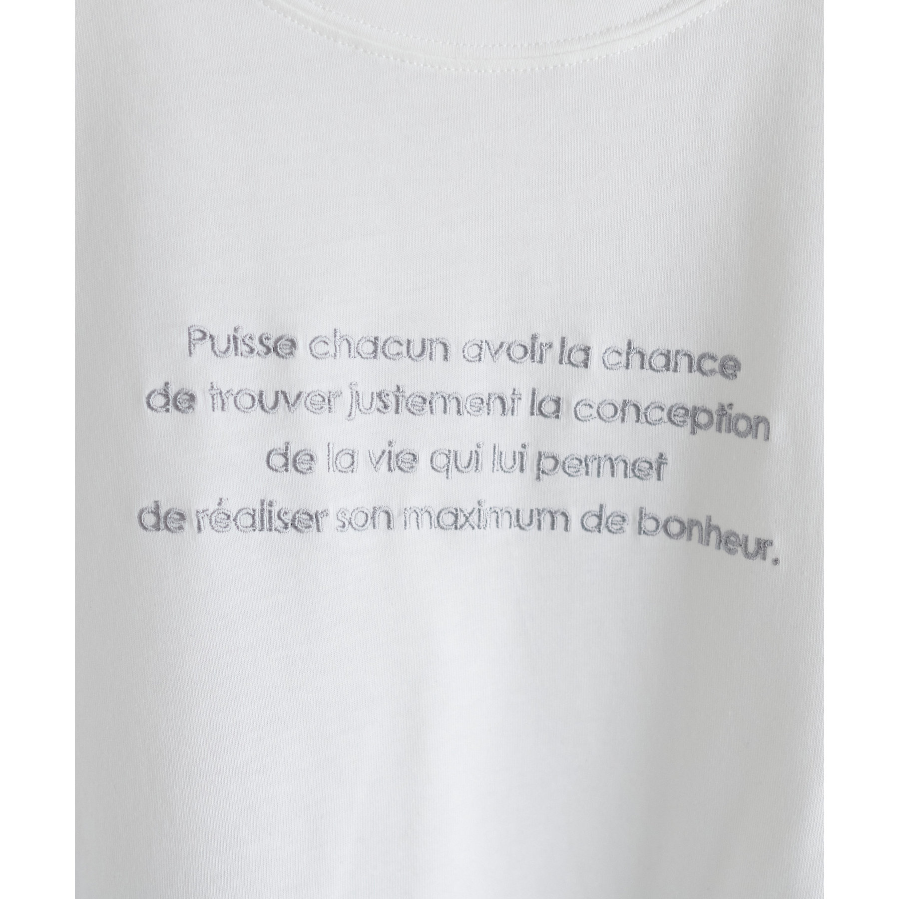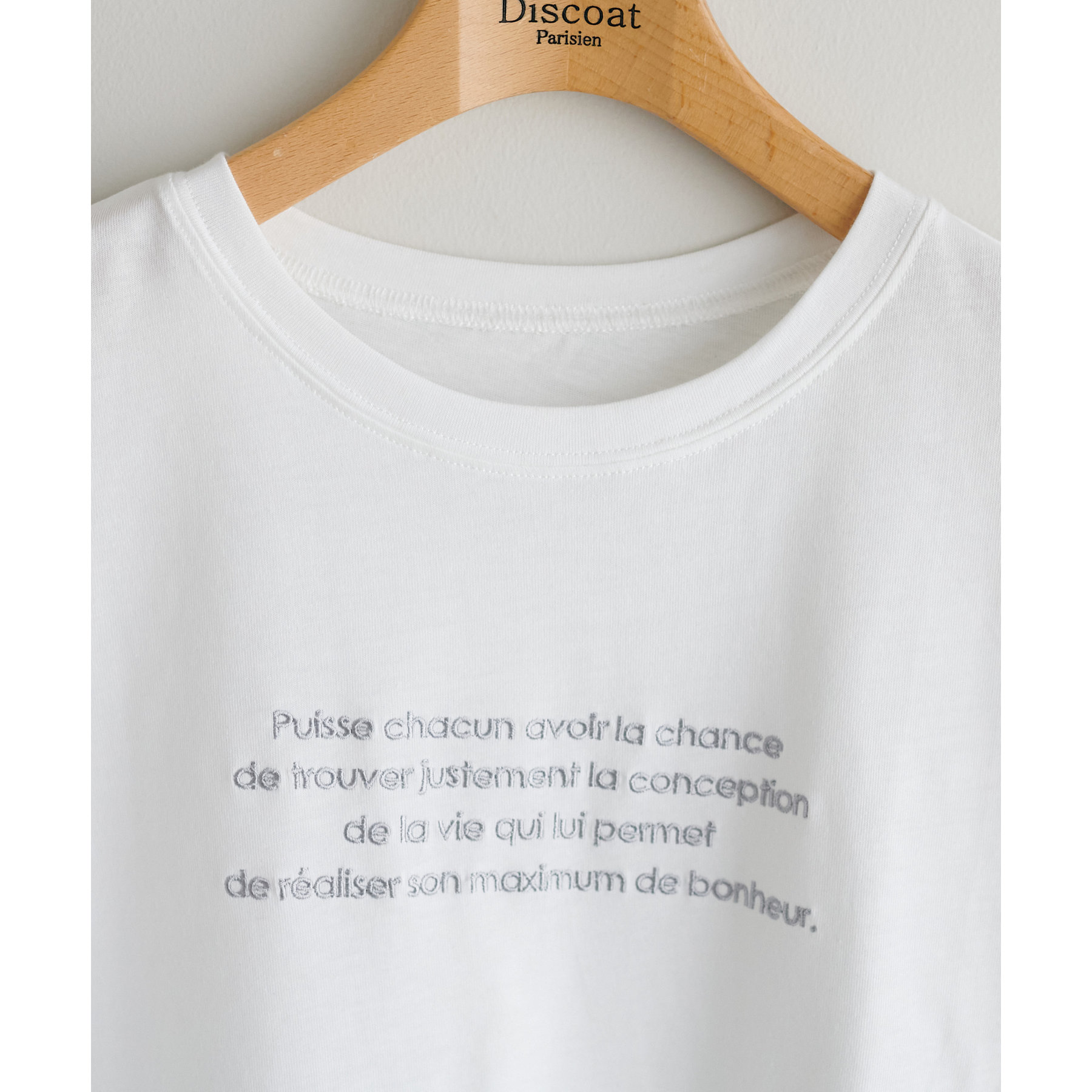 メッセージ性がありながらもコーディネートワンポイントになる、フロントのロゴ刺繍が魅力のデザイン。一枚着でも、インナーとしても幅広く着用ができ、無地Tシャツに比べトレンド感ある着こなしが楽しめます。程よくゆったりした女性らしいシルエットで、年代を問わずワードロープにおすすめです◎