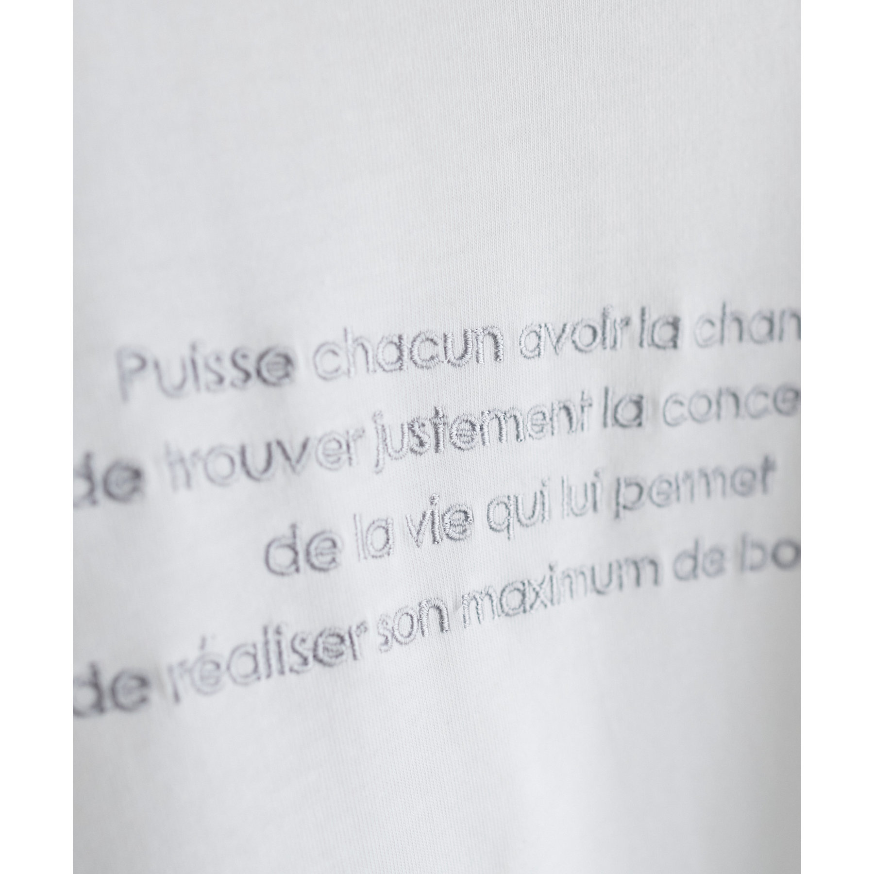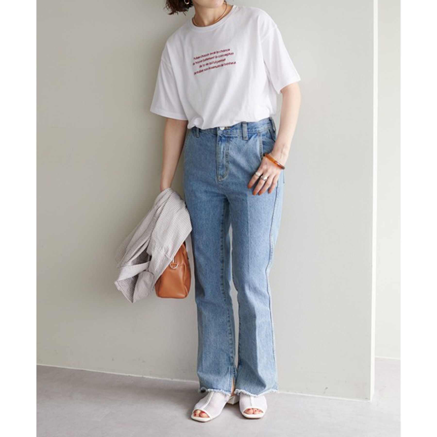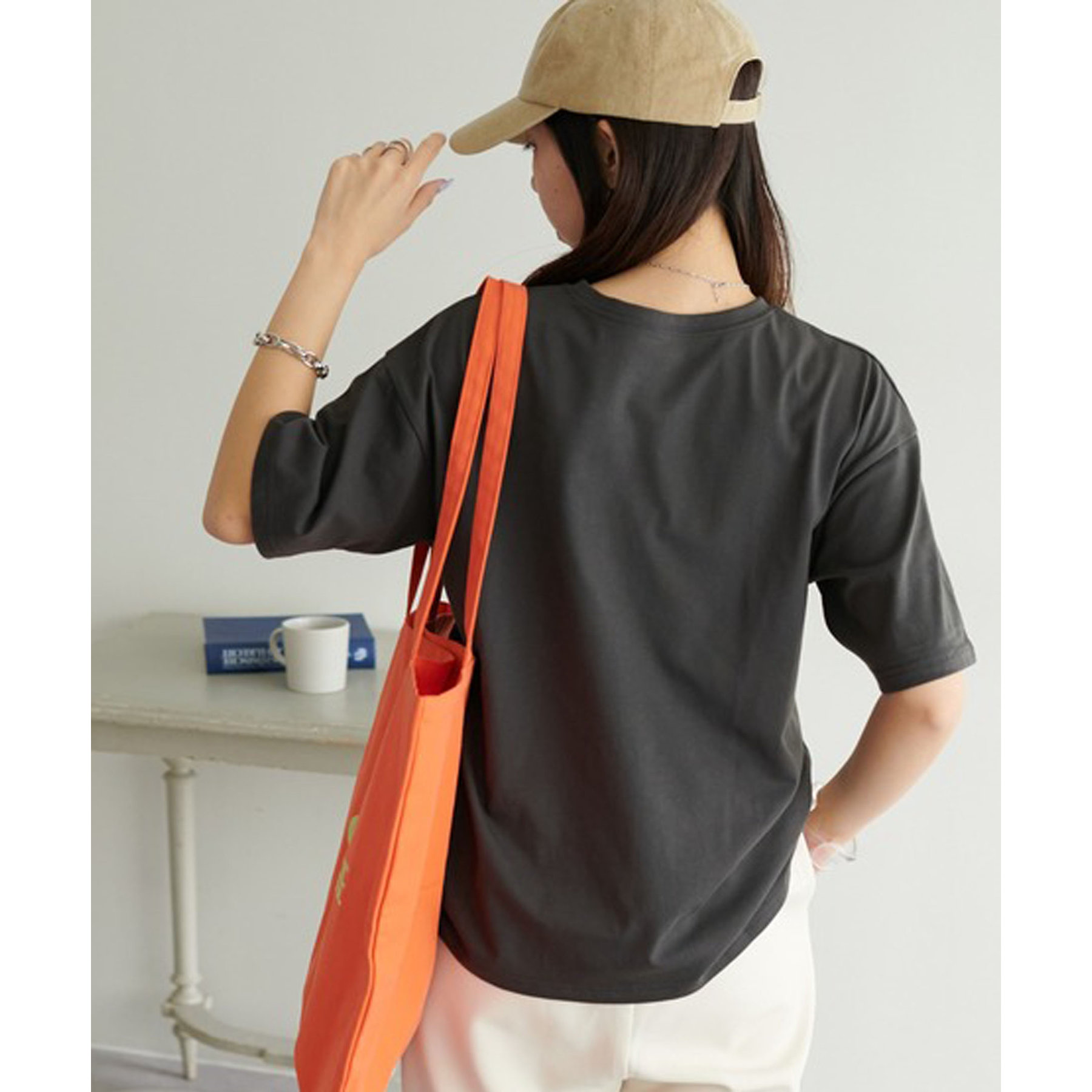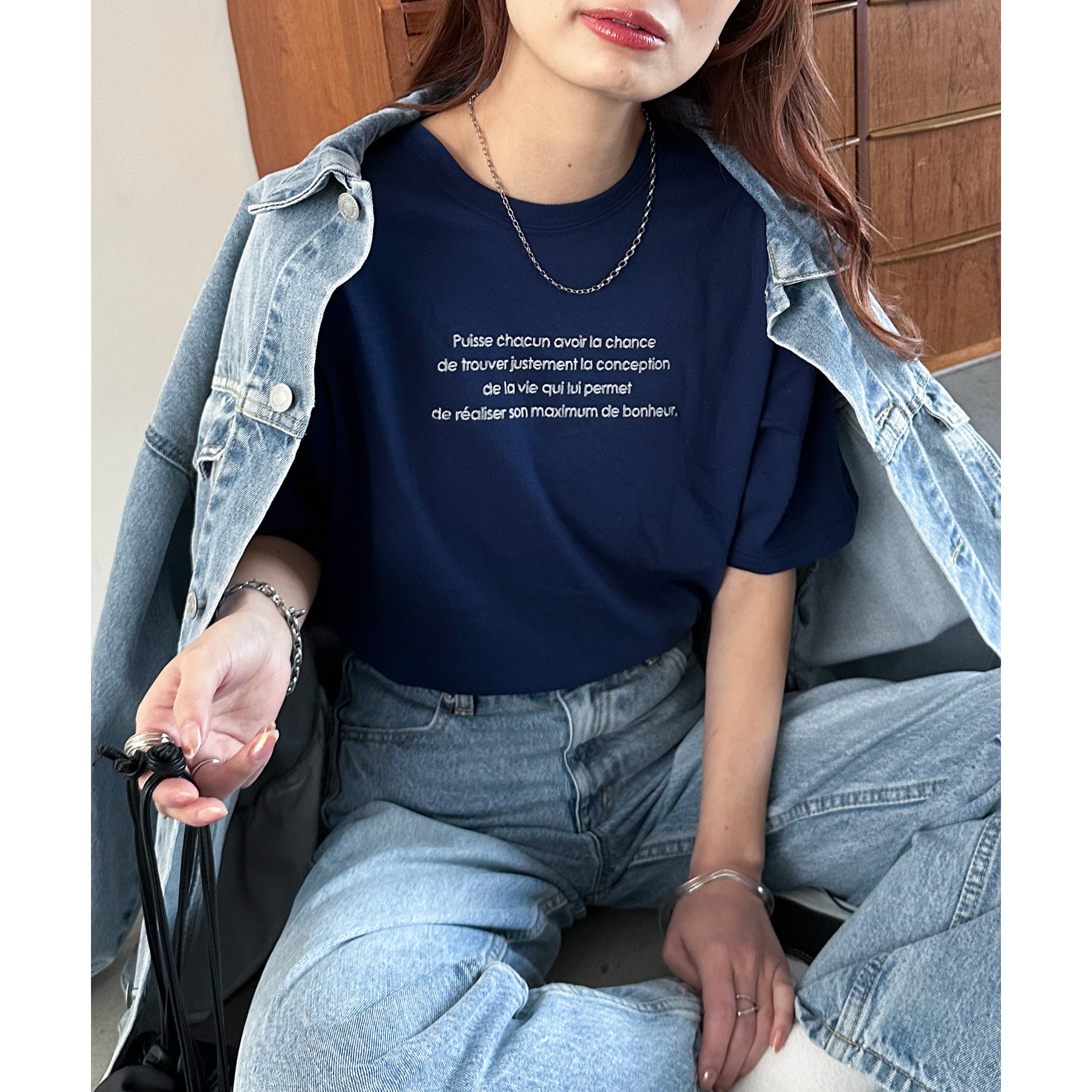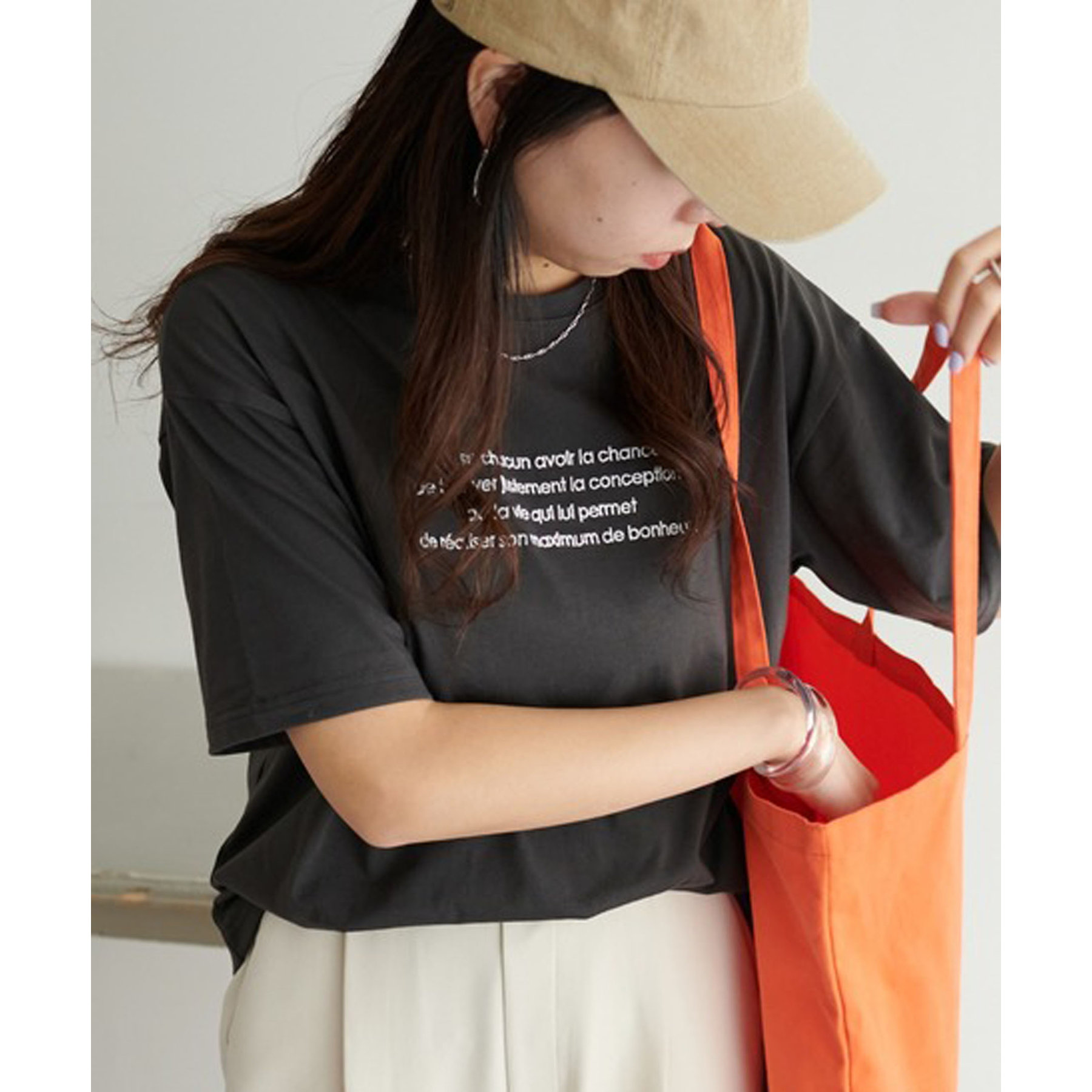 メッセージ性がありながらもコーディネートワンポイントになる、フロントのロゴ刺繍が魅力のデザイン。一枚着でも、インナーとしても幅広く着用ができ、無地Tシャツに比べトレンド感ある着こなしが楽しめます。程よくゆったりした女性らしいシルエットで、年代を問わずワードロープにおすすめです◎