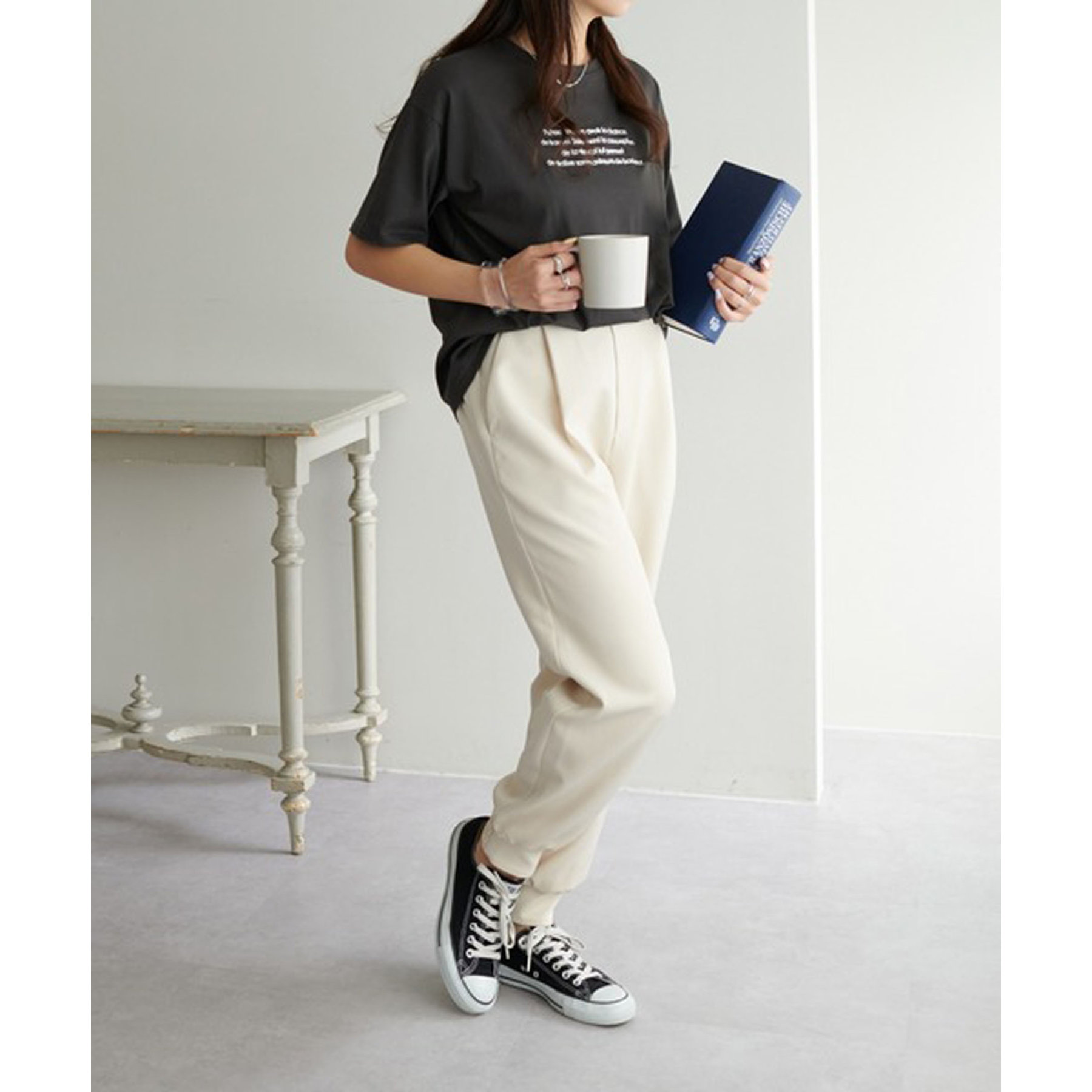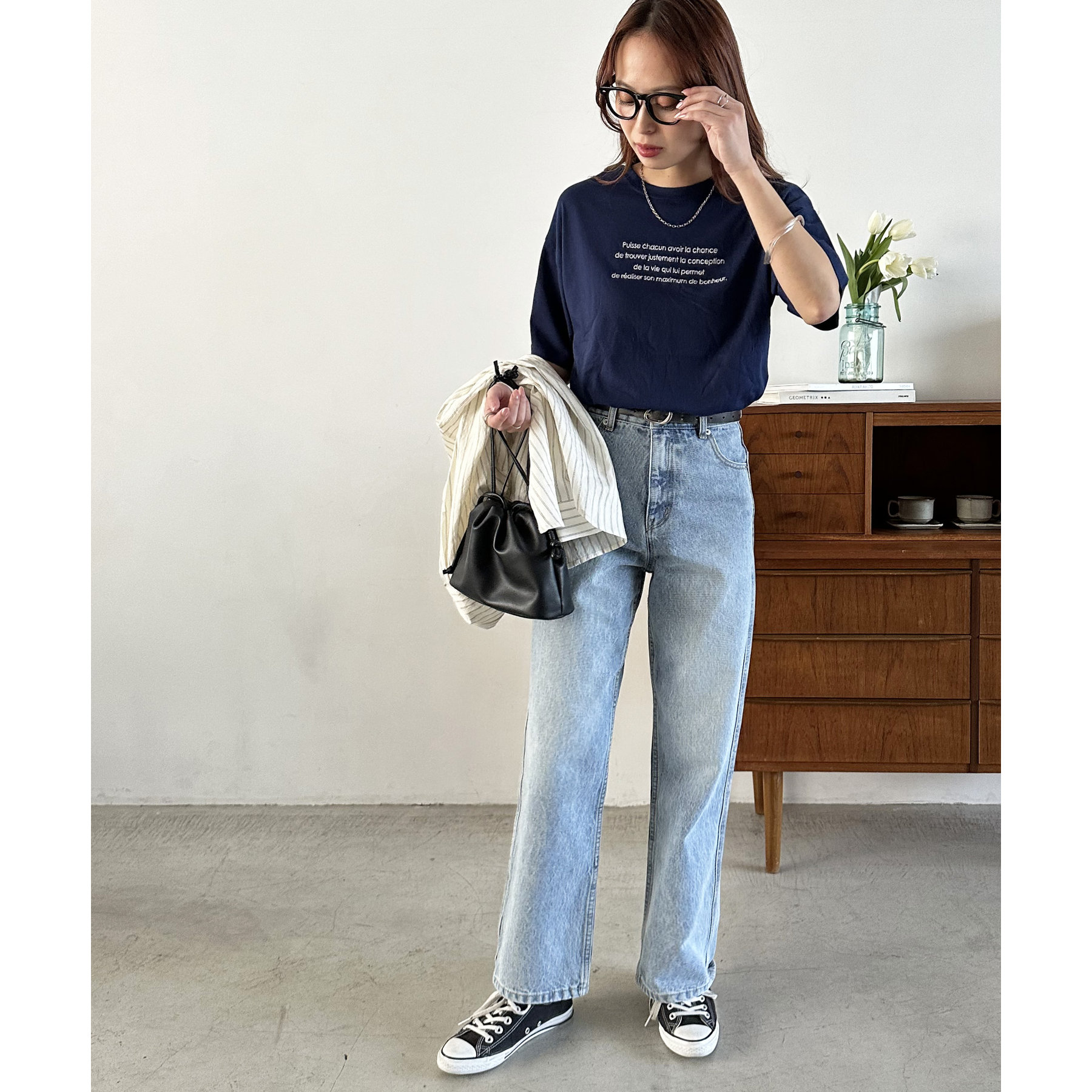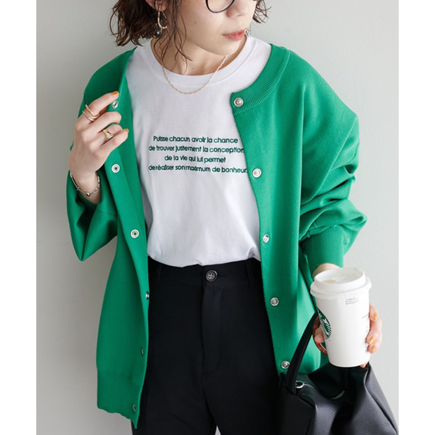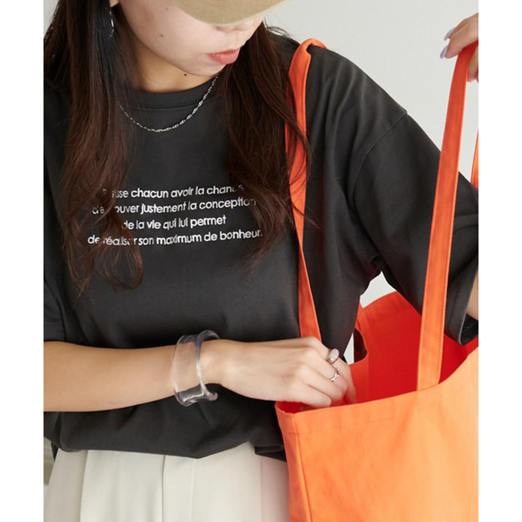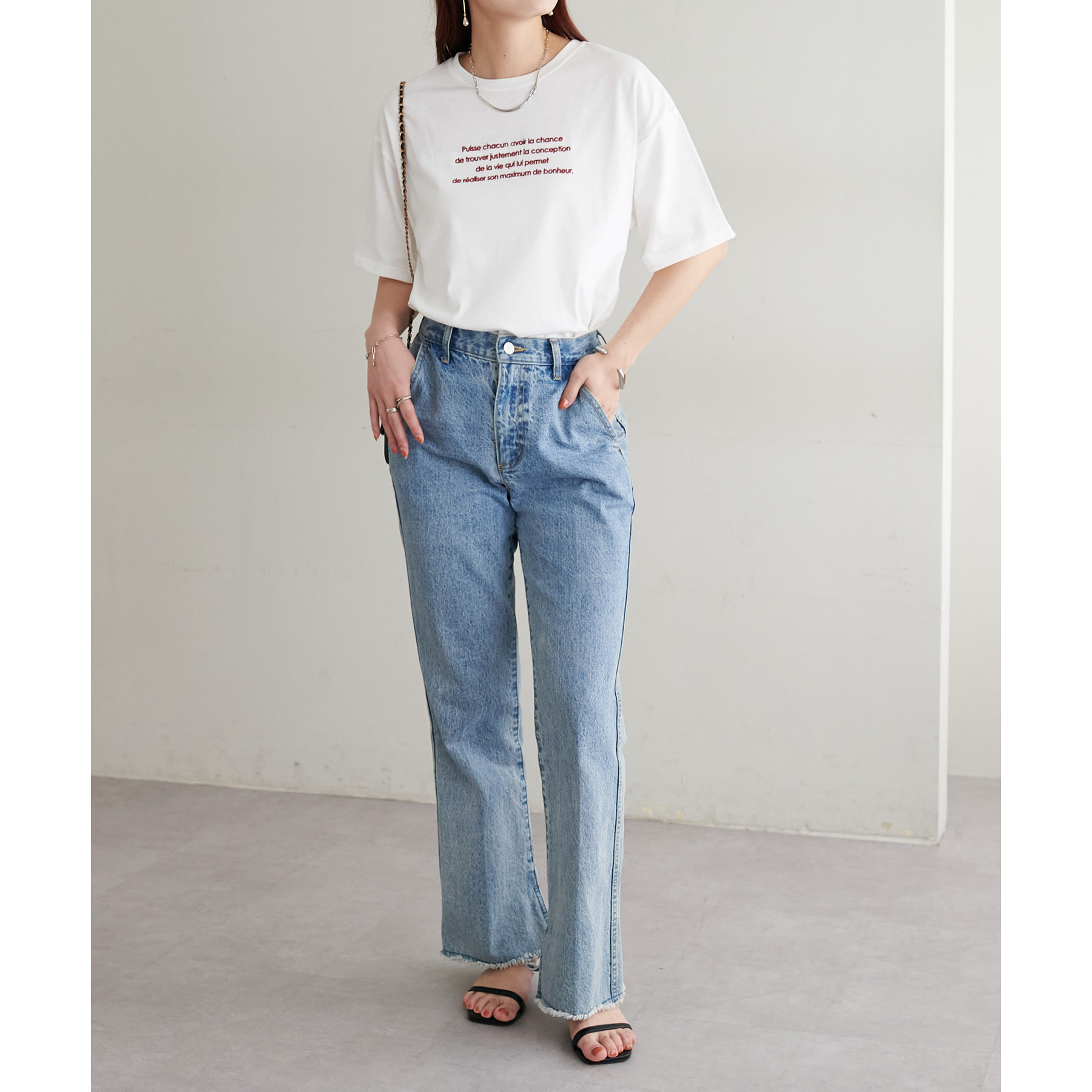 メッセージ性がありながらもコーディネートワンポイントになる、フロントのロゴ刺繍が魅力のデザイン。一枚着でも、インナーとしても幅広く着用ができ、無地Tシャツに比べトレンド感ある着こなしが楽しめます。程よくゆったりした女性らしいシルエットで、年代を問わずワードロープにおすすめです◎