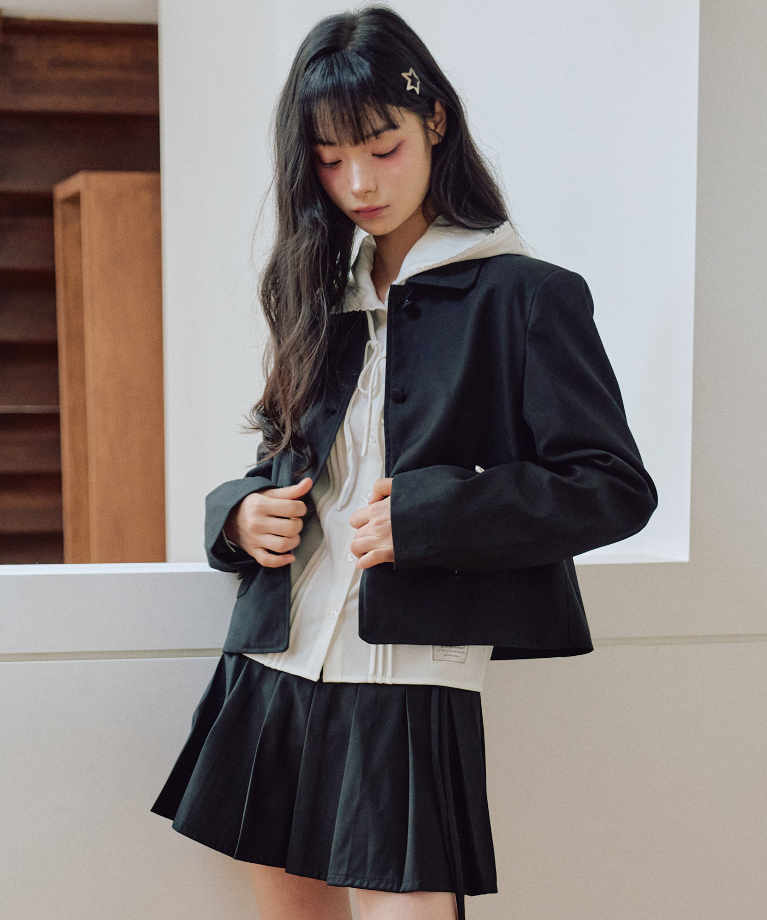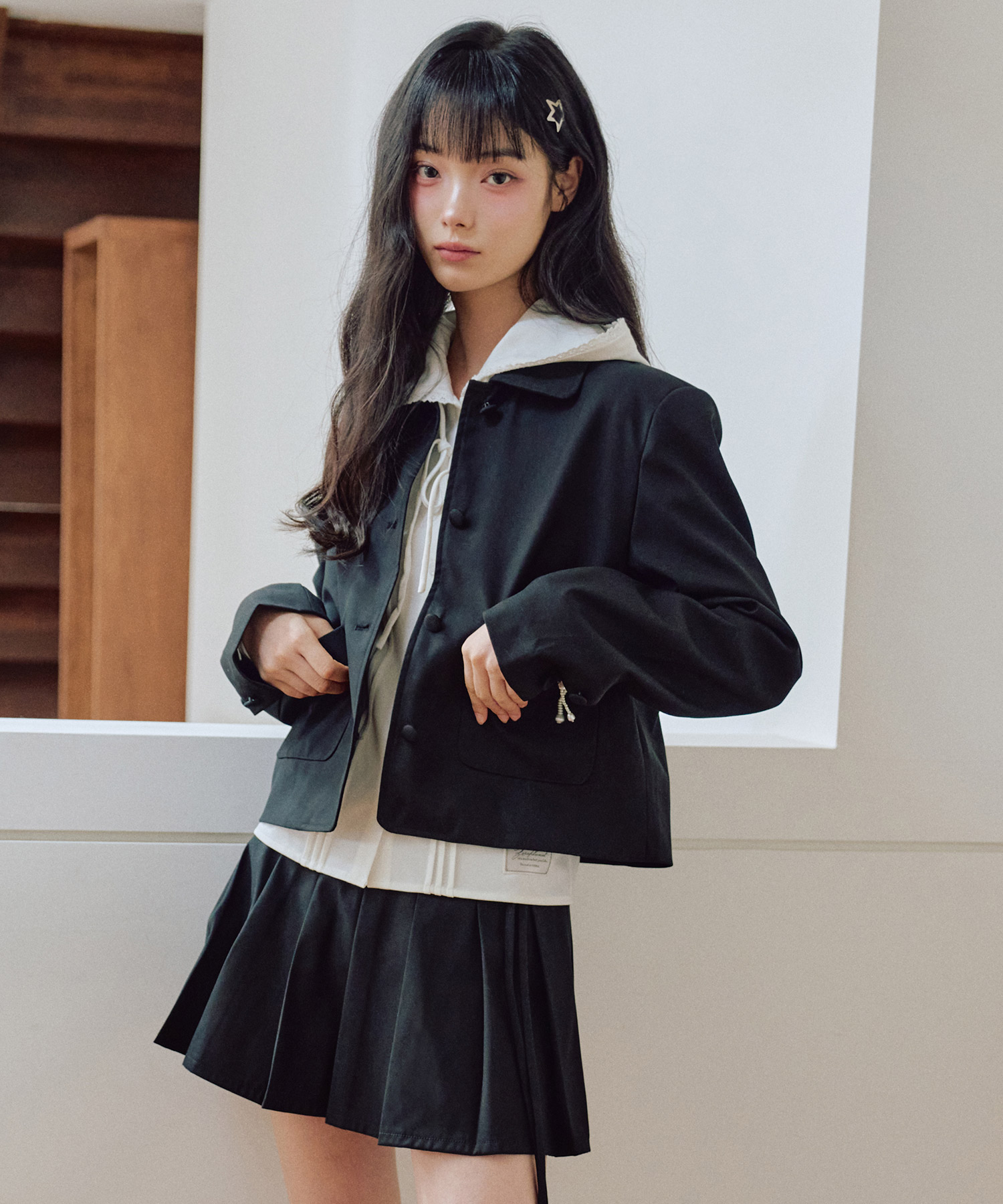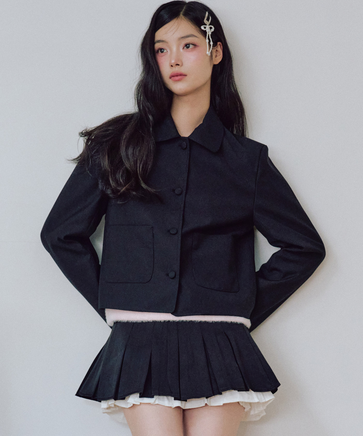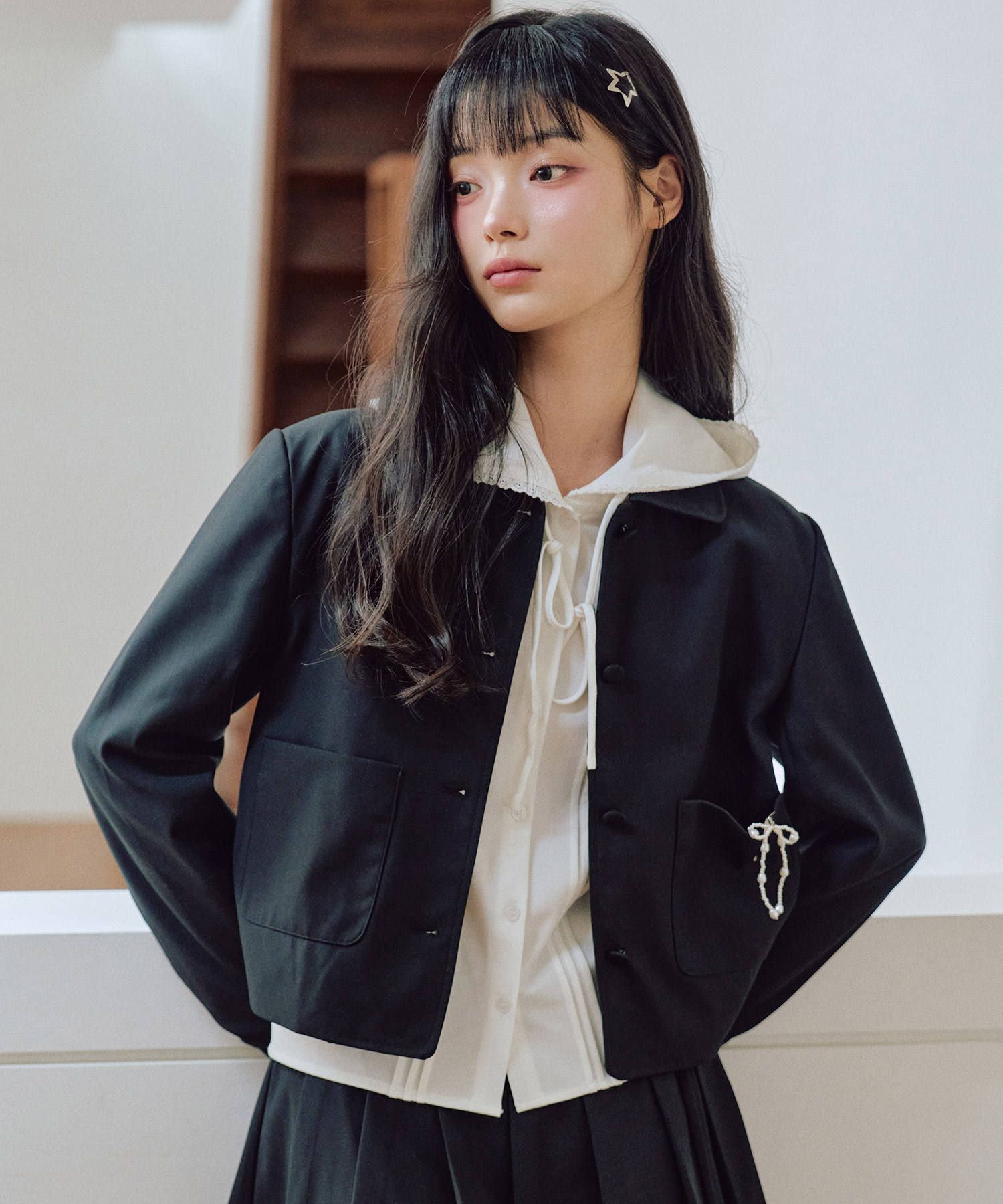 走ったリボンショートジャケット [BLACK]