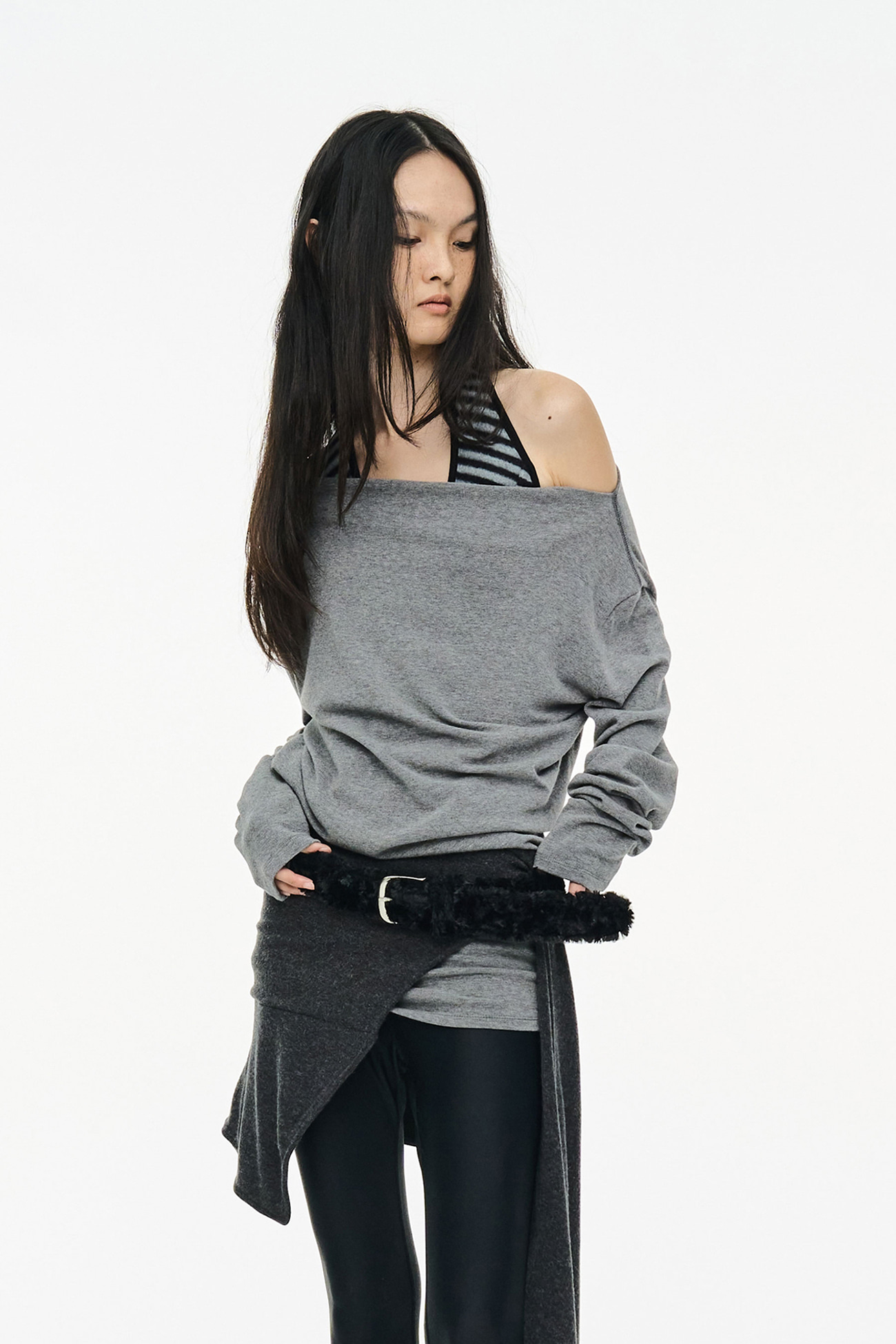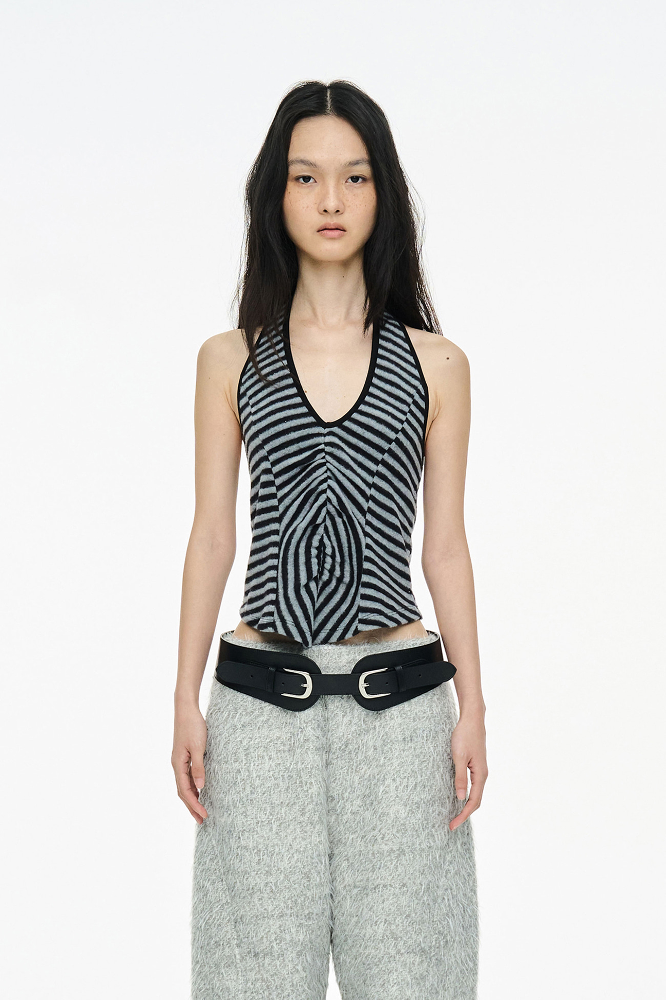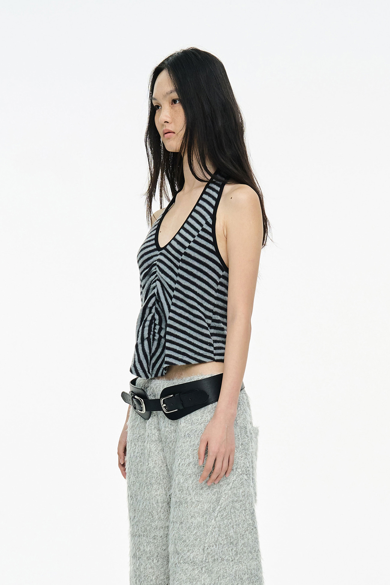 [EXCLUSIVE] FLUFFY STRIPE SLEEVELESS / BLACK