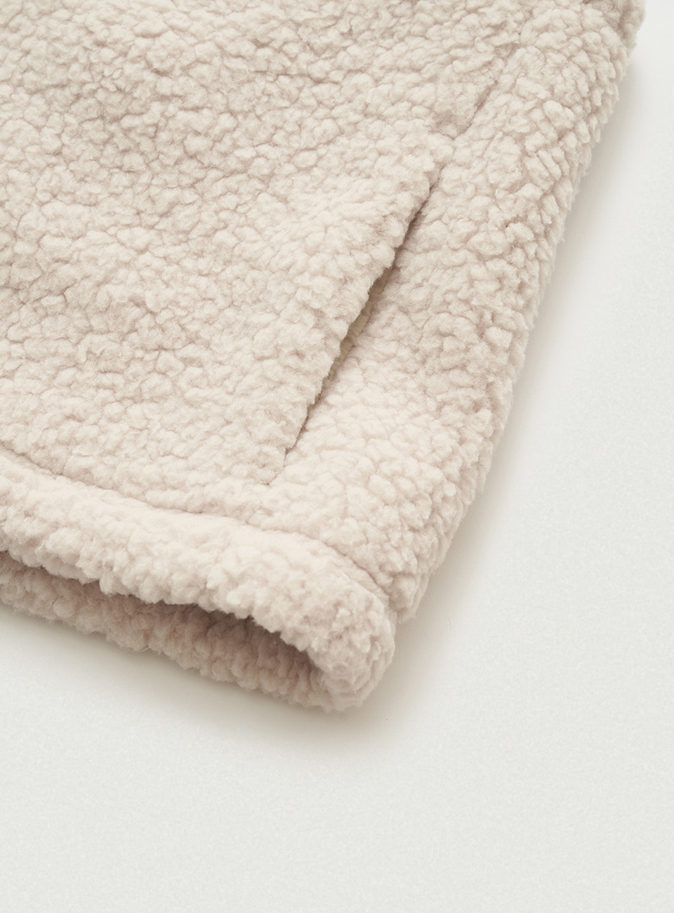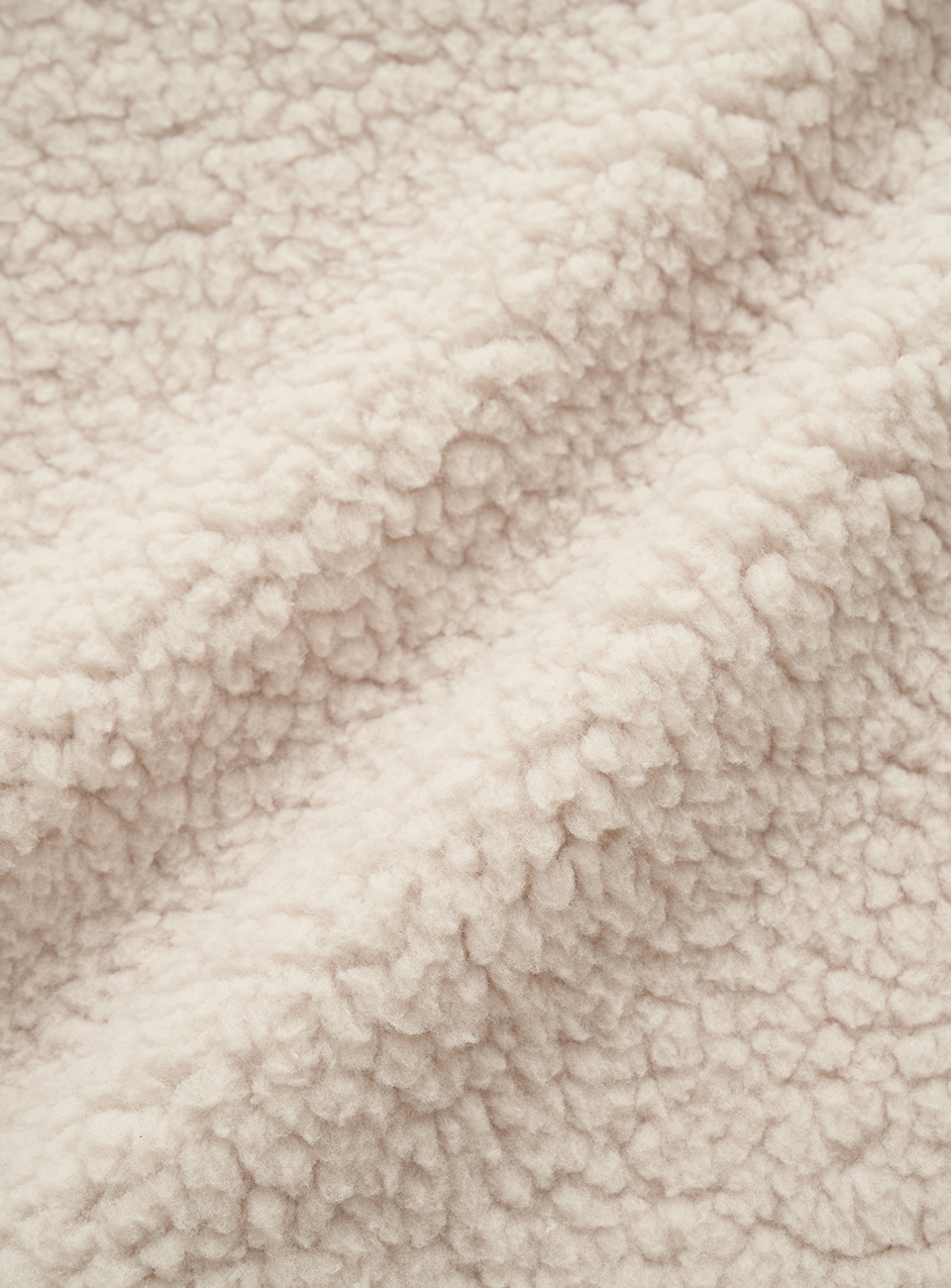 クリームカラーで、柔らかいテクスチャーが特徴のポリエステルフリース。