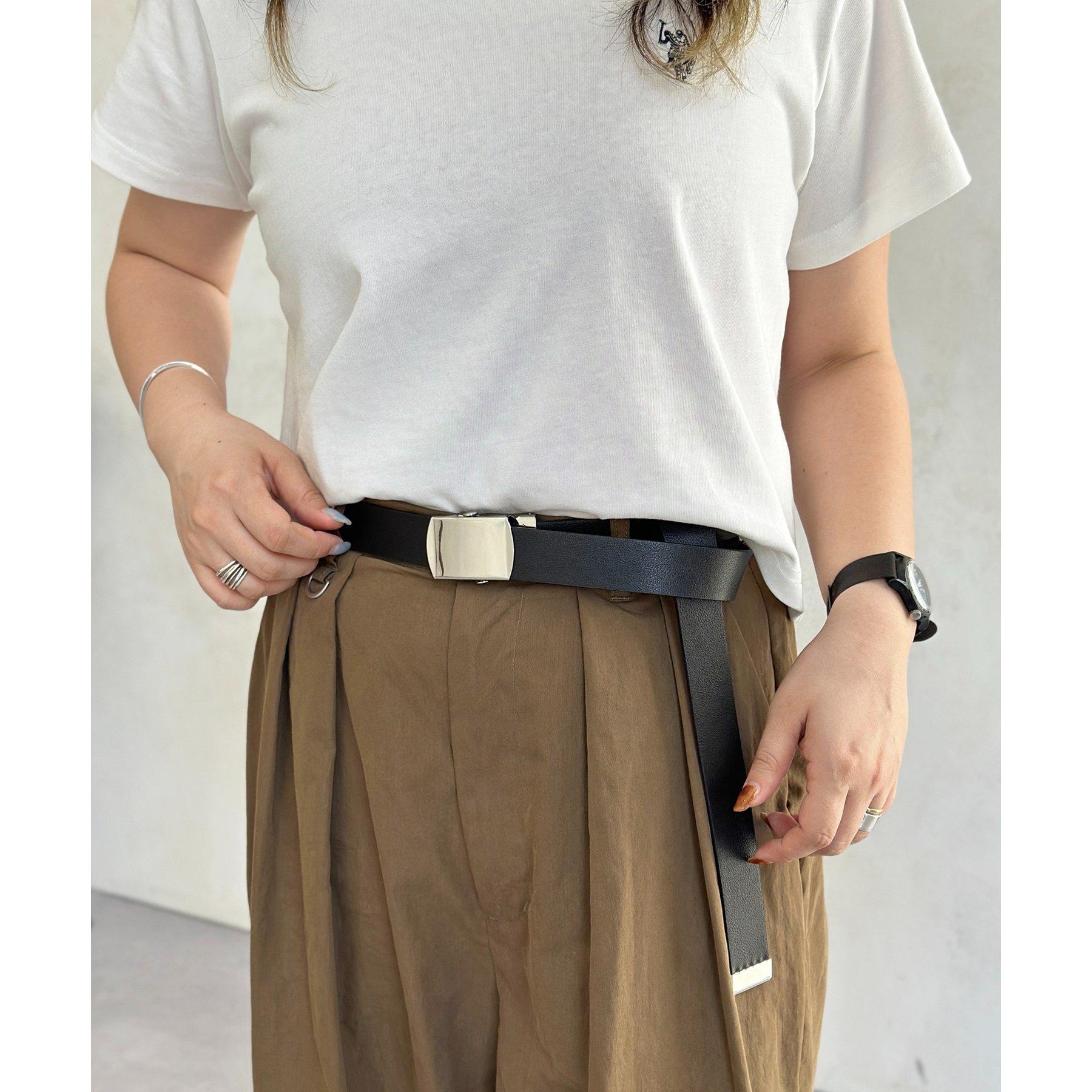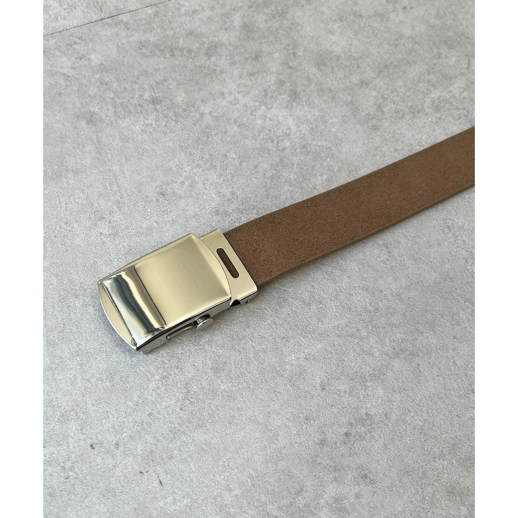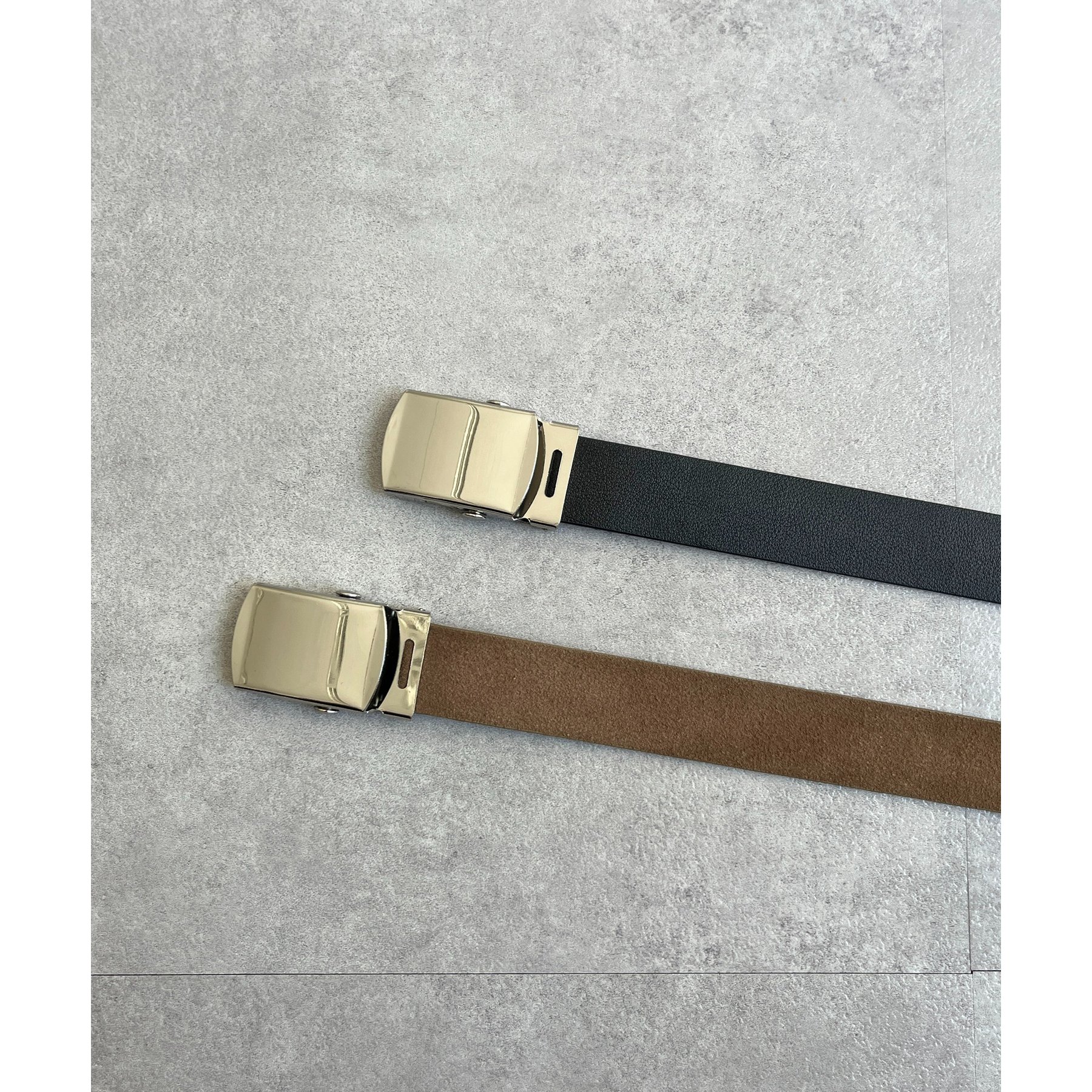 シンプルなデザインながらも、素材感とバックルのデザインがポイントのガチャベルト!