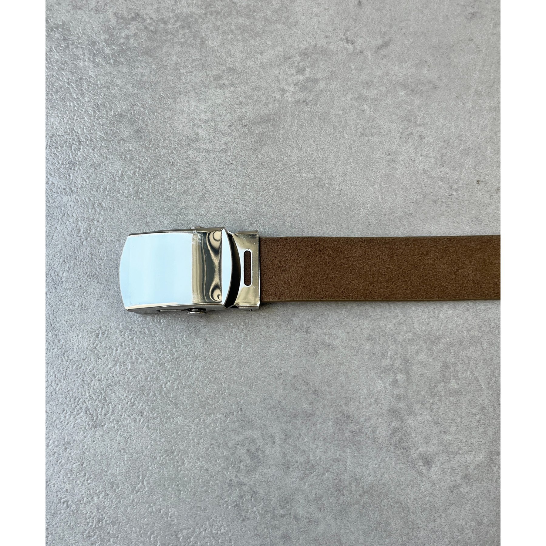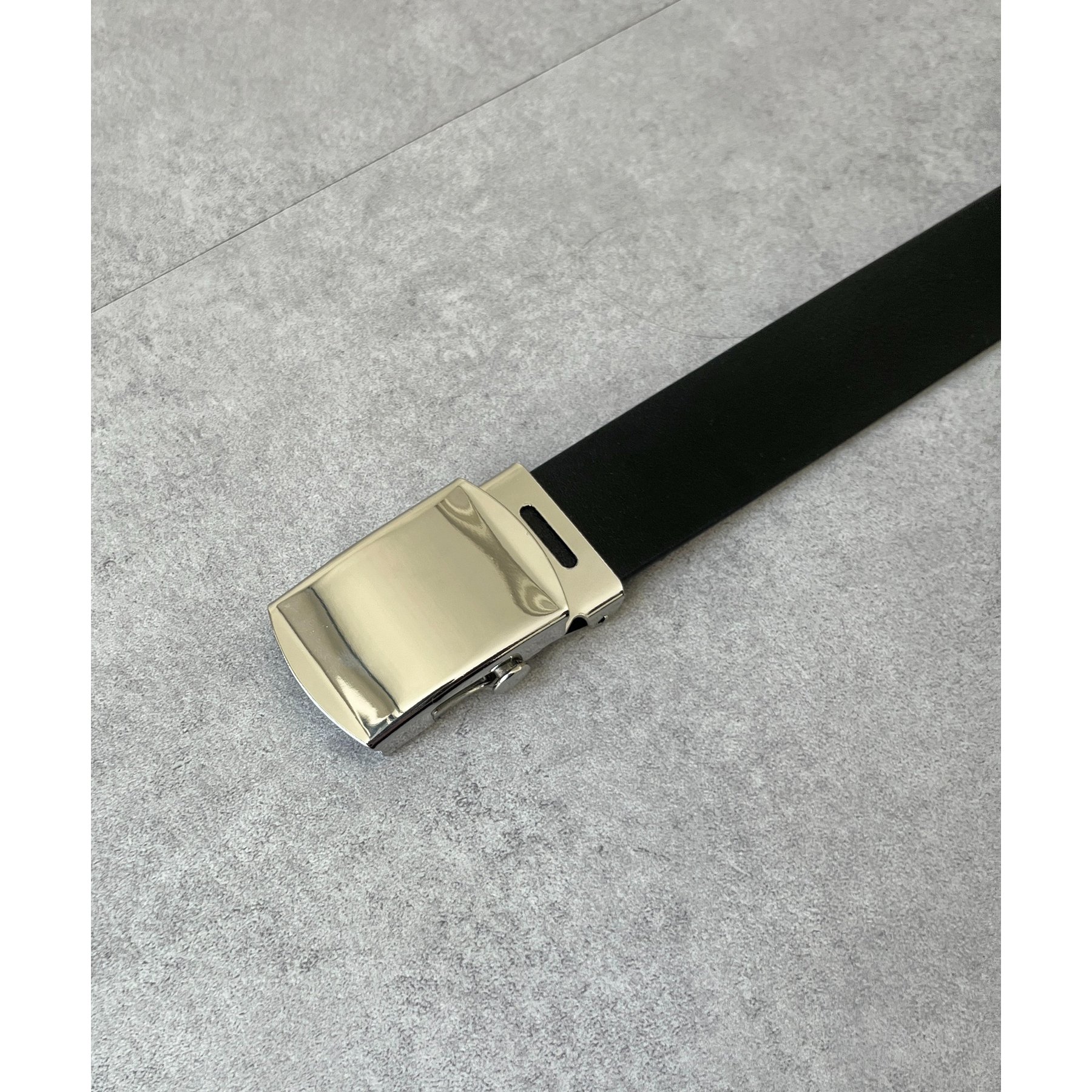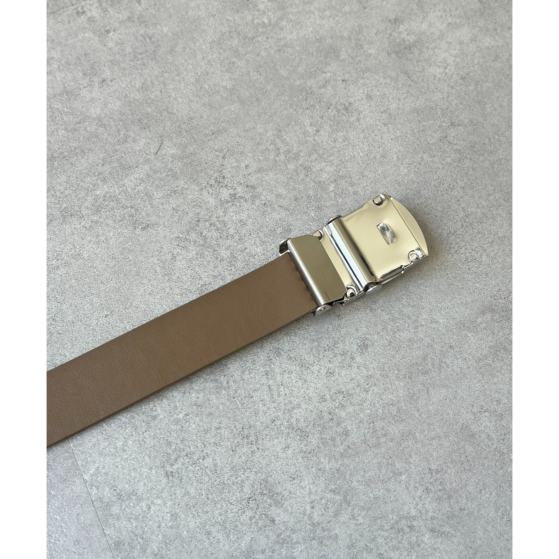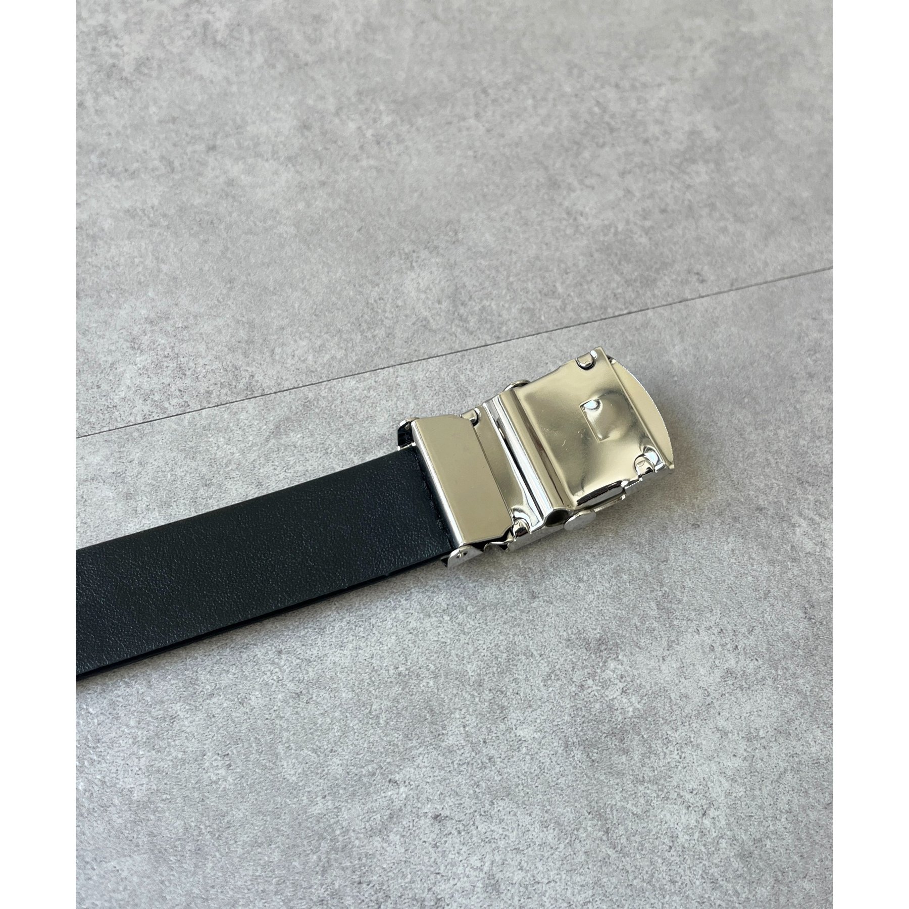 シンプルなデザインながらも、素材感とバックルのデザインがポイントのガチャベルト!
