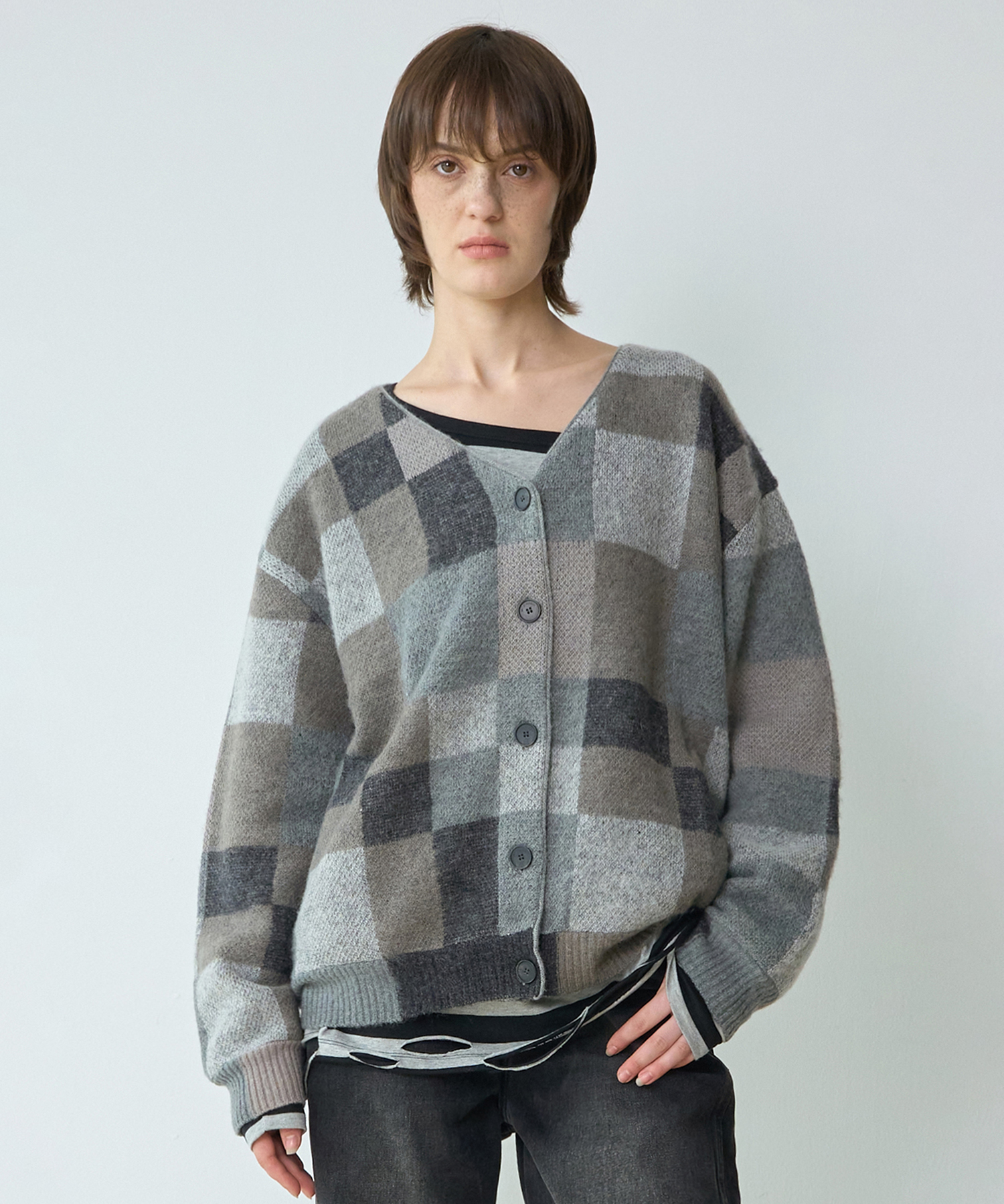 Color Block Oversized Cardigan [Gray]