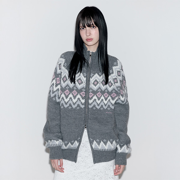 NORDIC JACQUARD TWOWAY ZIP-UP KNIT GRAY