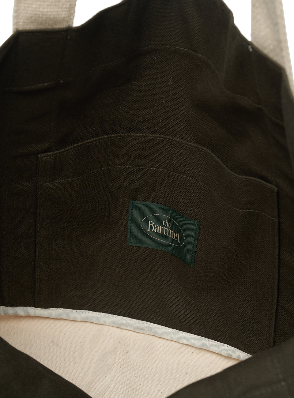 カーキカラー特有のざっくりとしたしっかり感のある質感が特徴のコットンキャンバスファブリック