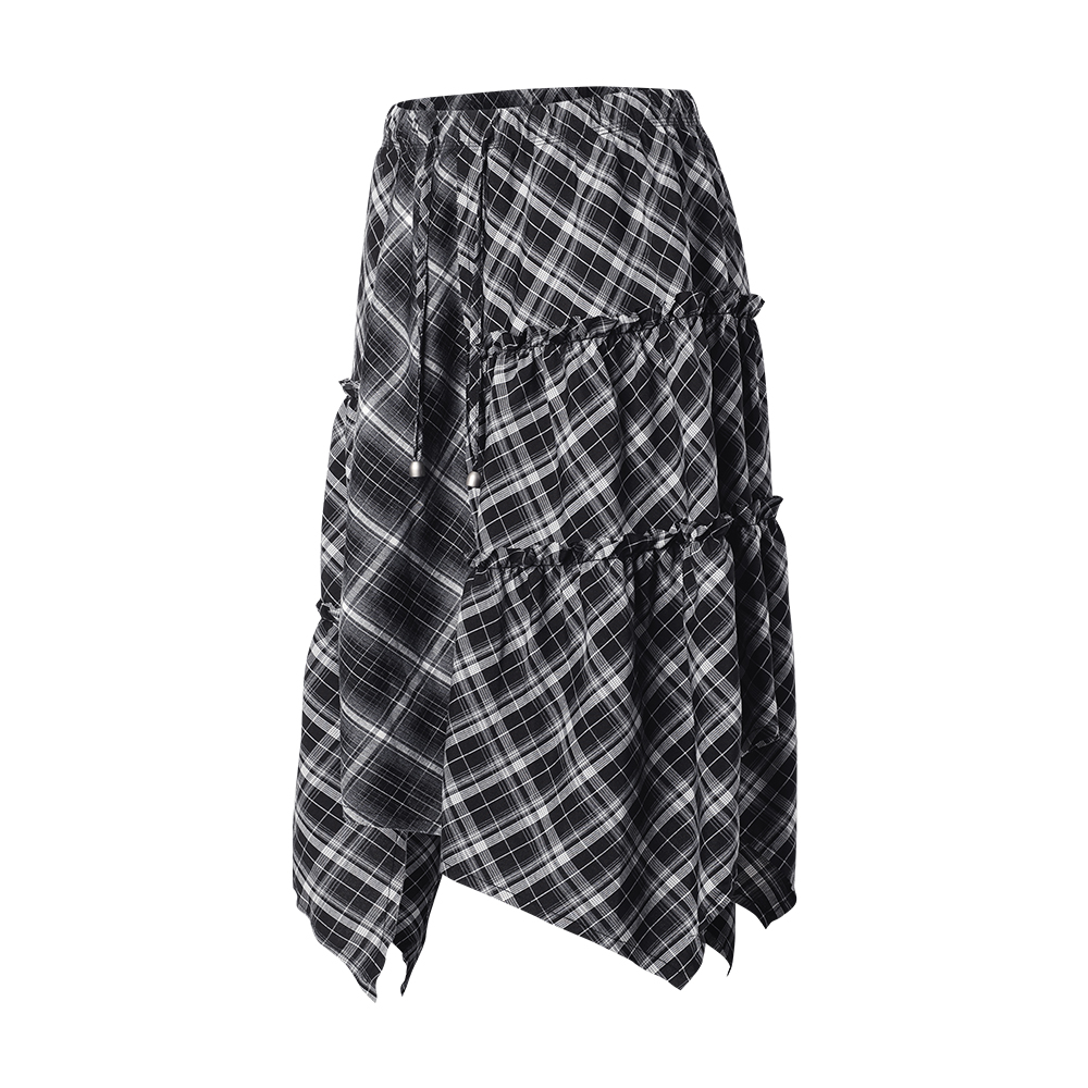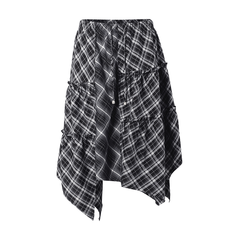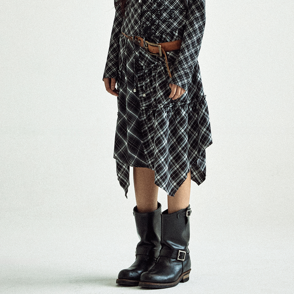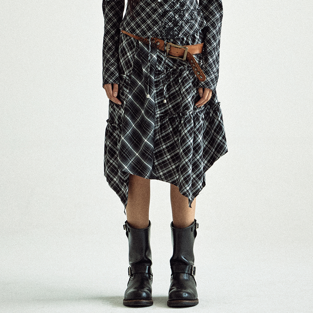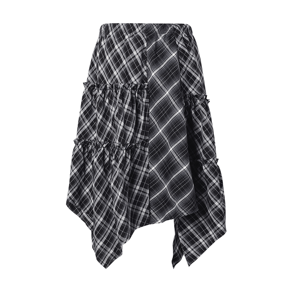 UNBALANCE LAYERED CHECK SKIRT(W) BLACK