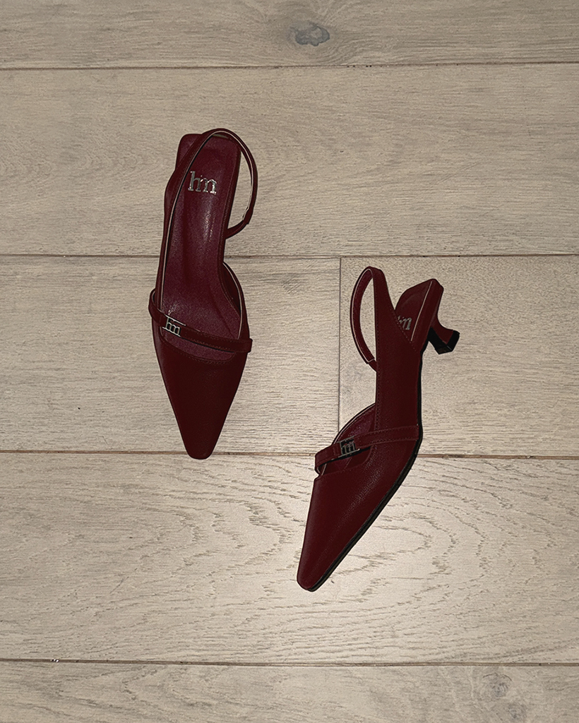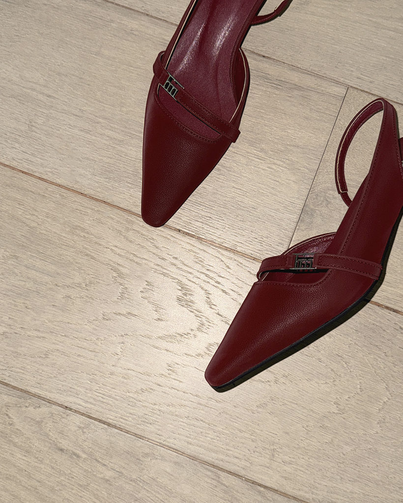 【4色展開】ヒアムロゴポイント甲ストラップポイントスリングバック/2025 AW NEW COLLECTION/burgundy