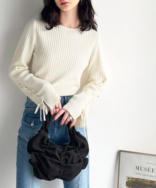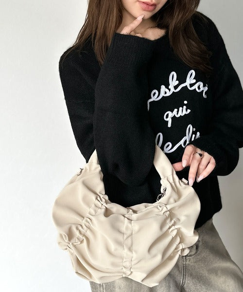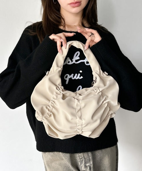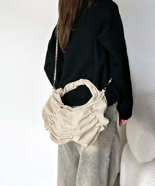 シンプルながらもくしゅくしゅ可愛らしさのあるこのハンドバッグは