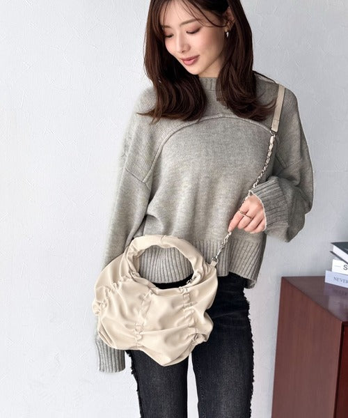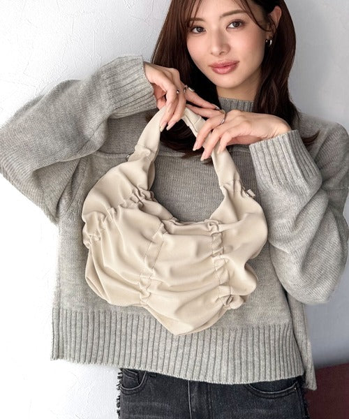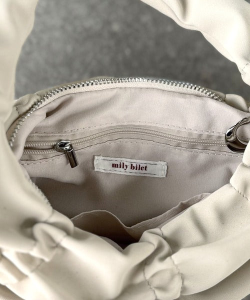 【mily bilet】2way仕様で、コーデ自在。スウェード風コインチャーム付きギャザーデザインハンドバッグ mi1179072
