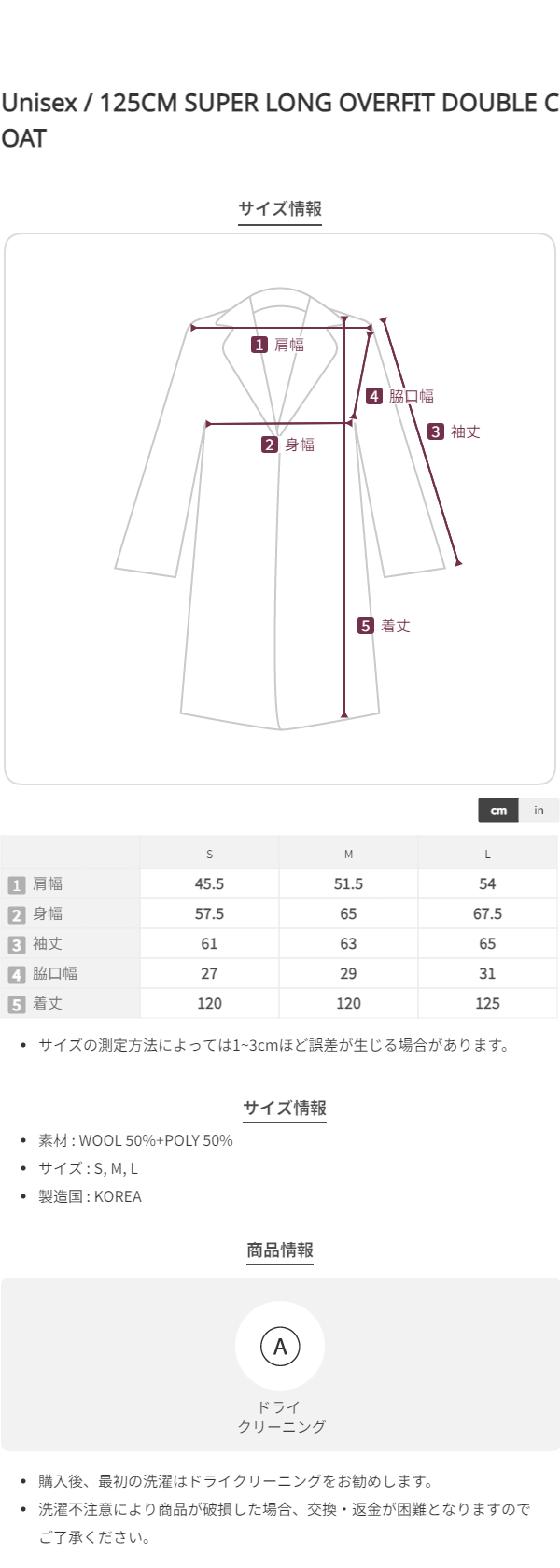 125CM SUPER LONG OVERFIT DOUBLE COAT