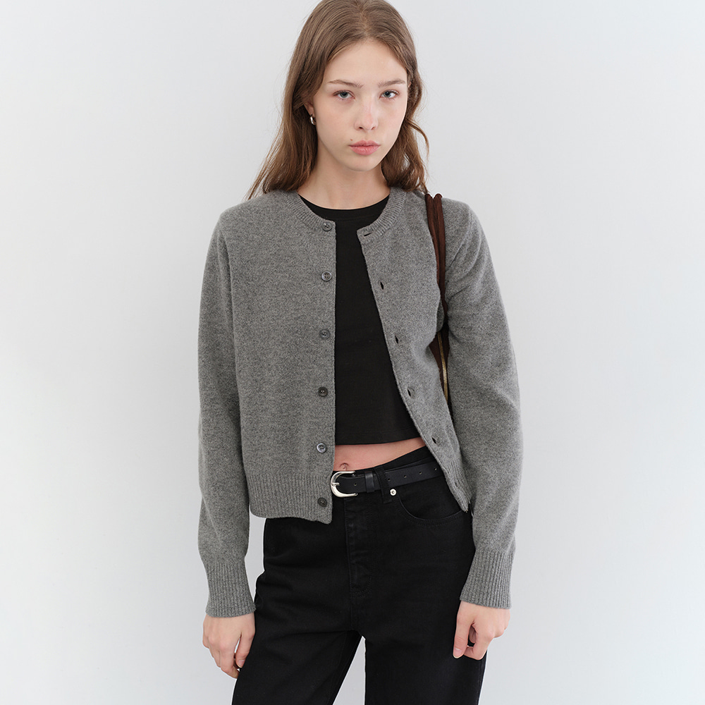 UNISEX CREWNECK KNIT CARDIGAN MELANGE GREY_UDSW5C101G2