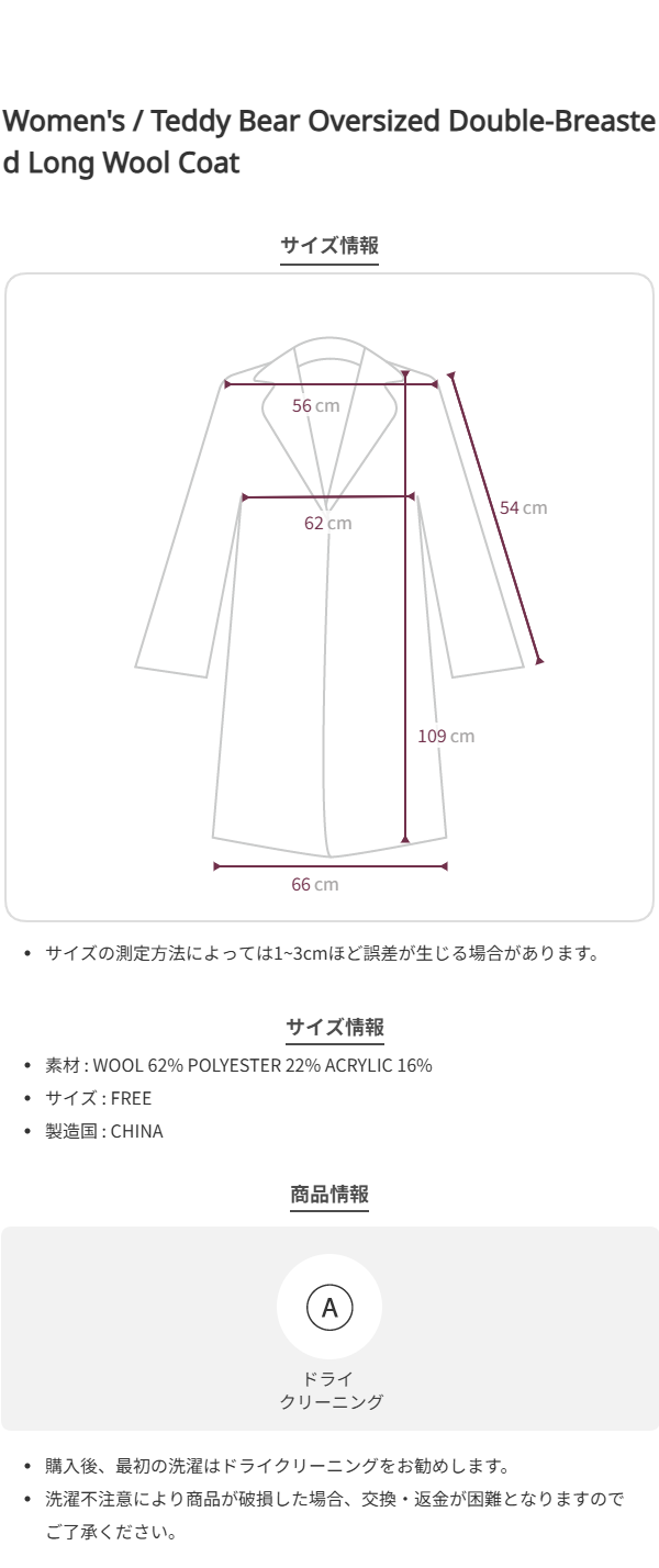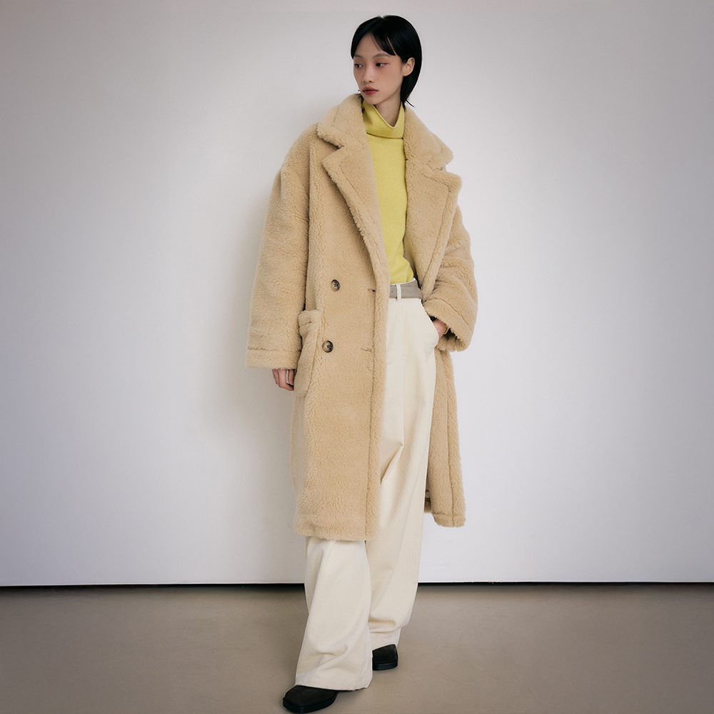 Teddy Bear Oversized Double-Breasted Long Wool Coat [Light Beige]