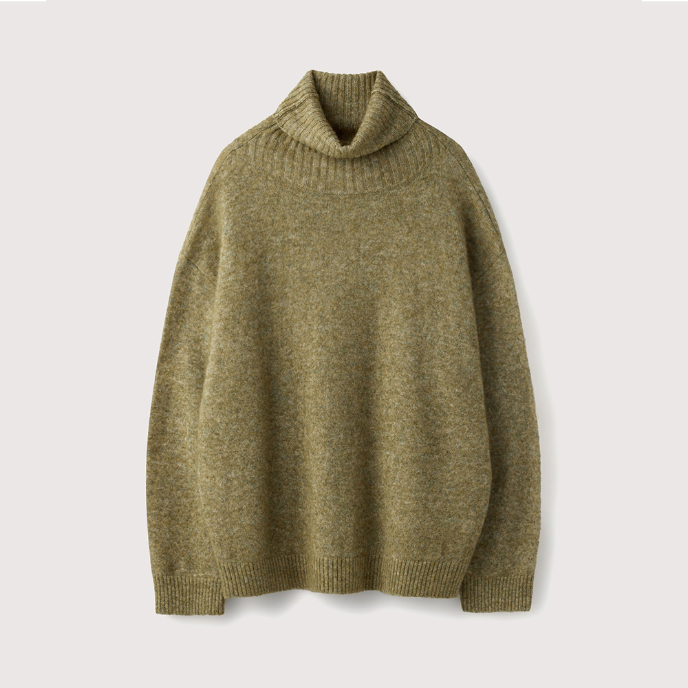 Alpaca Ribbed Back Turtle Neck Pullover_Pistachio