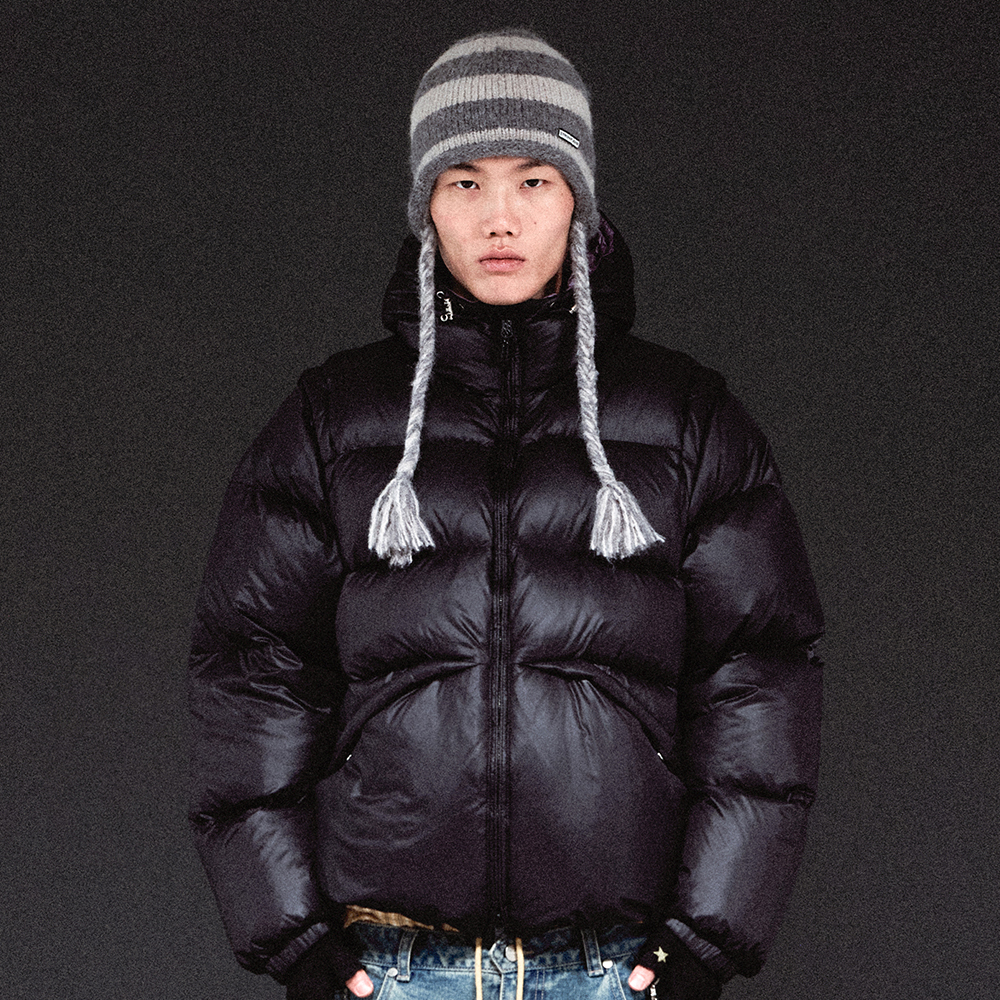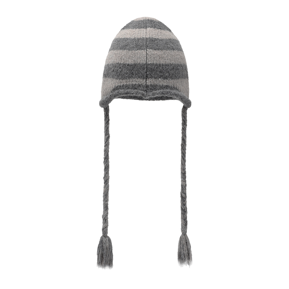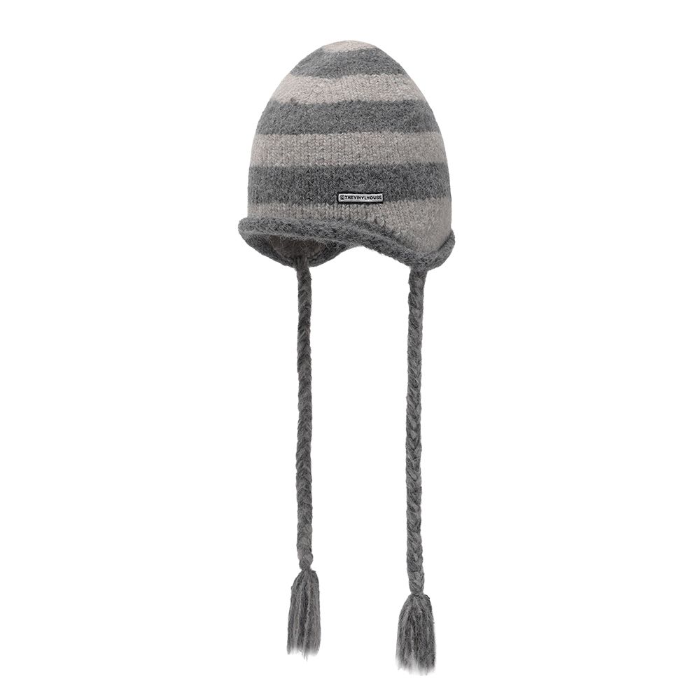 EAR FLAP STRIPE BEANIE GREY