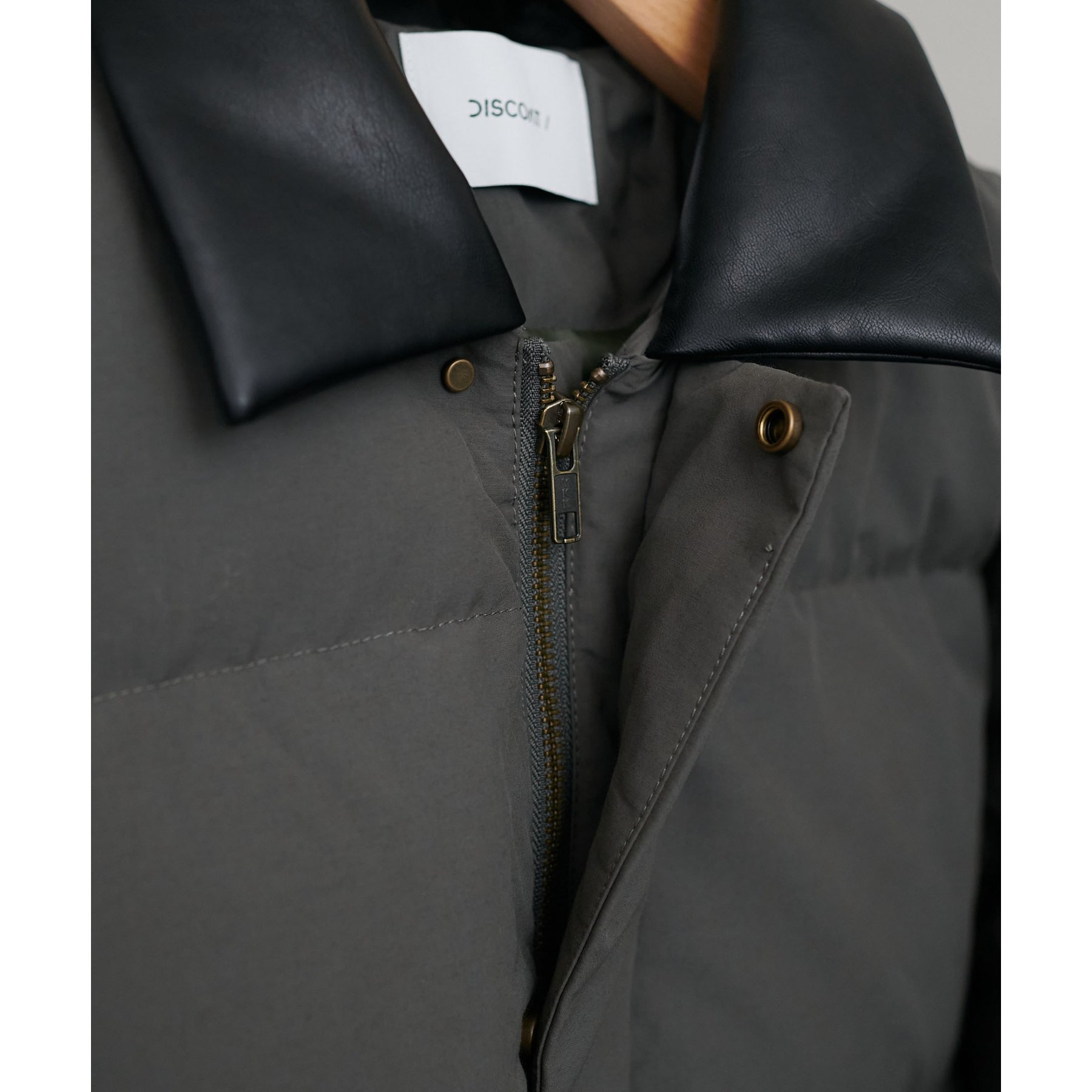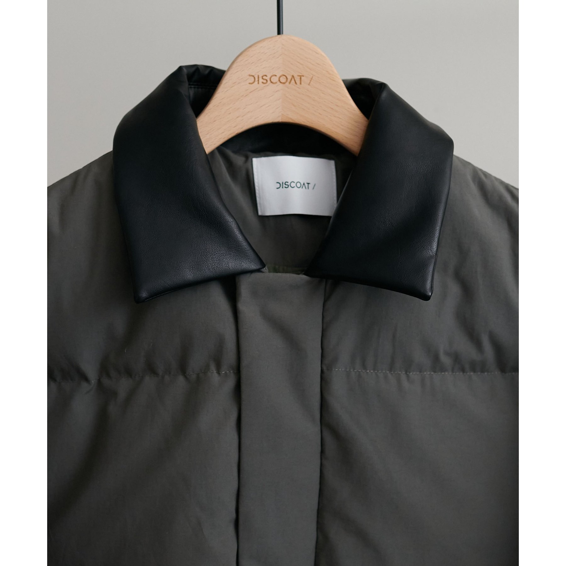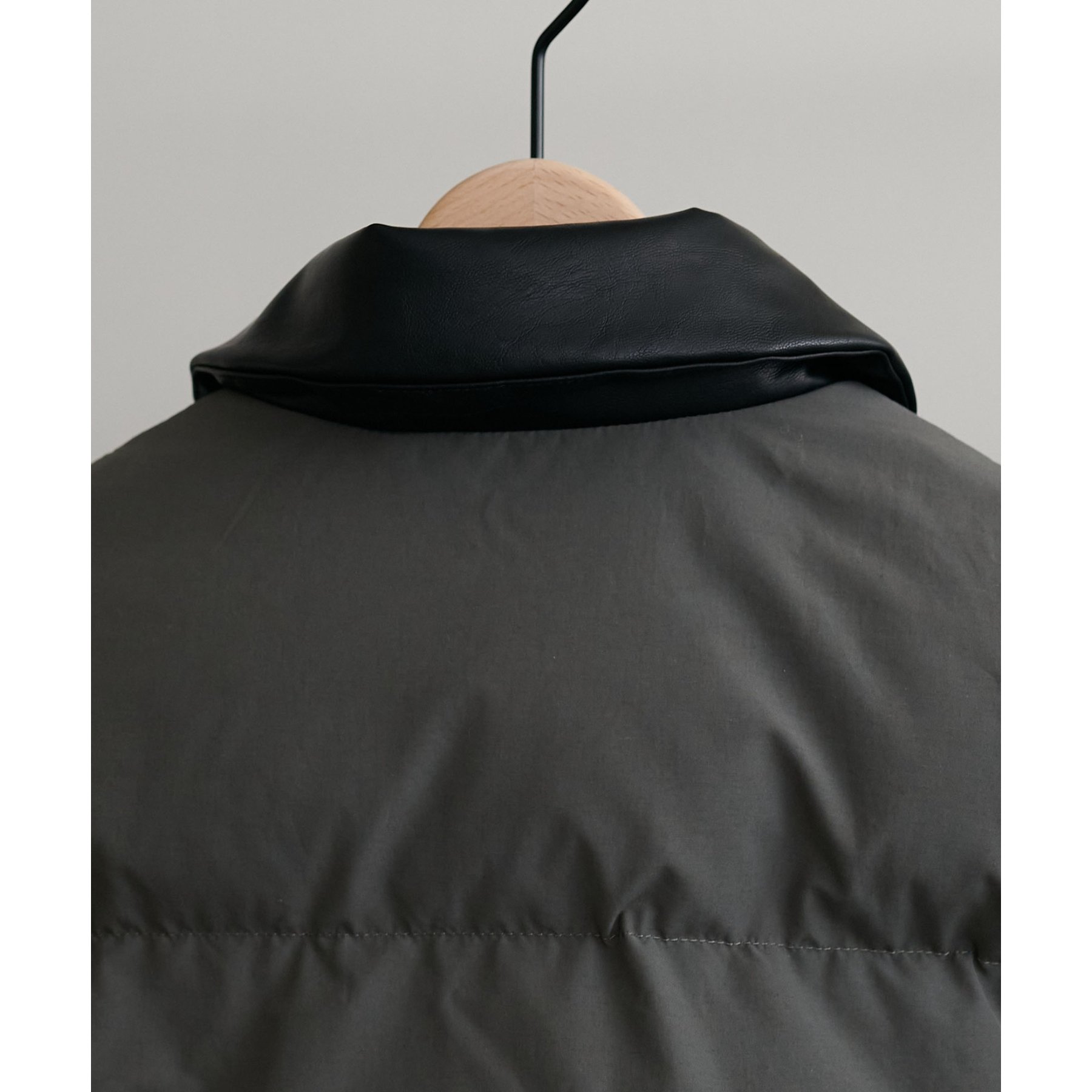 ・衿にフェイクレザーを使用し異素材切り替えがさりげないアクセントに