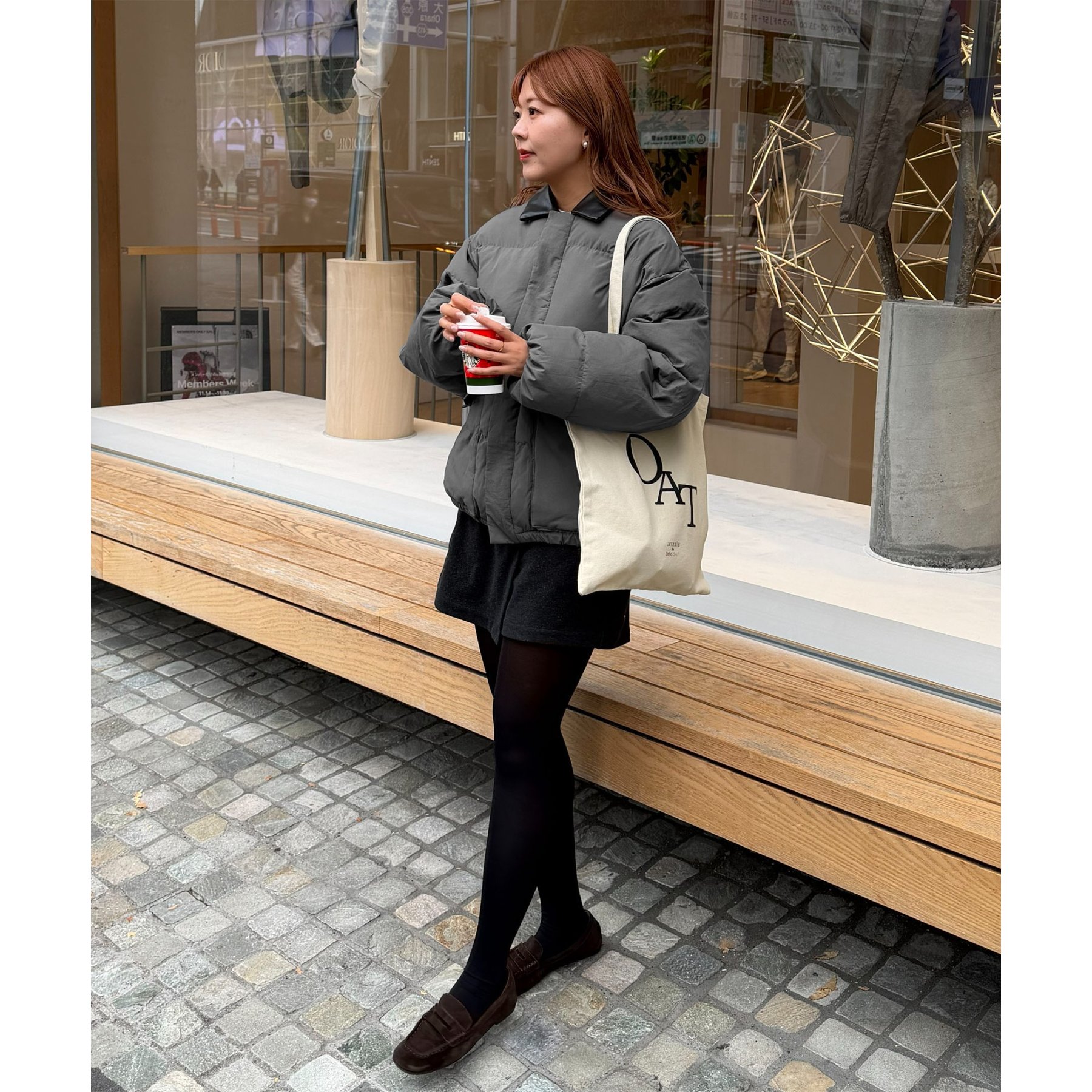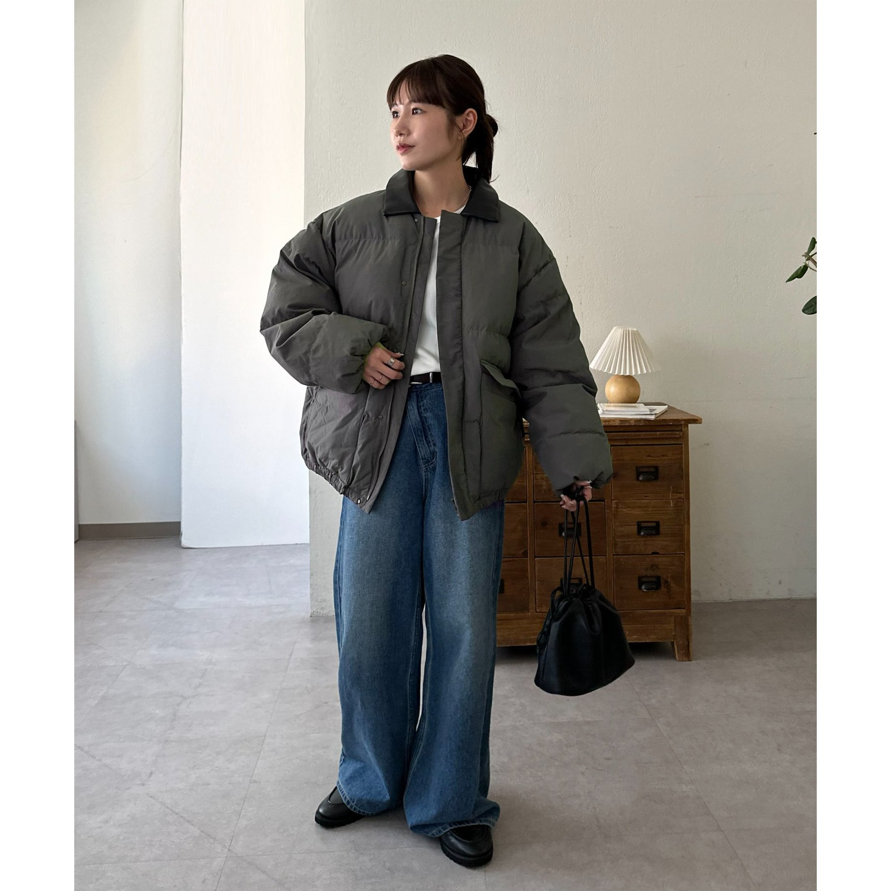 ・スカートと合わせれば、ブルゾンのボリューム感が引き立つバランスの良いコーデに。