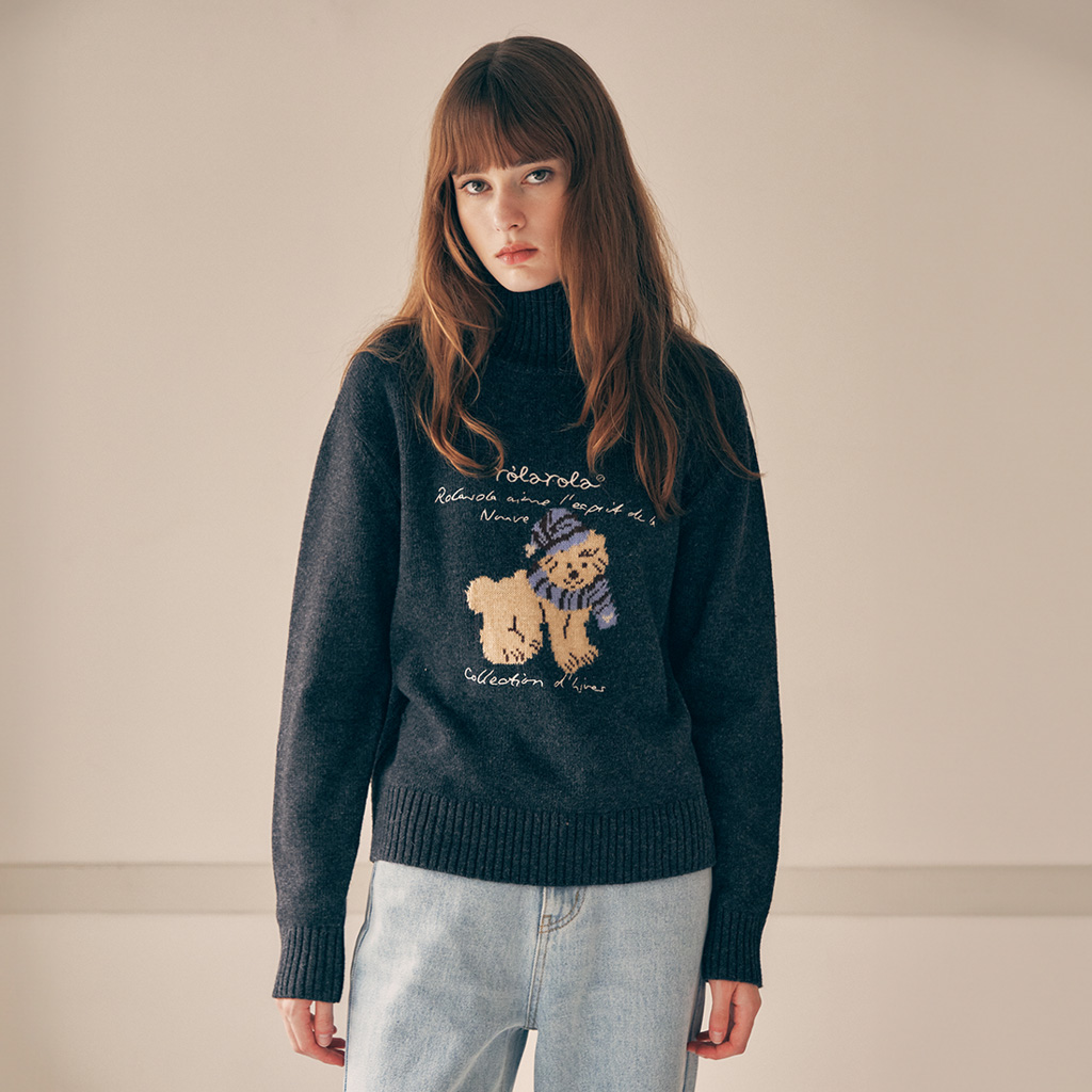PUPPY JACQUARD HIGH NECK KNIT GRAY