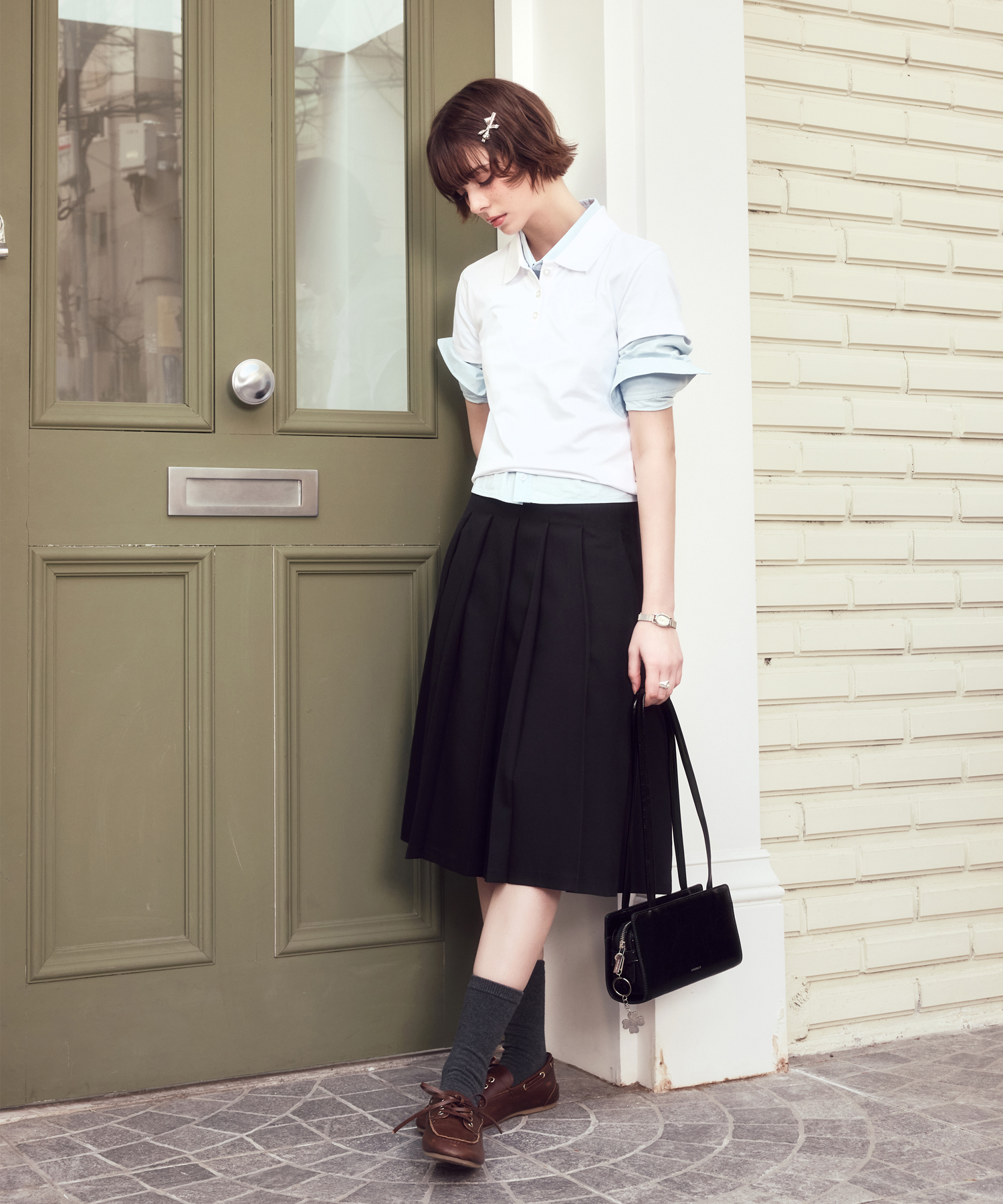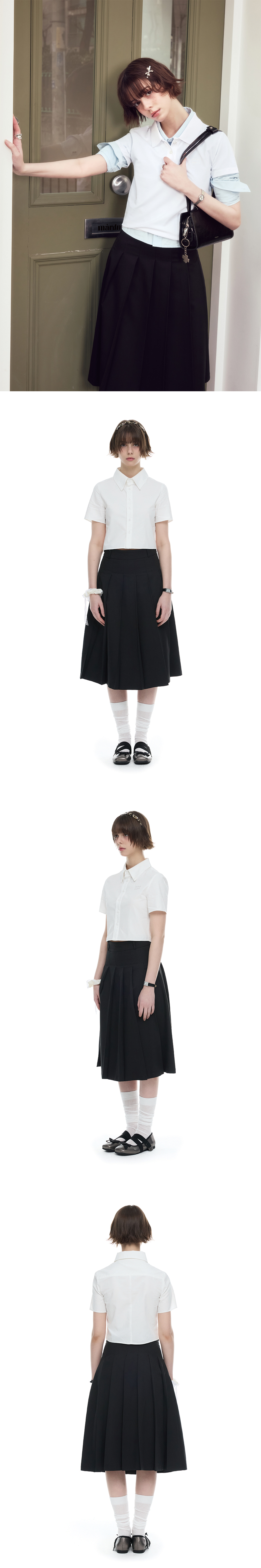 Preppy Pleats Midi Skirt-BLACK