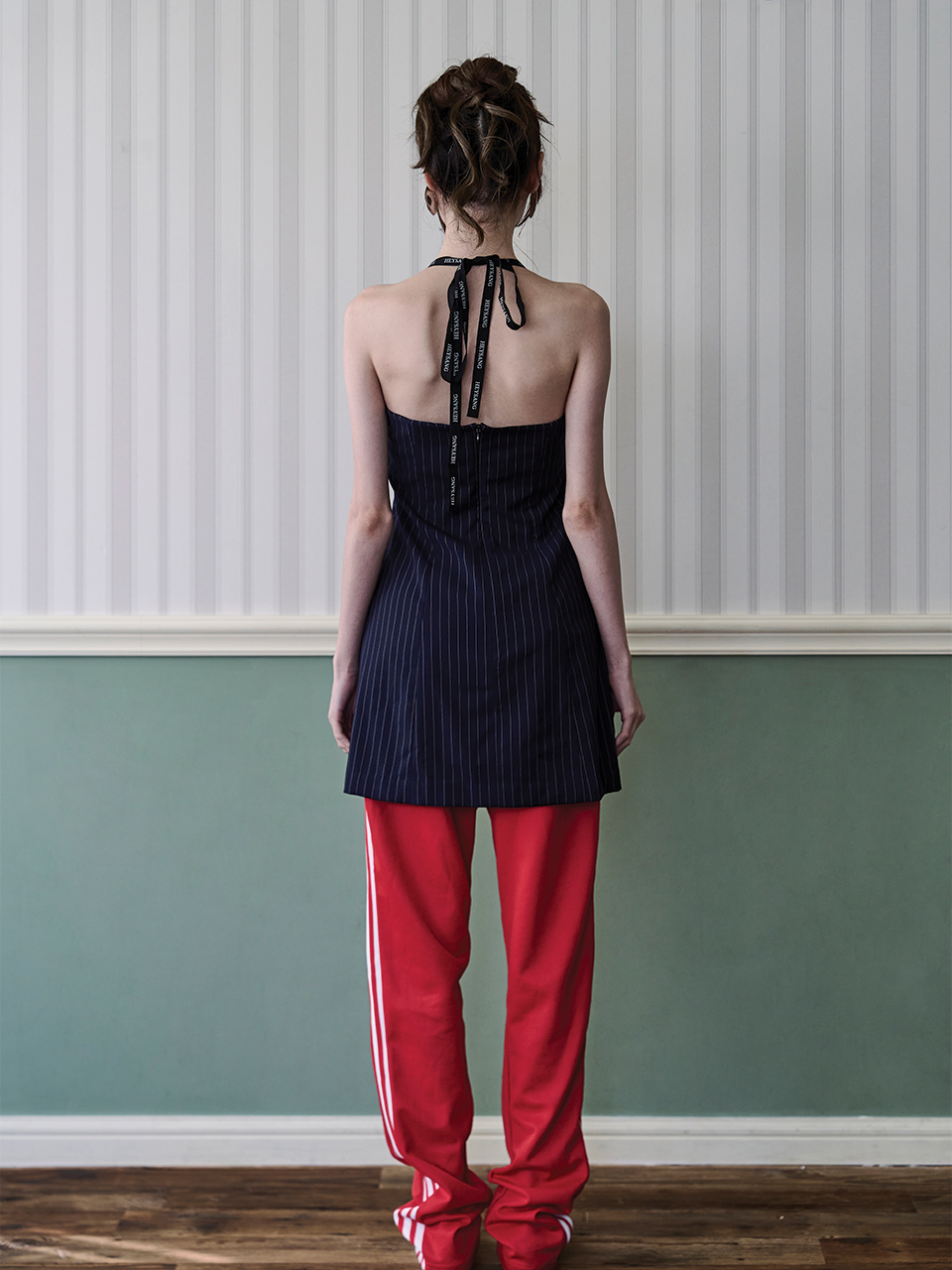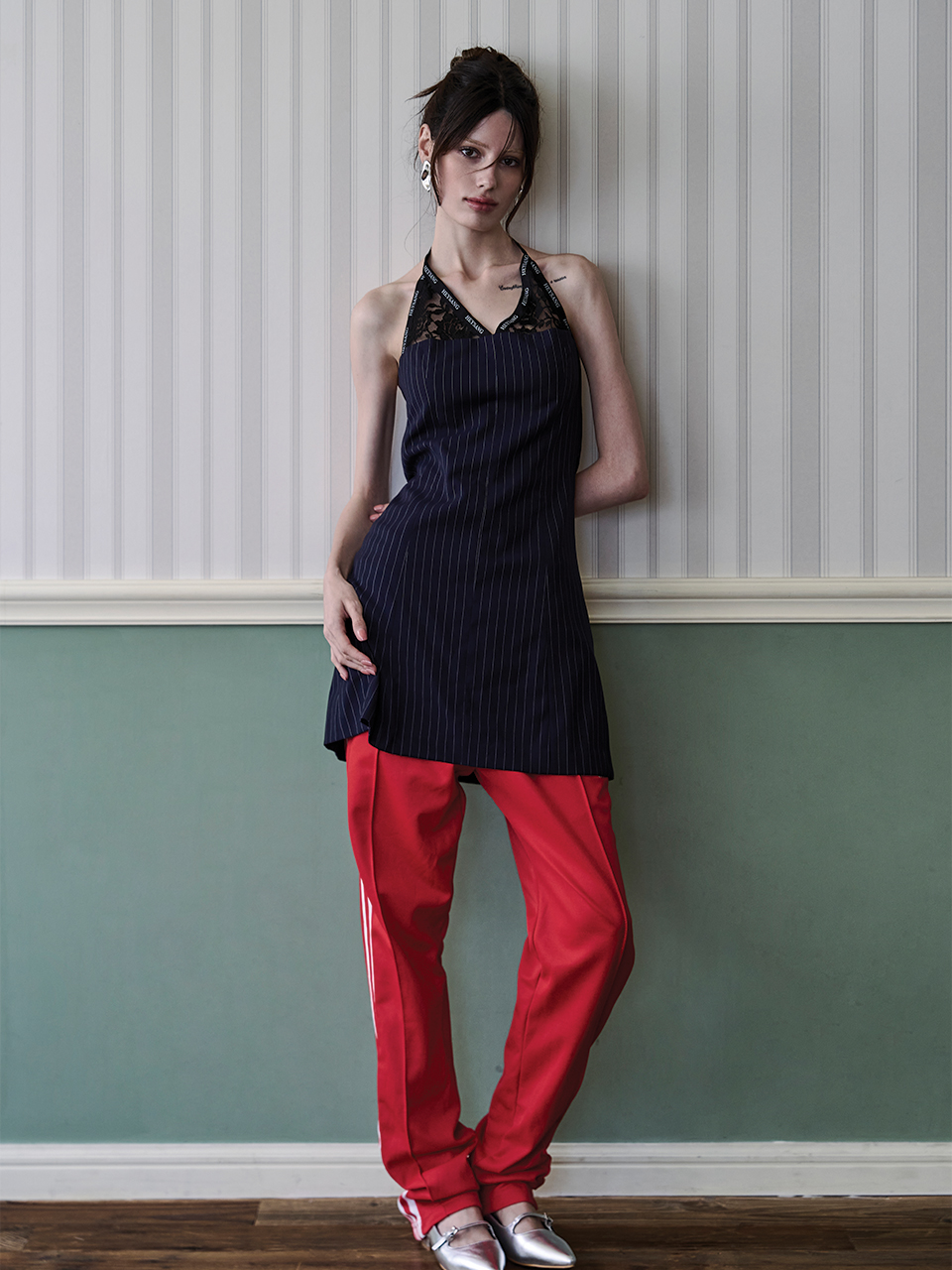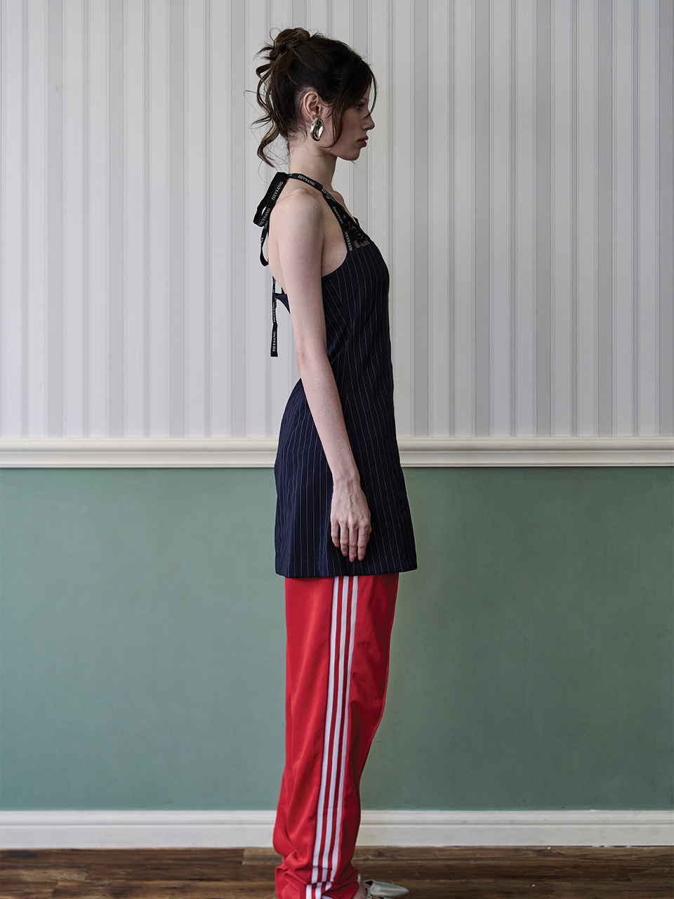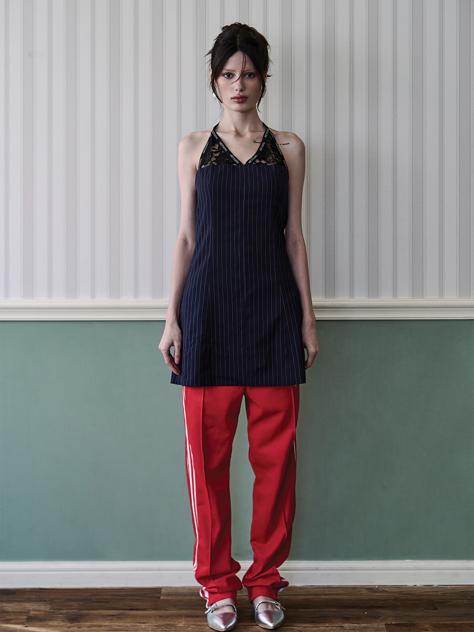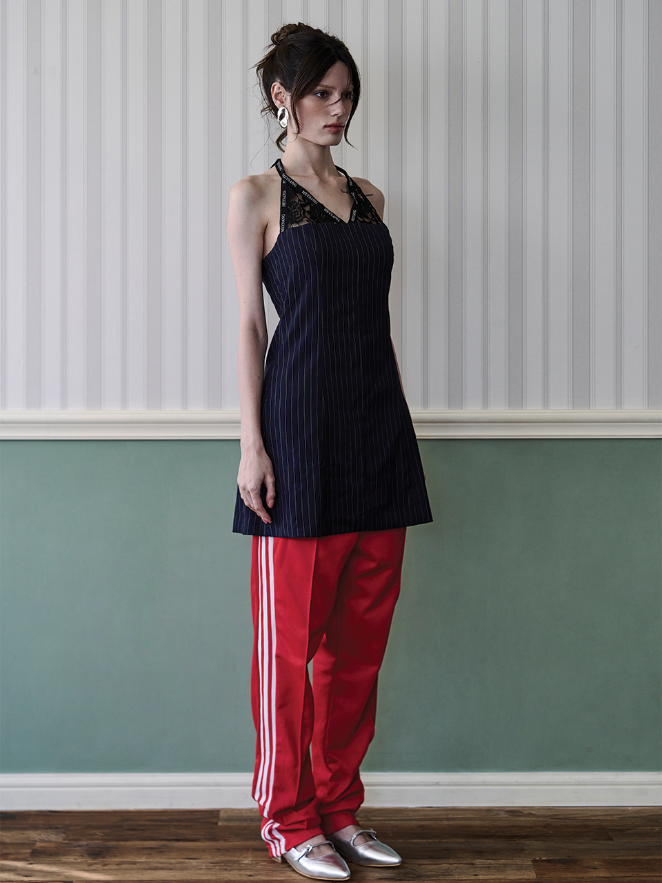 PIN-STRIPE LACE HALTERNECK MINI DRESS