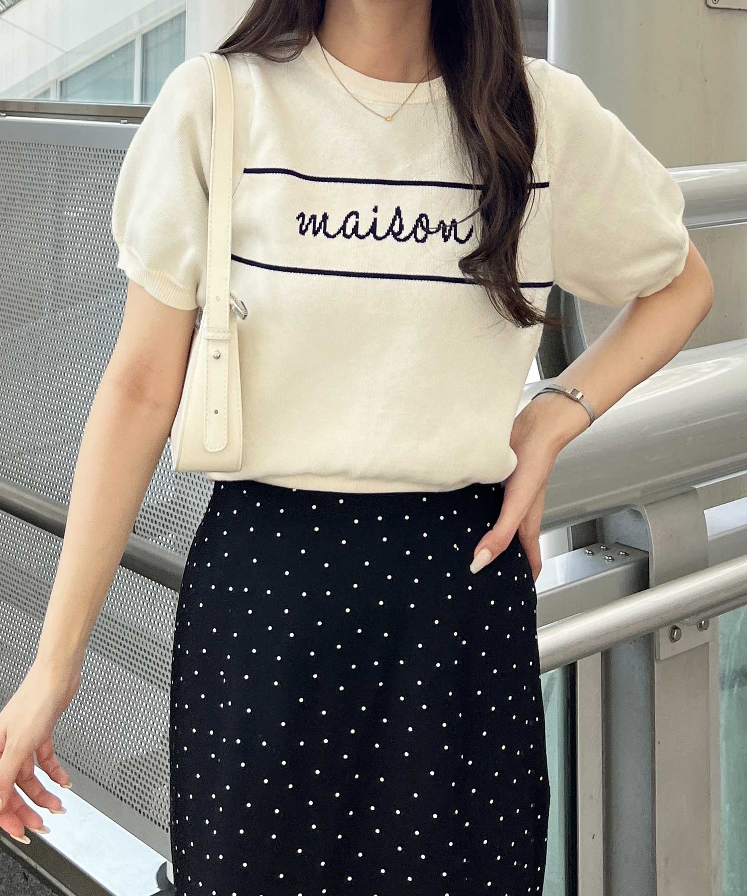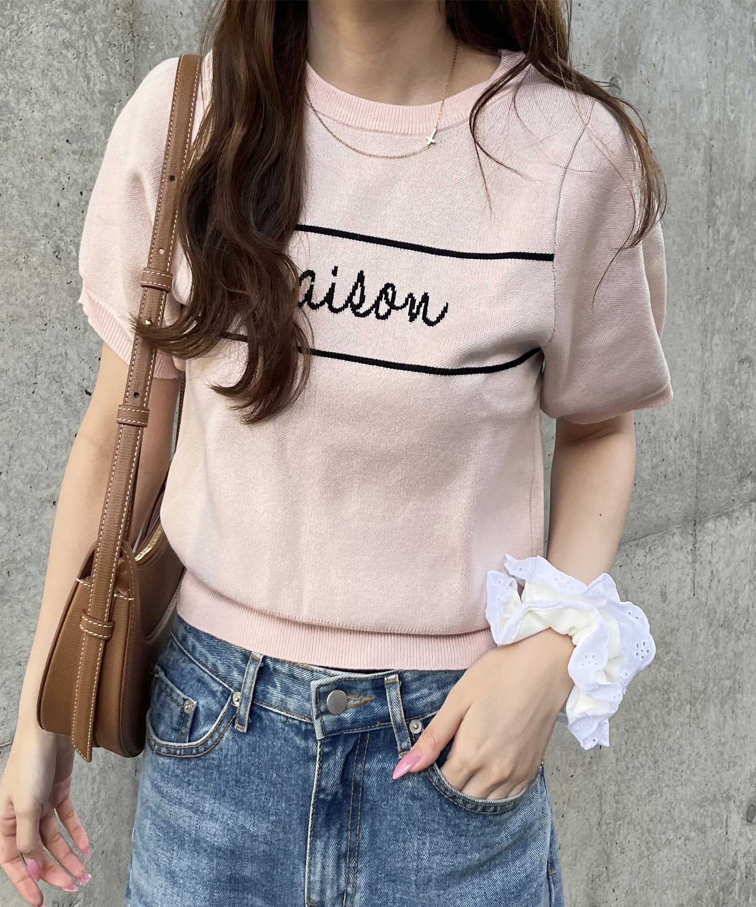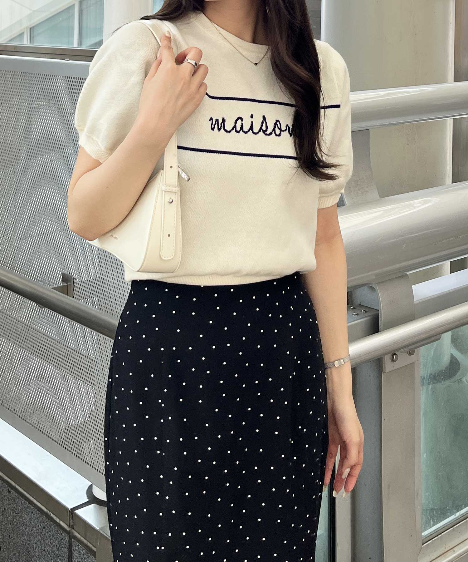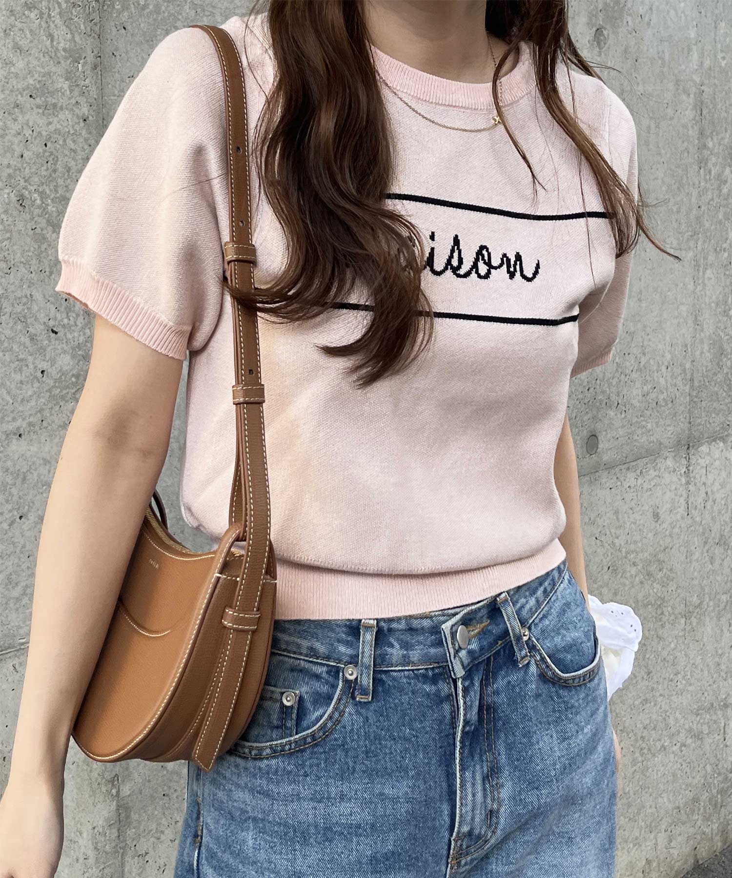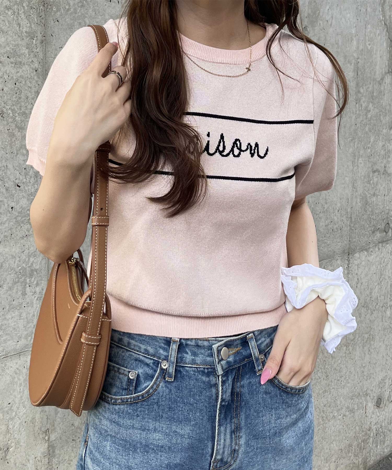 パフスリーブロゴジャガードサマーニット