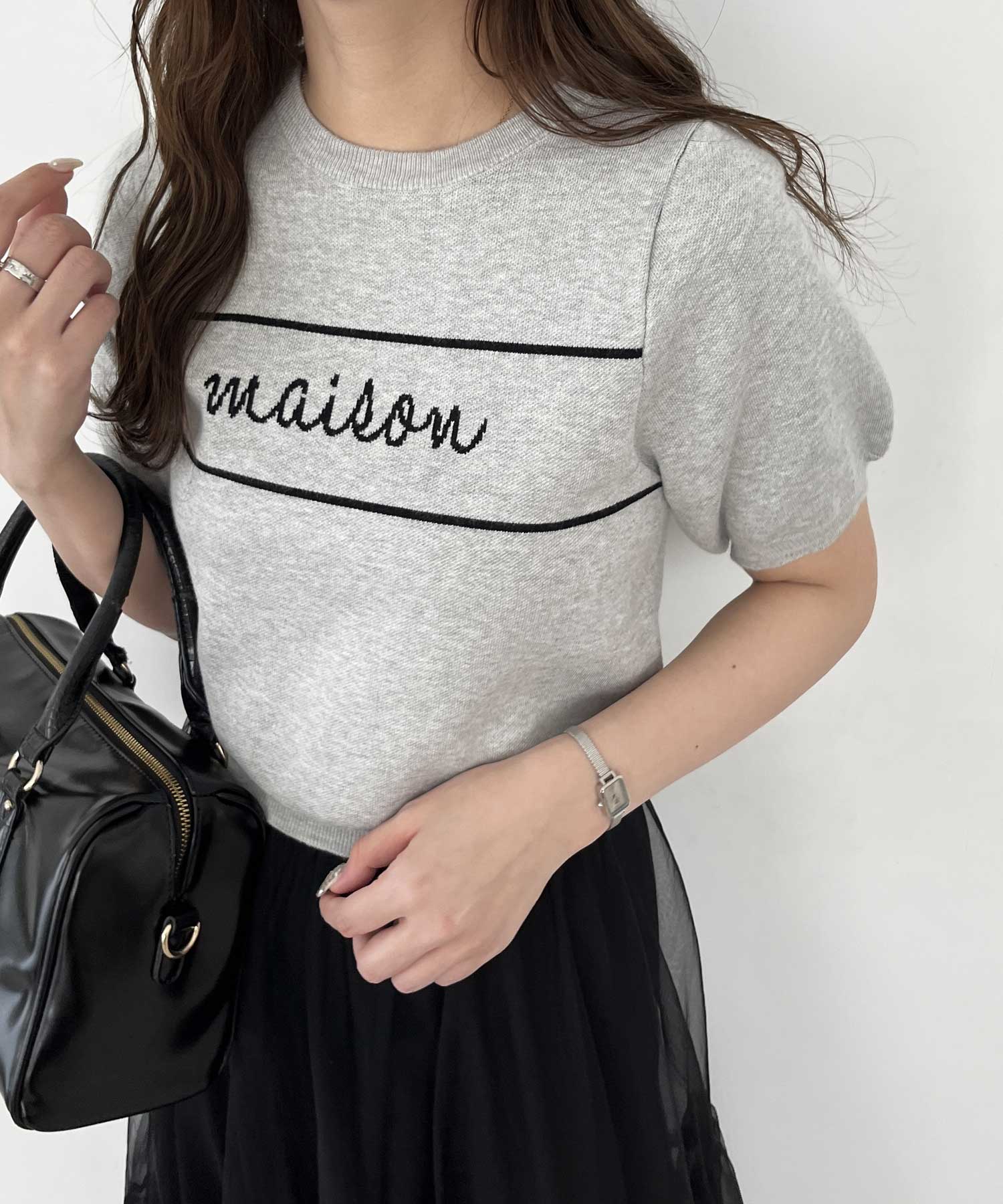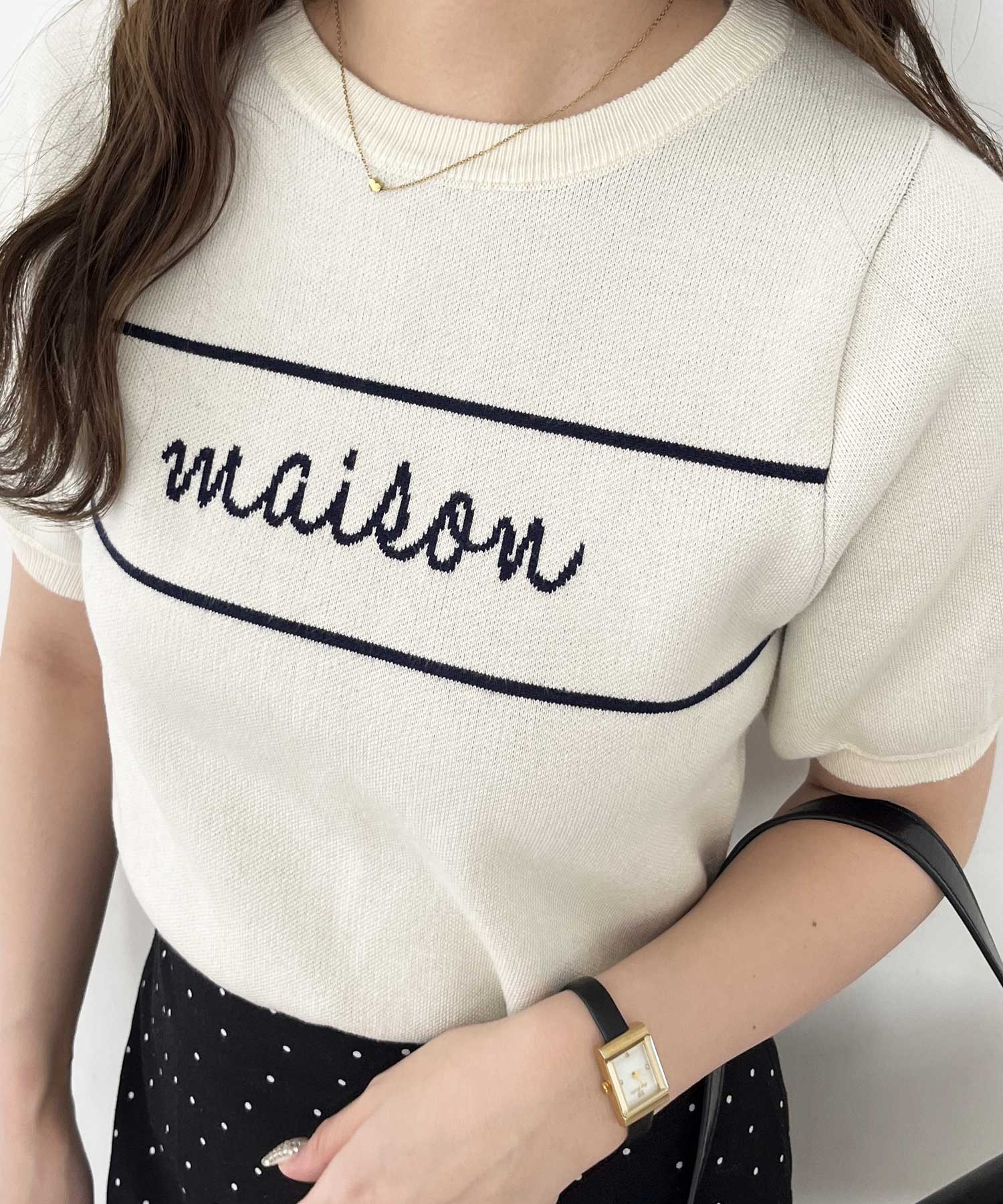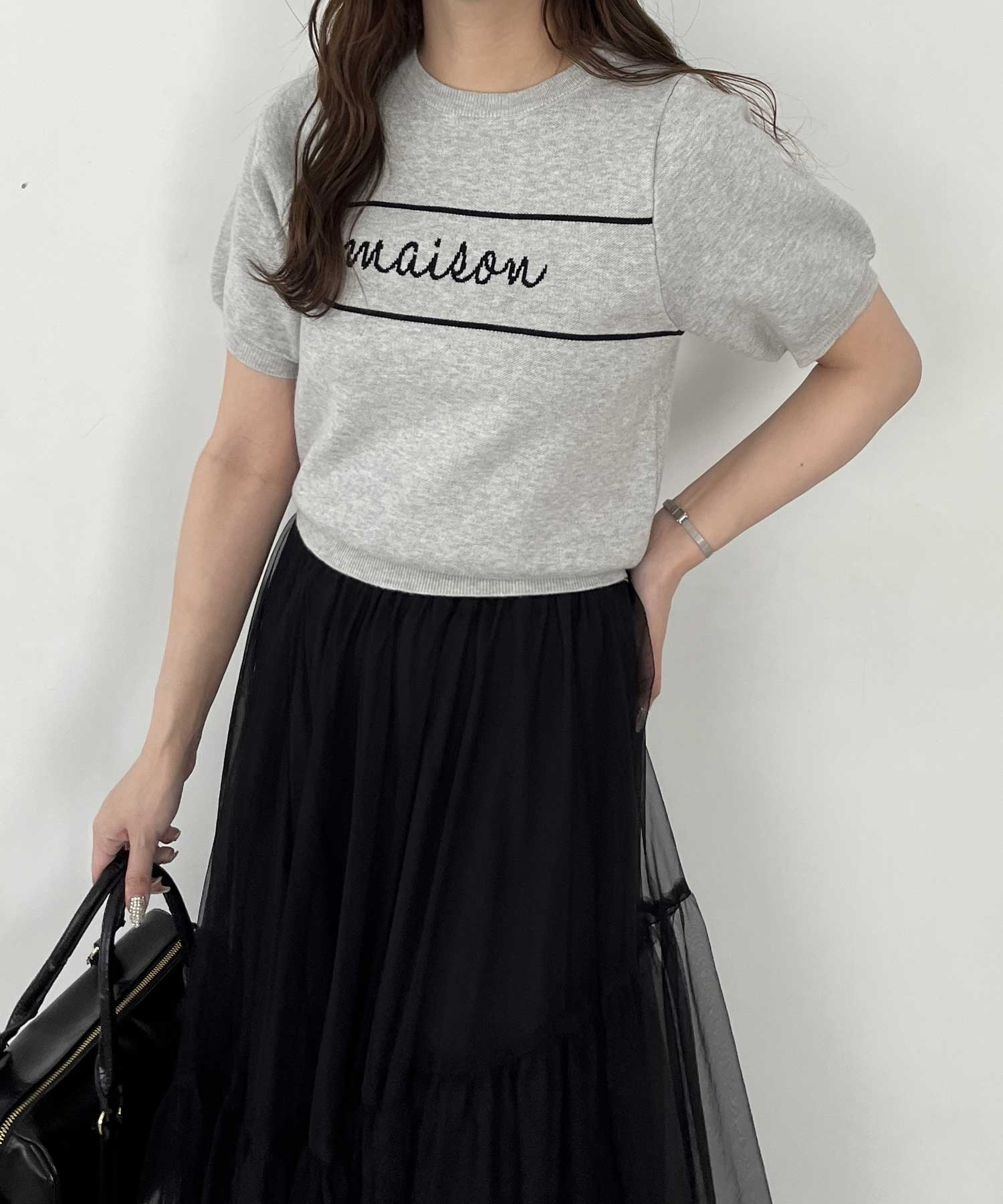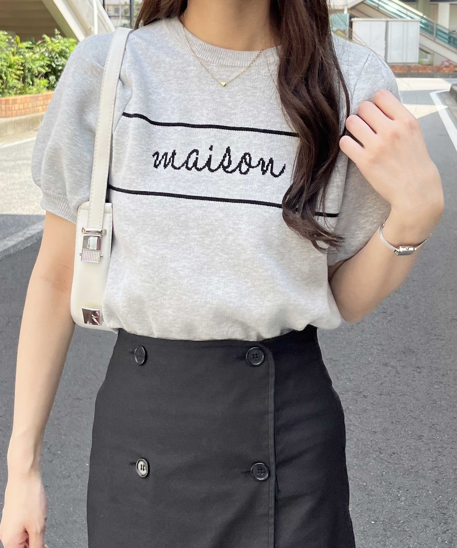 パフスリーブロゴジャガードサマーニット