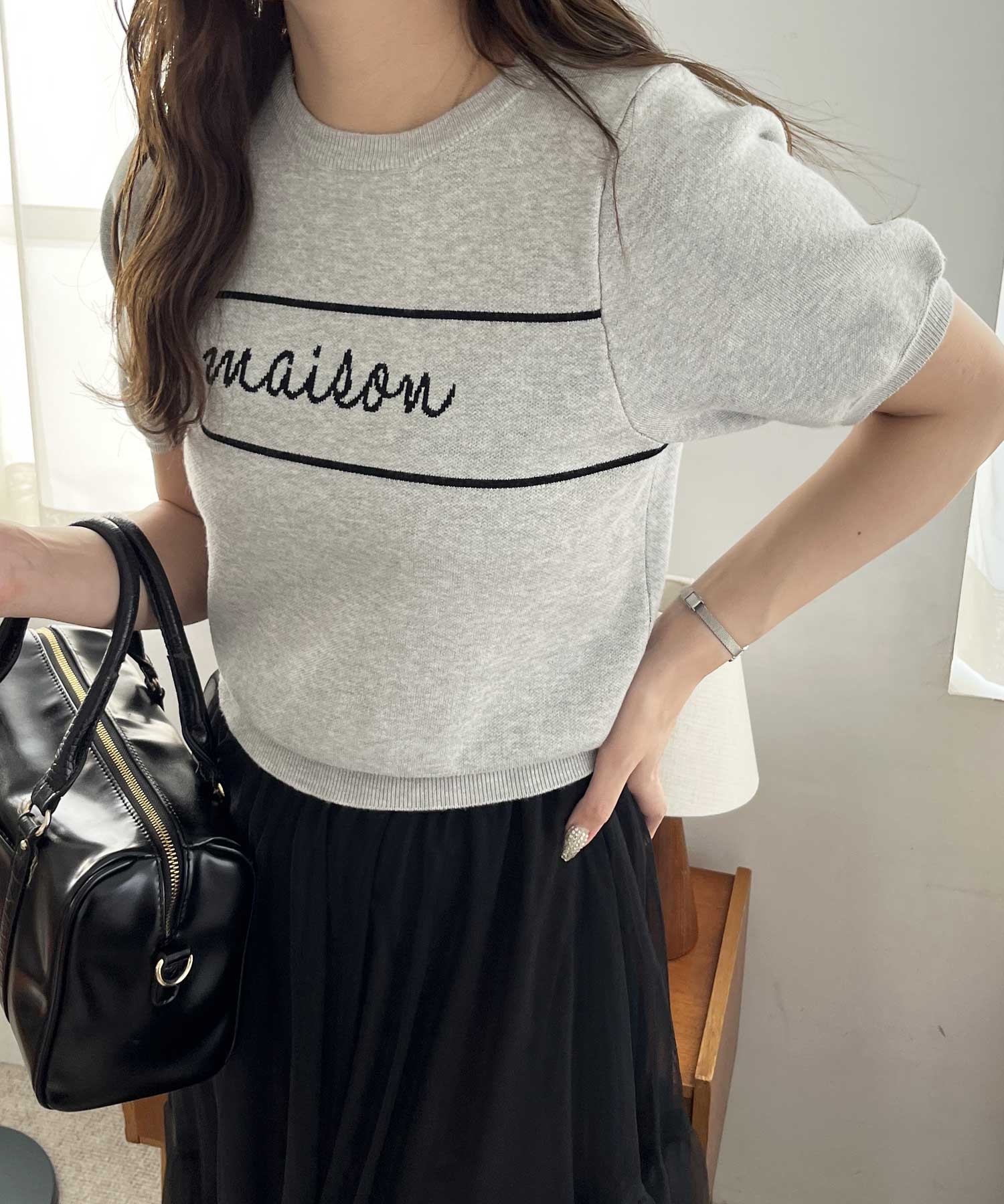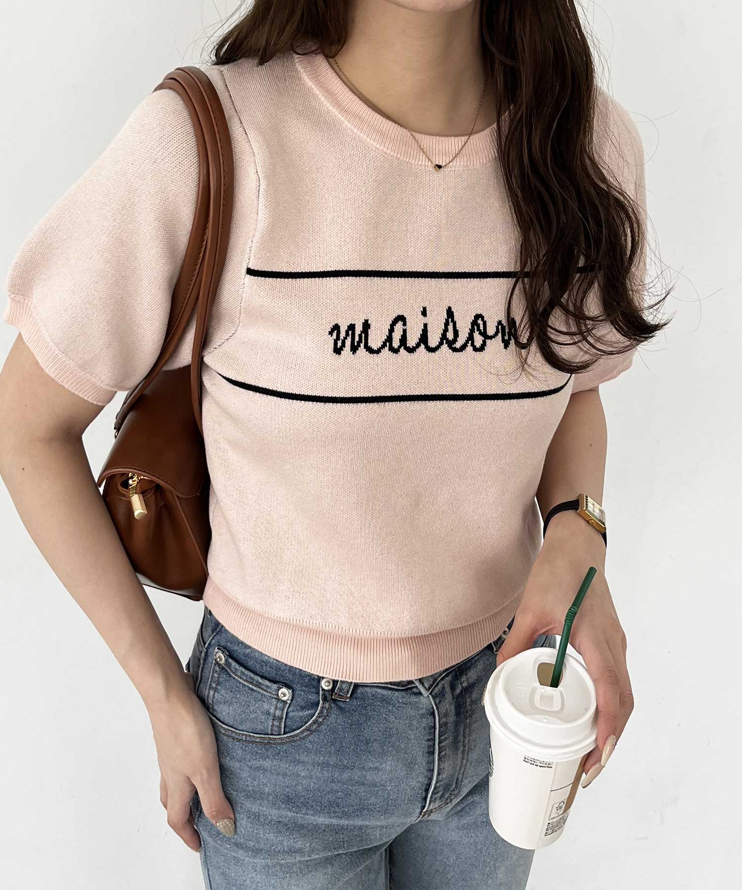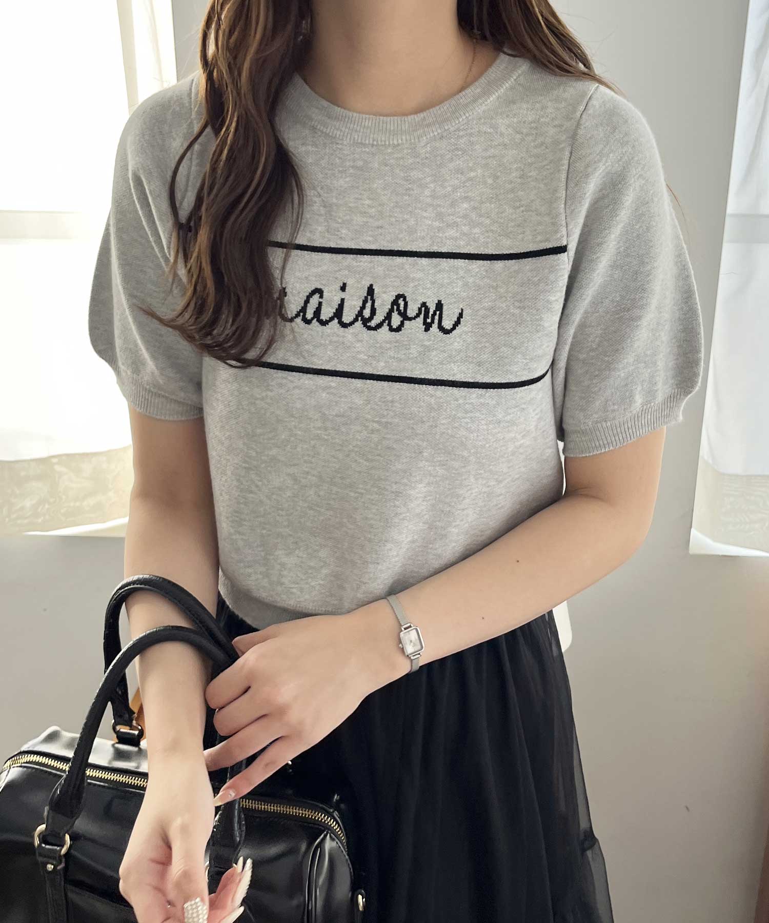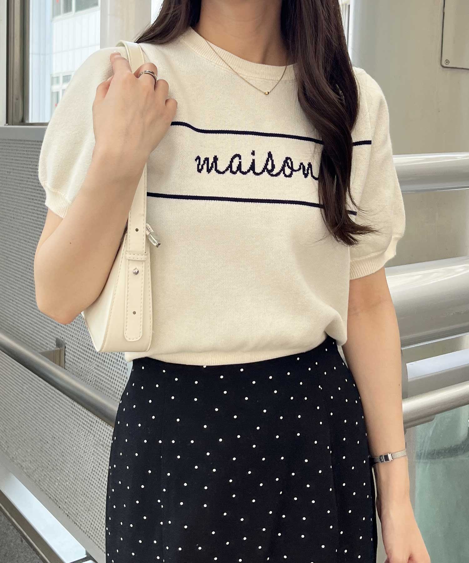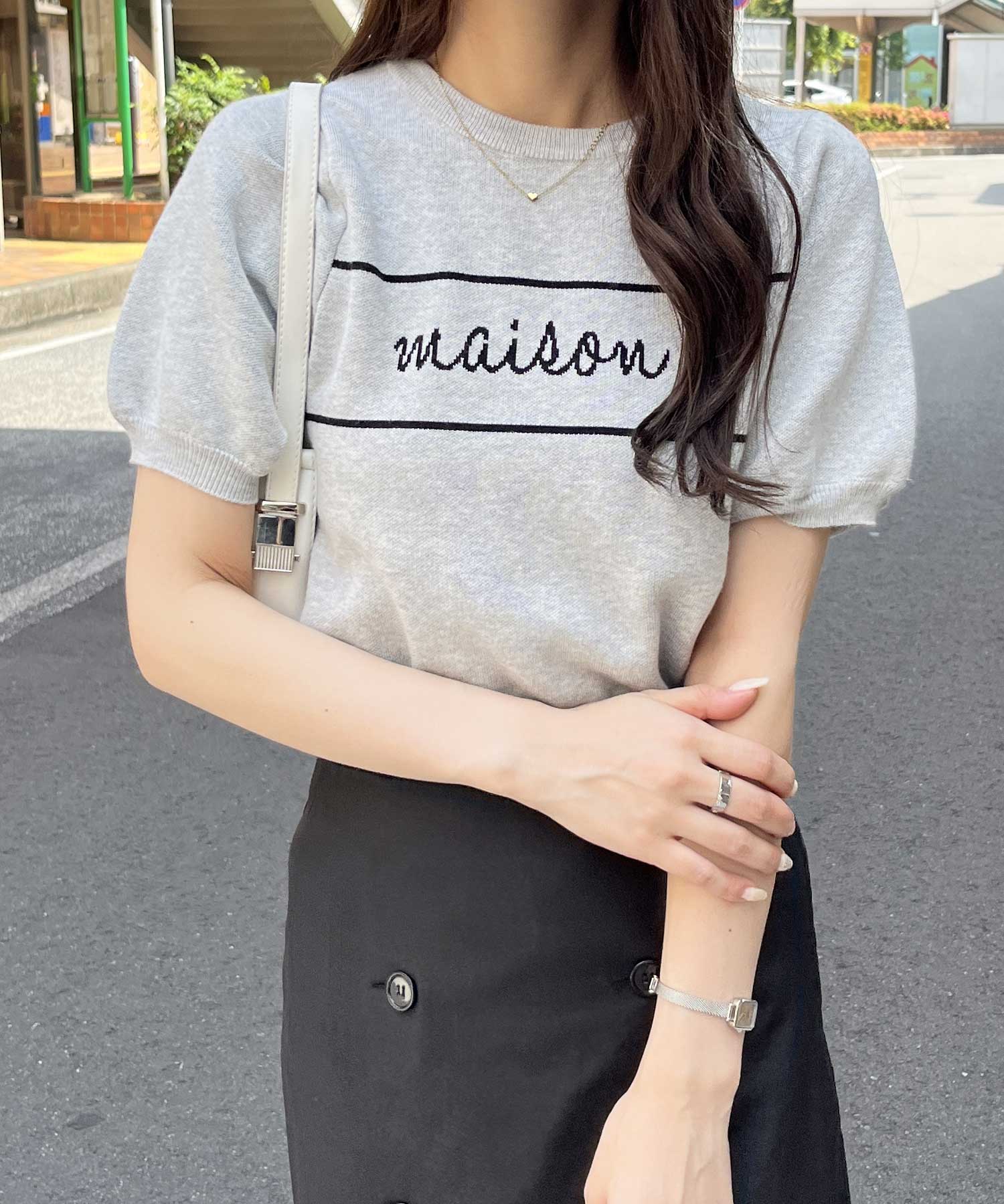 パフスリーブロゴジャガードサマーニット