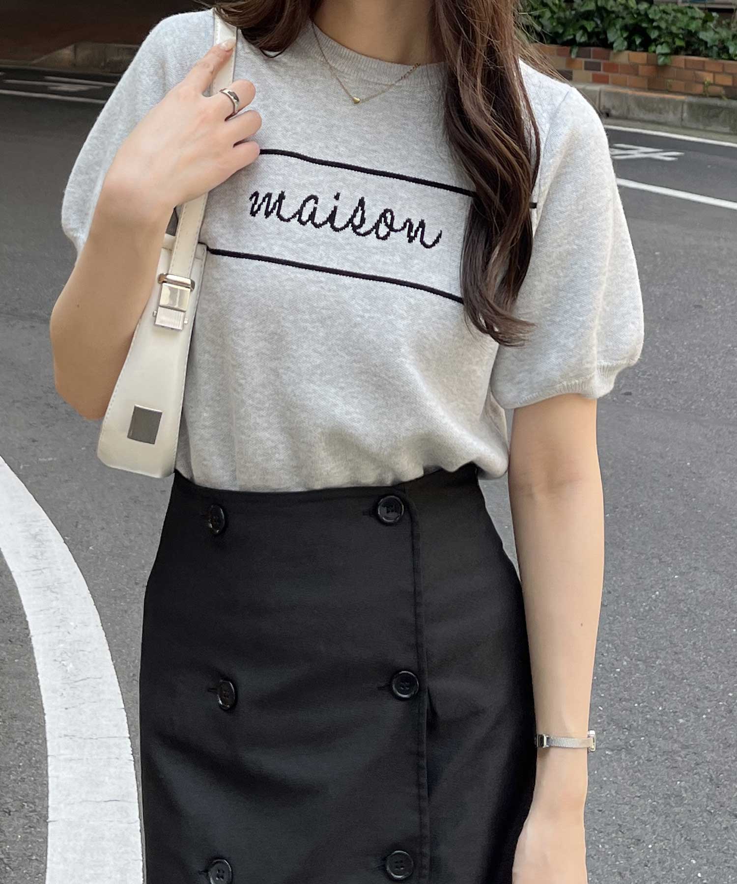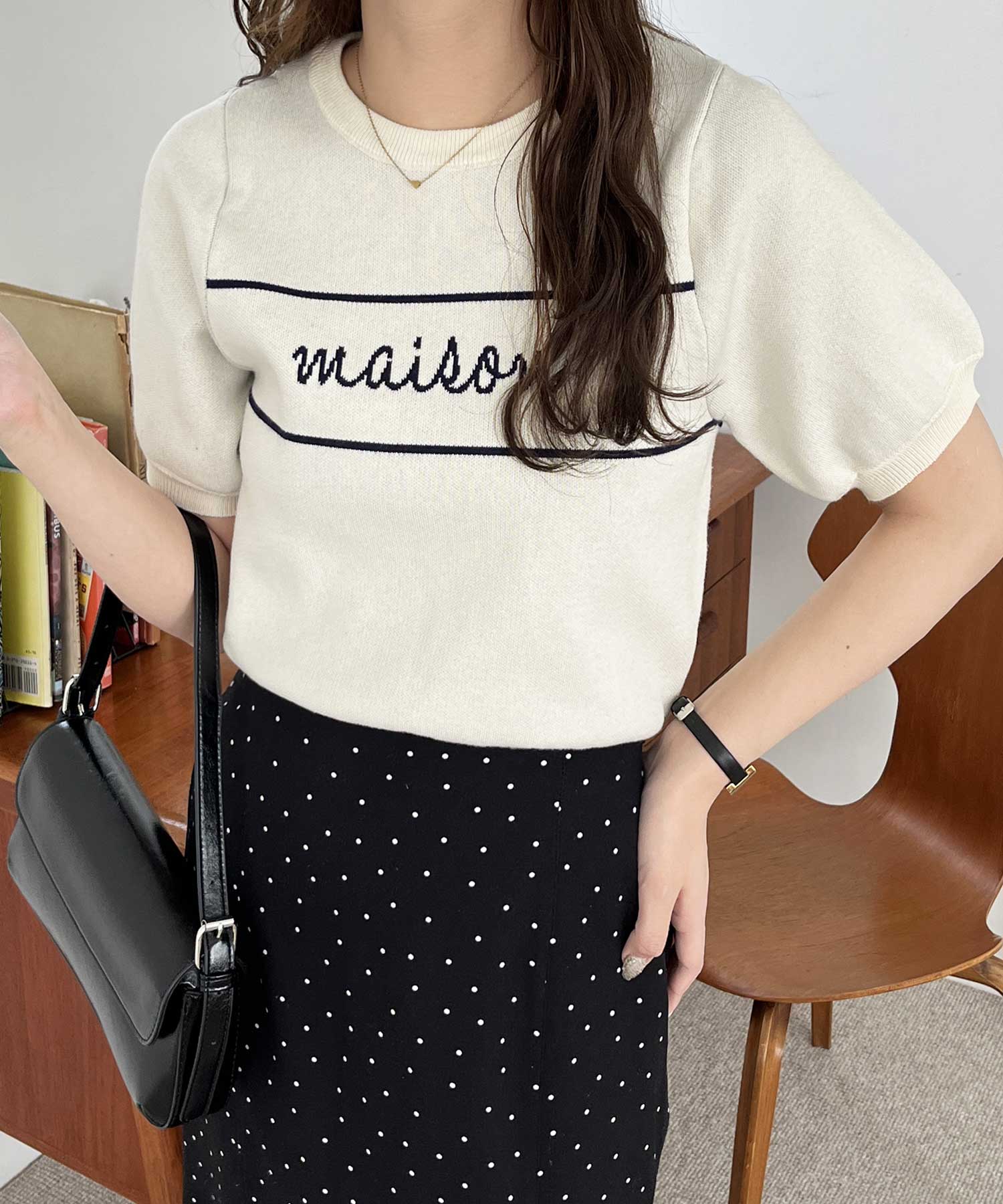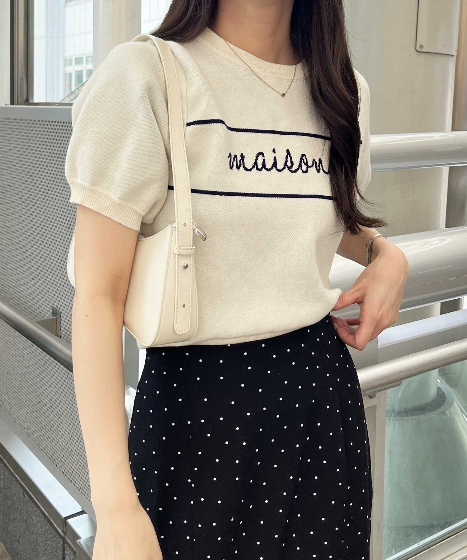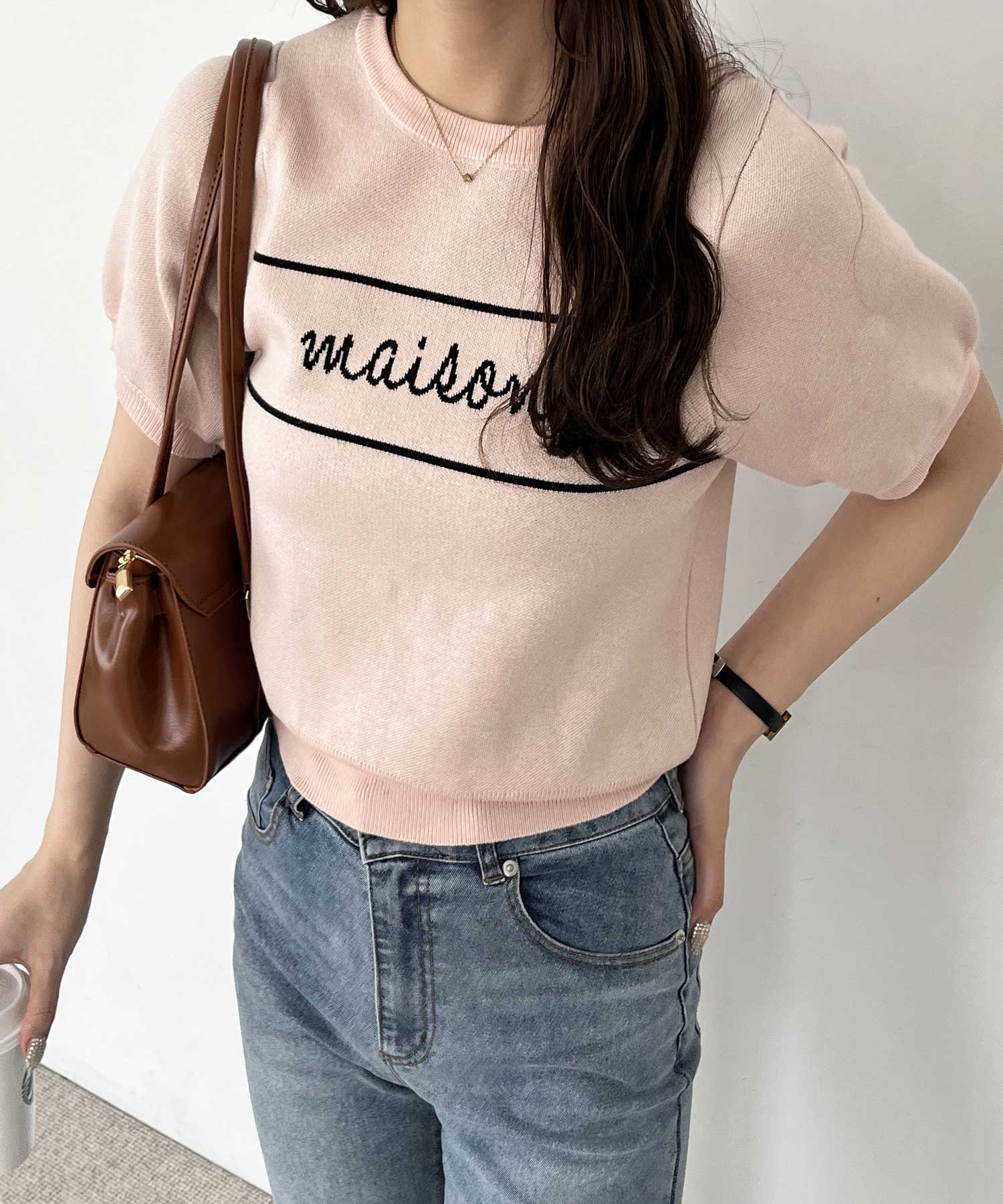 パフスリーブロゴジャガードサマーニット