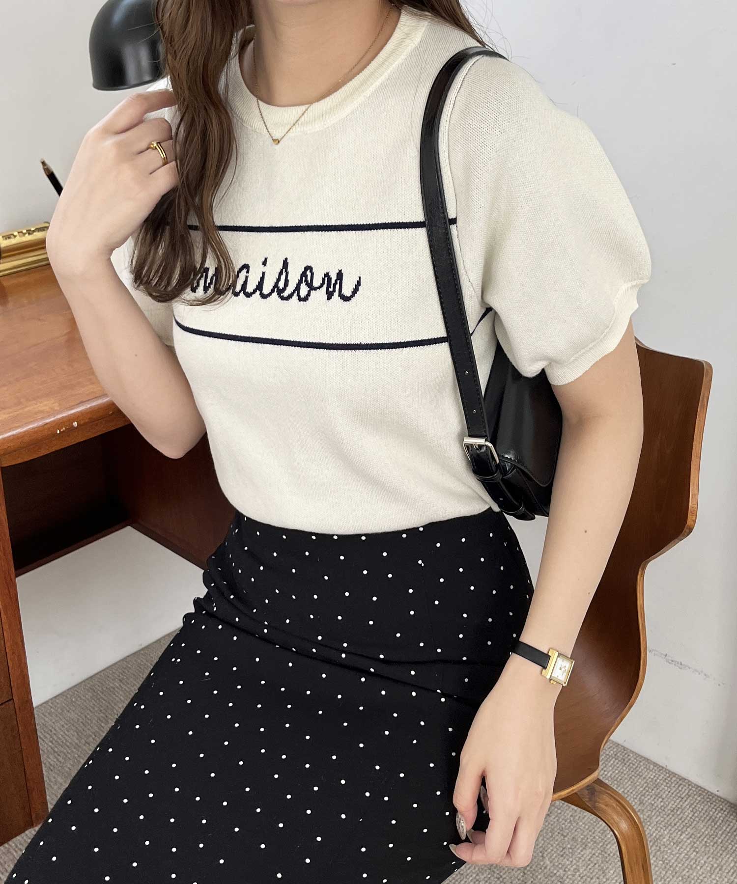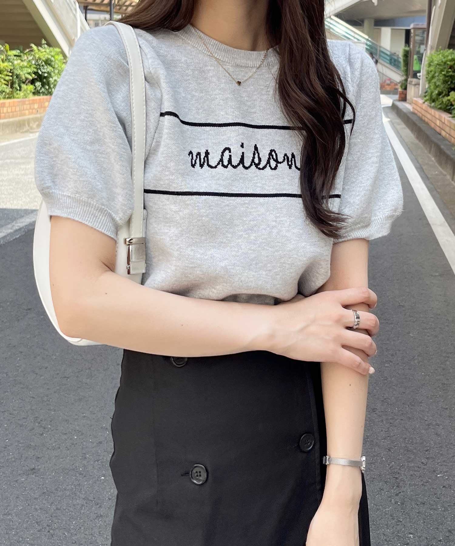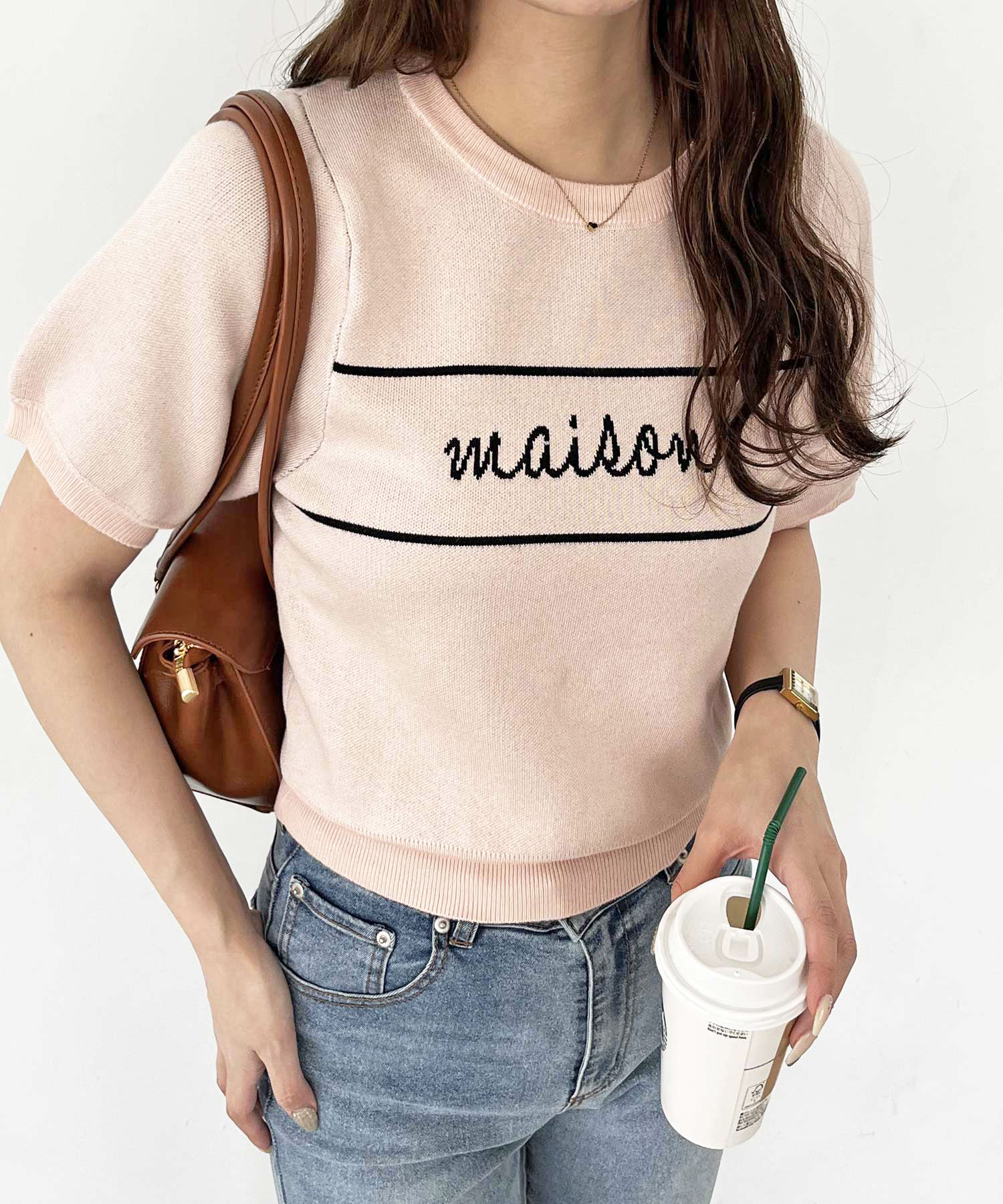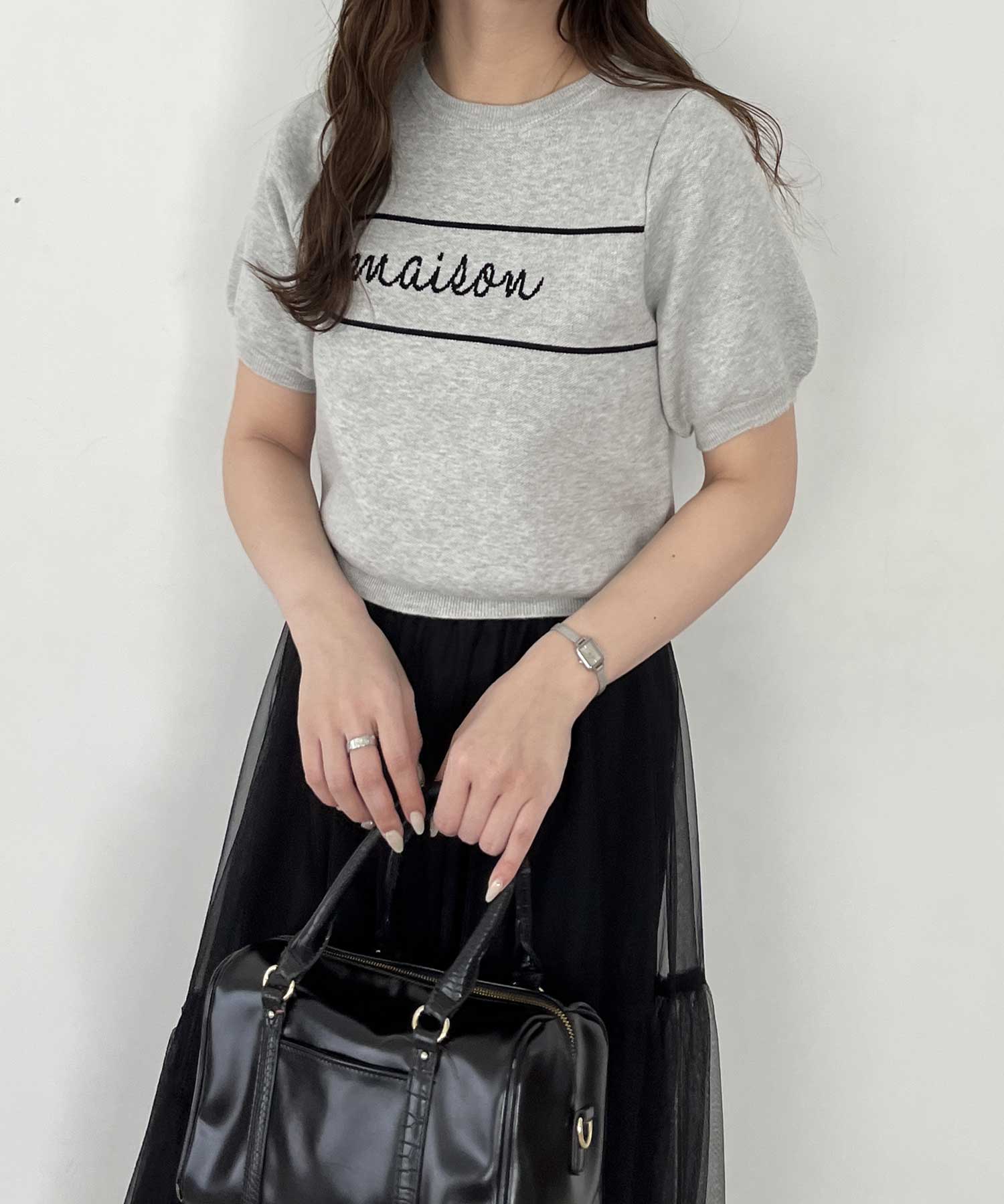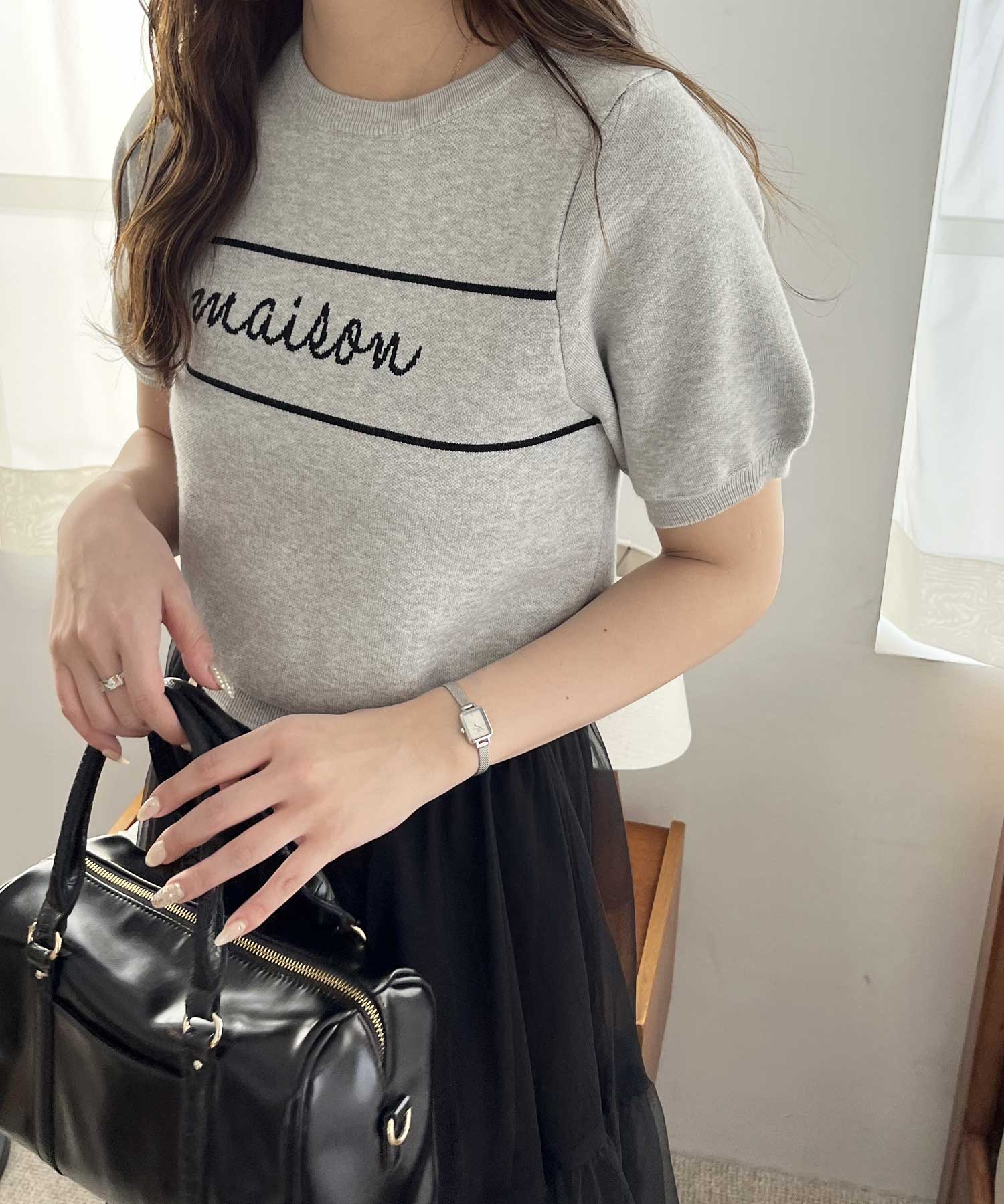 パフスリーブロゴジャガードサマーニット