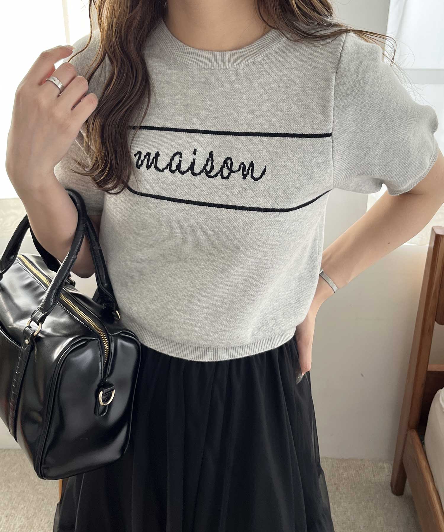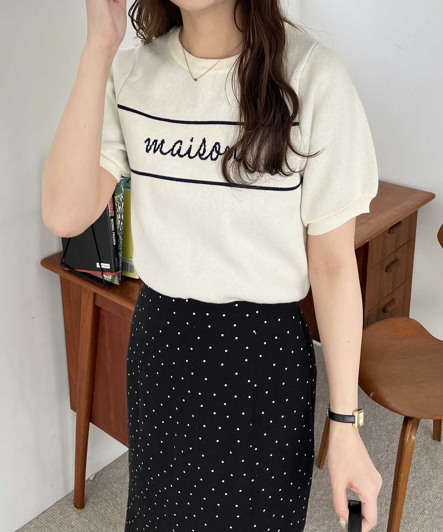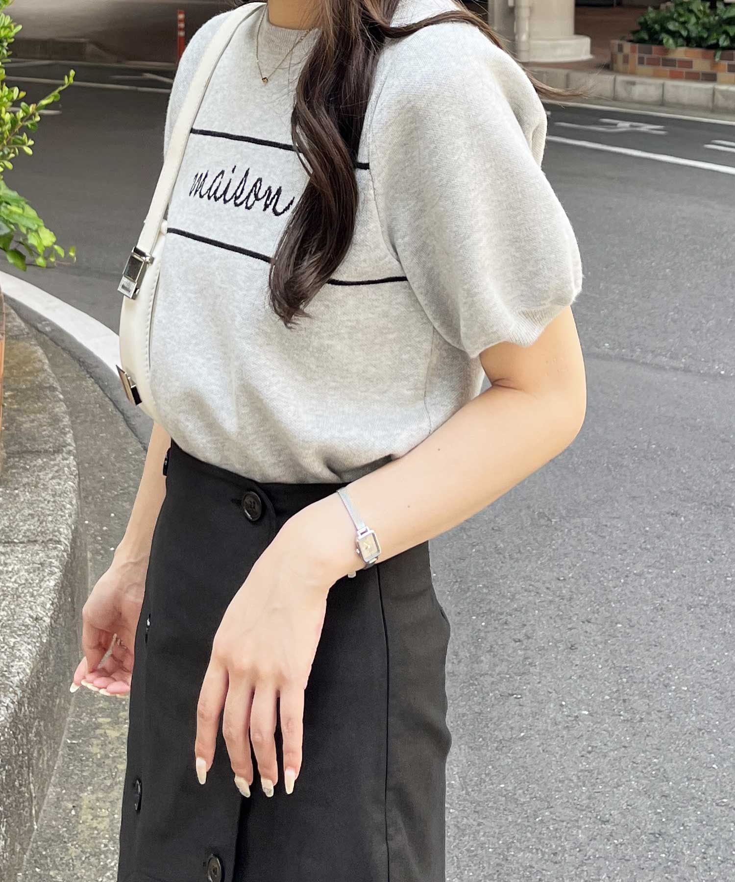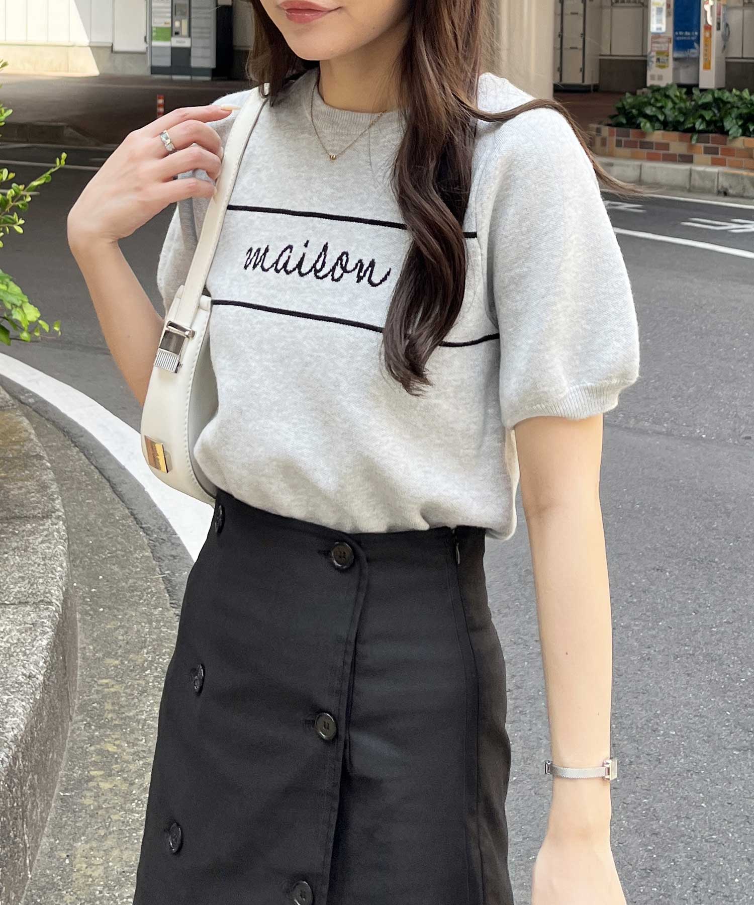 パフスリーブロゴジャガードサマーニット
