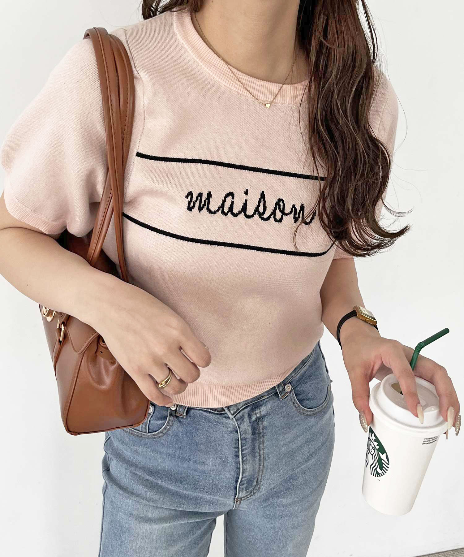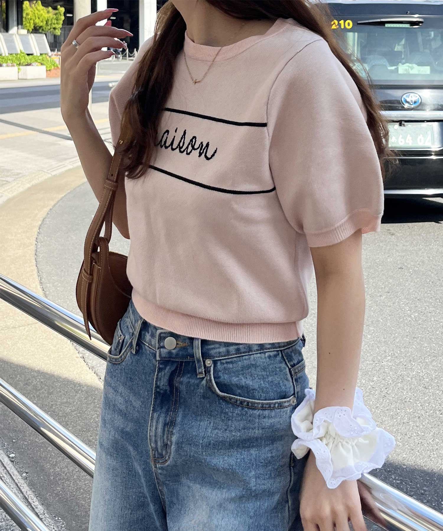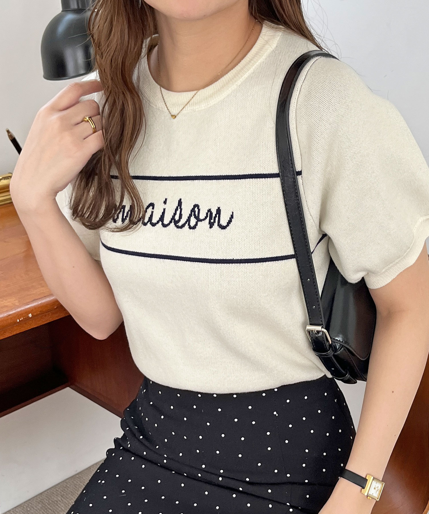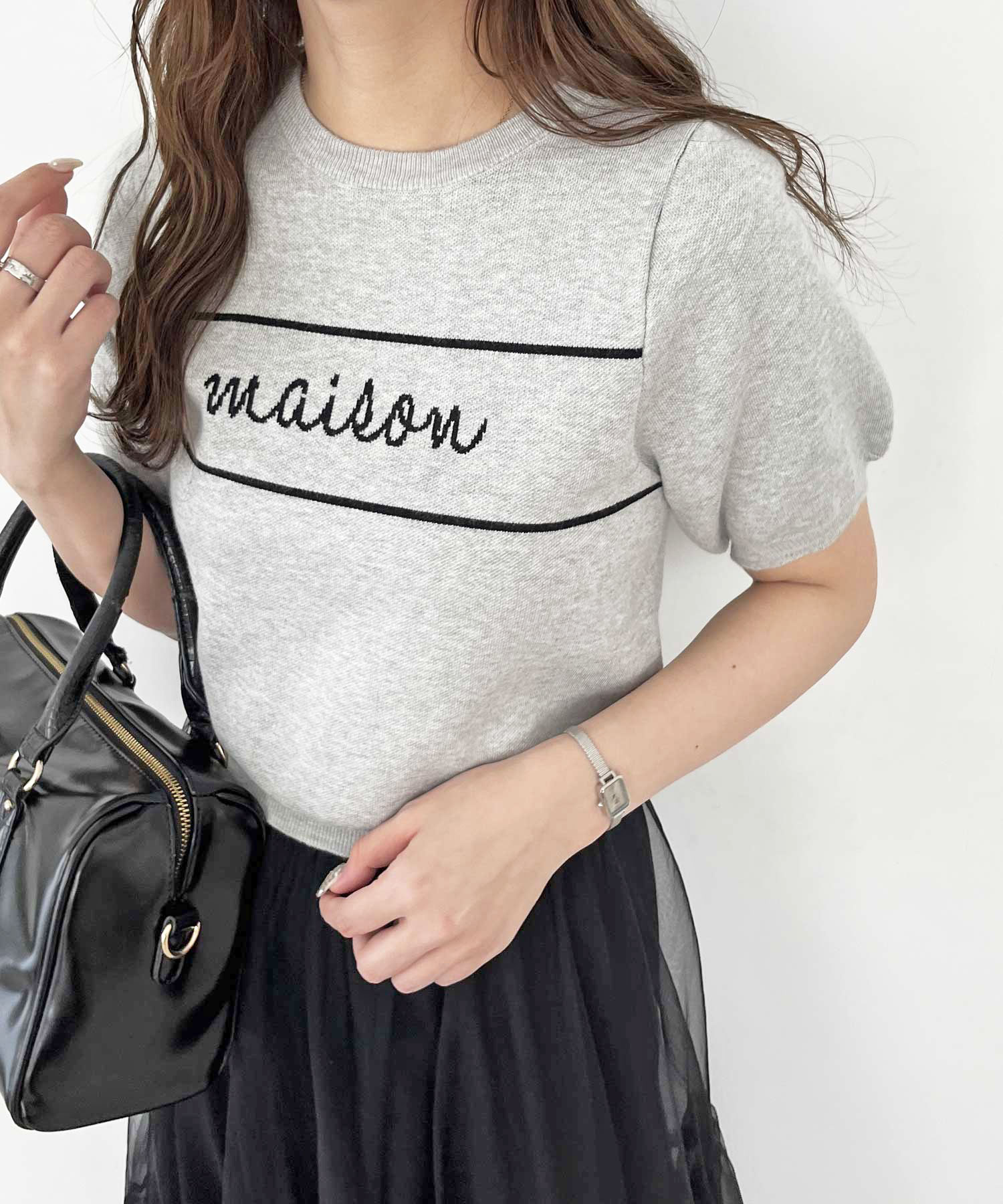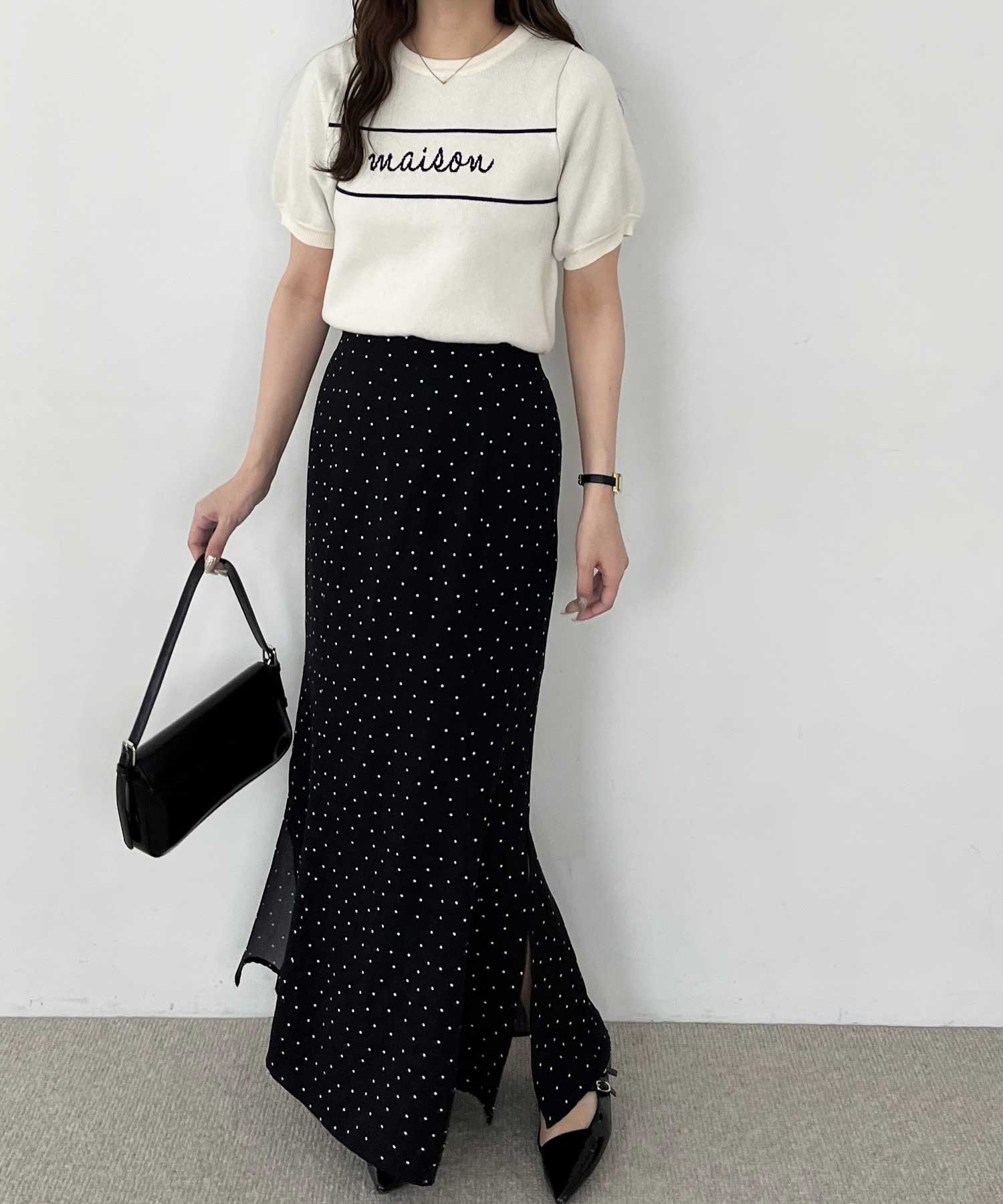 パフスリーブロゴジャガードサマーニット