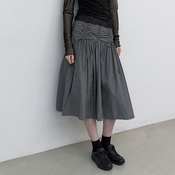 (SK-5079)MICRO CHECK SHIRRING MIDI SKIRT