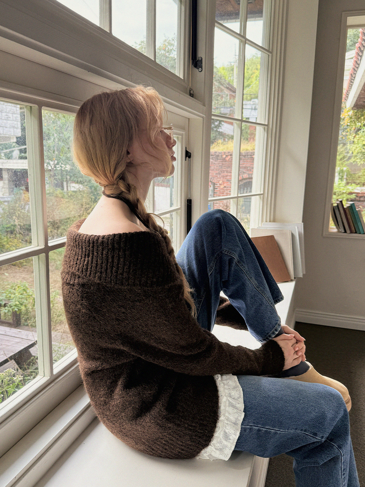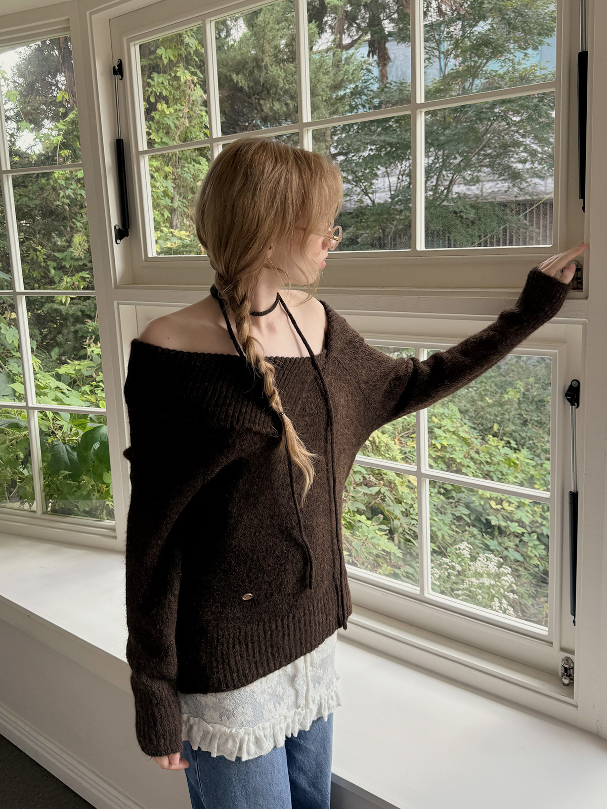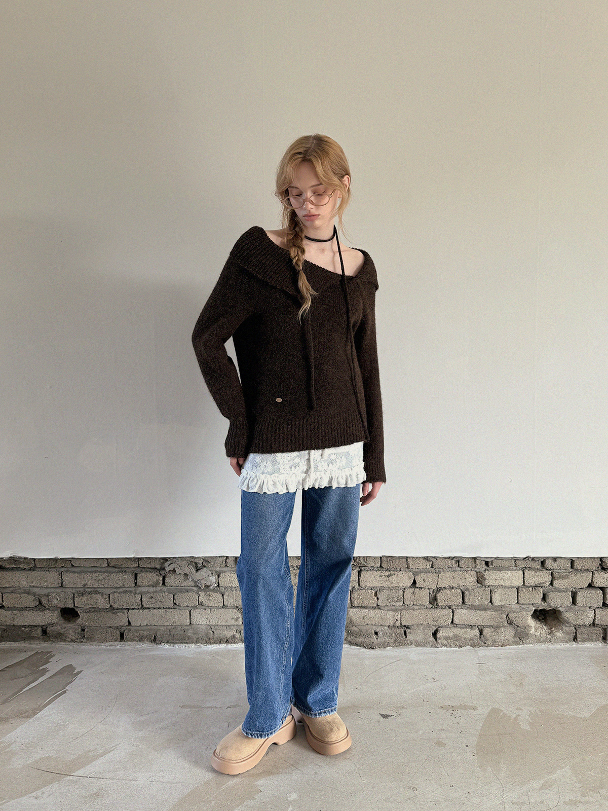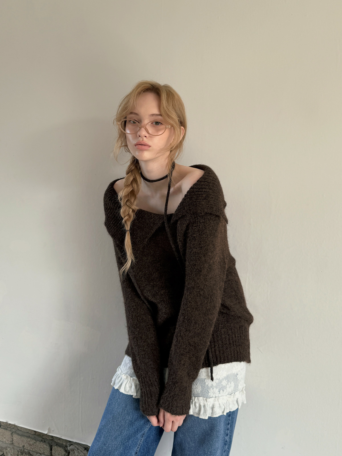 Ecle Asym Neck Loose-Fit Knit (with Strap)
