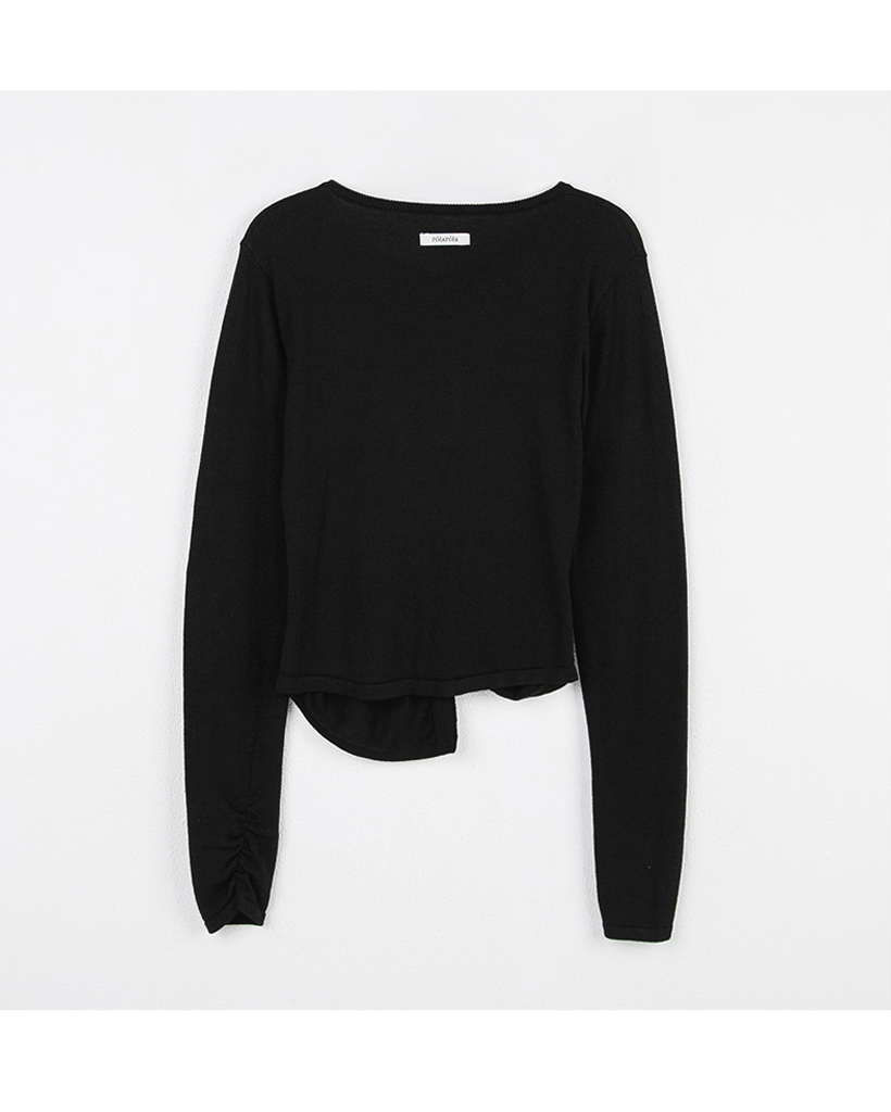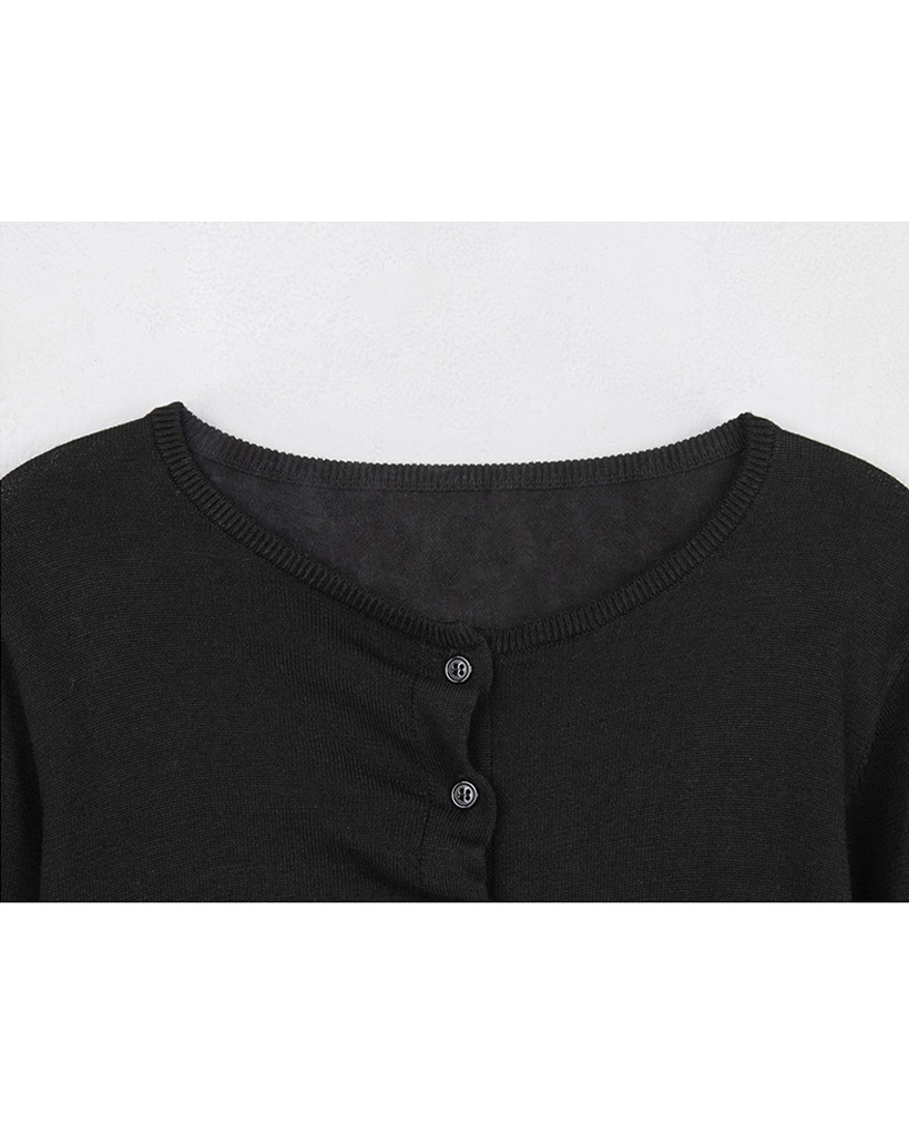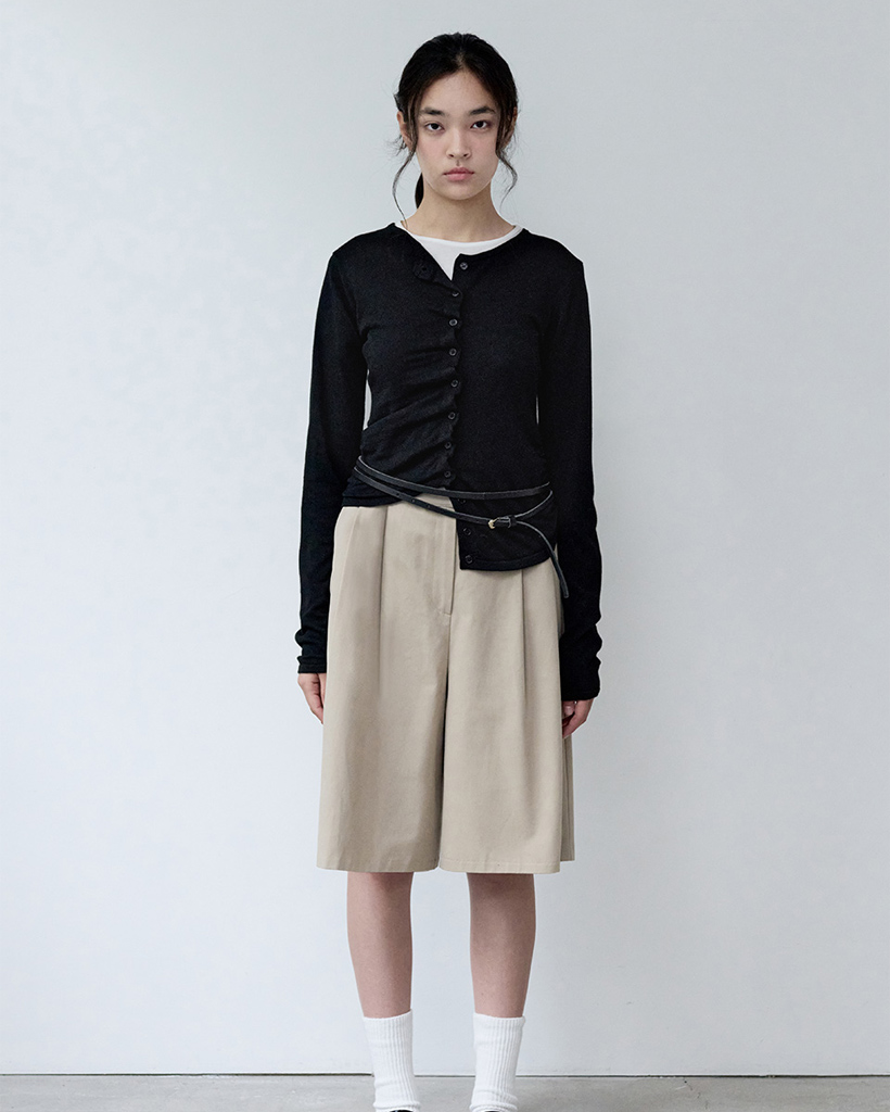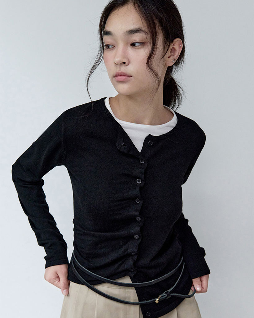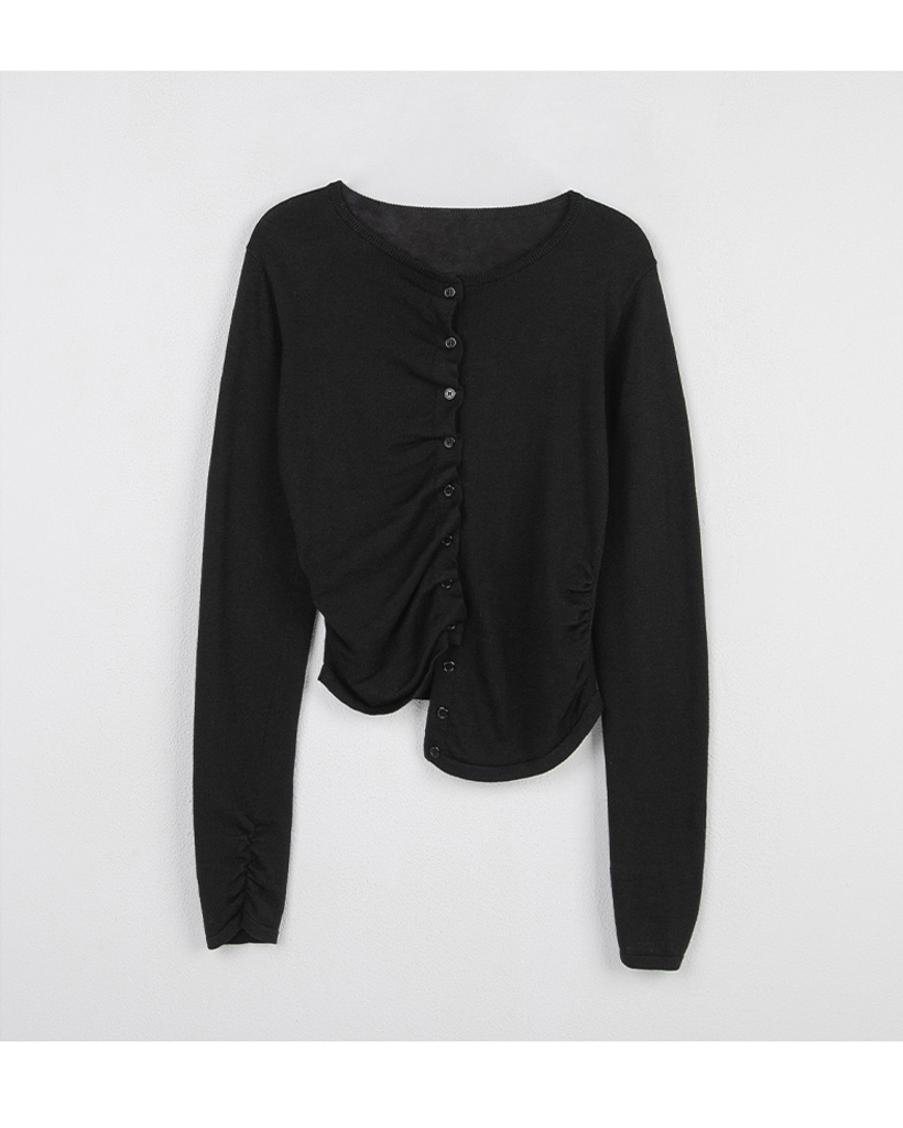 SHIRRING BUTTON UNBALANCE CARDIGAN BLACK