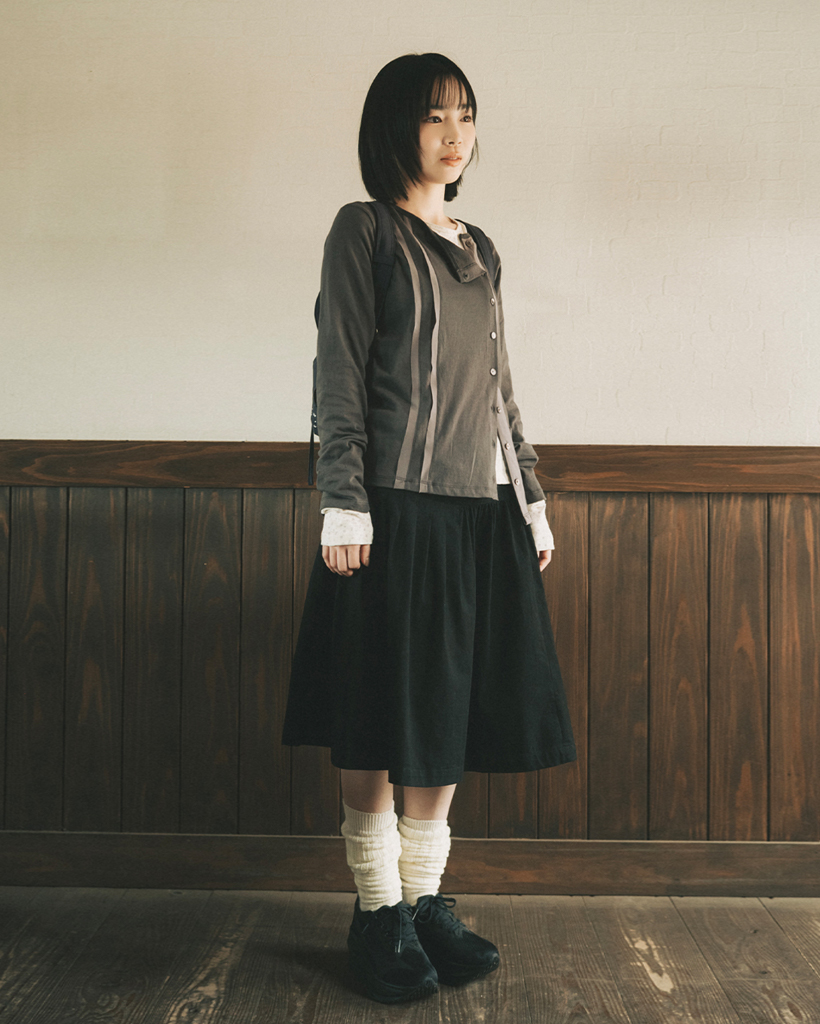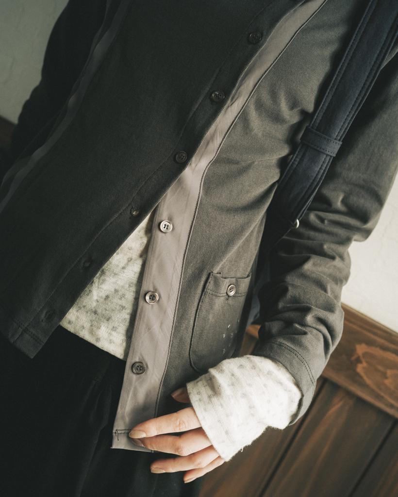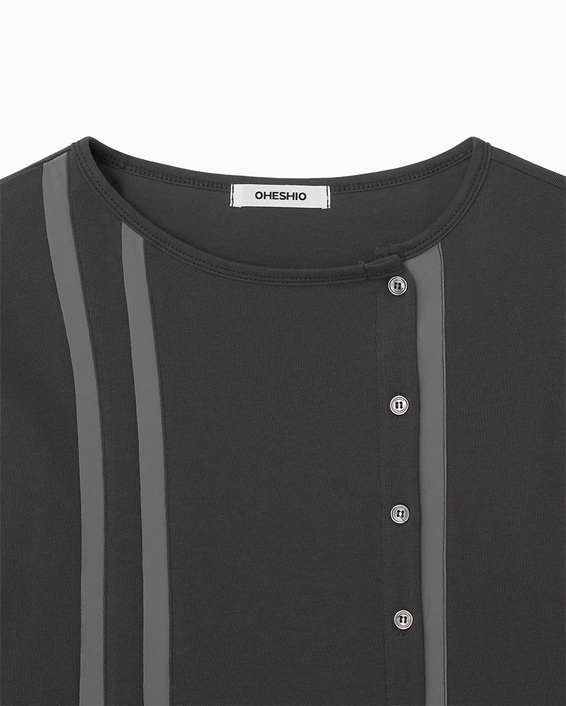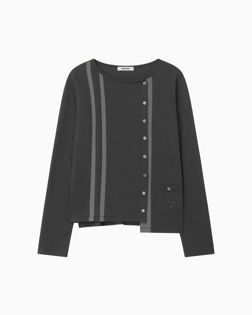 TWO-TONE LINE POCKET CARDIGAN, CHARCOAL