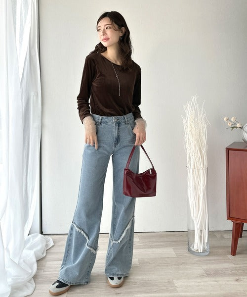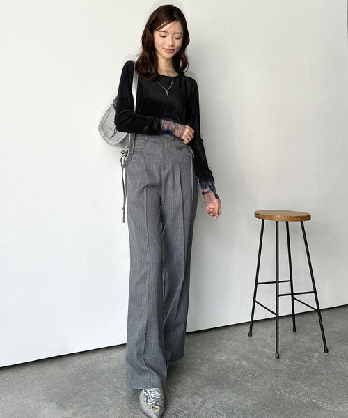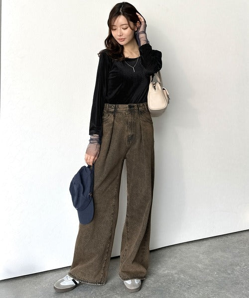 デニムやタックパンツに合わせて、甘さとモード感のバランスを取ったスタイリングも♡