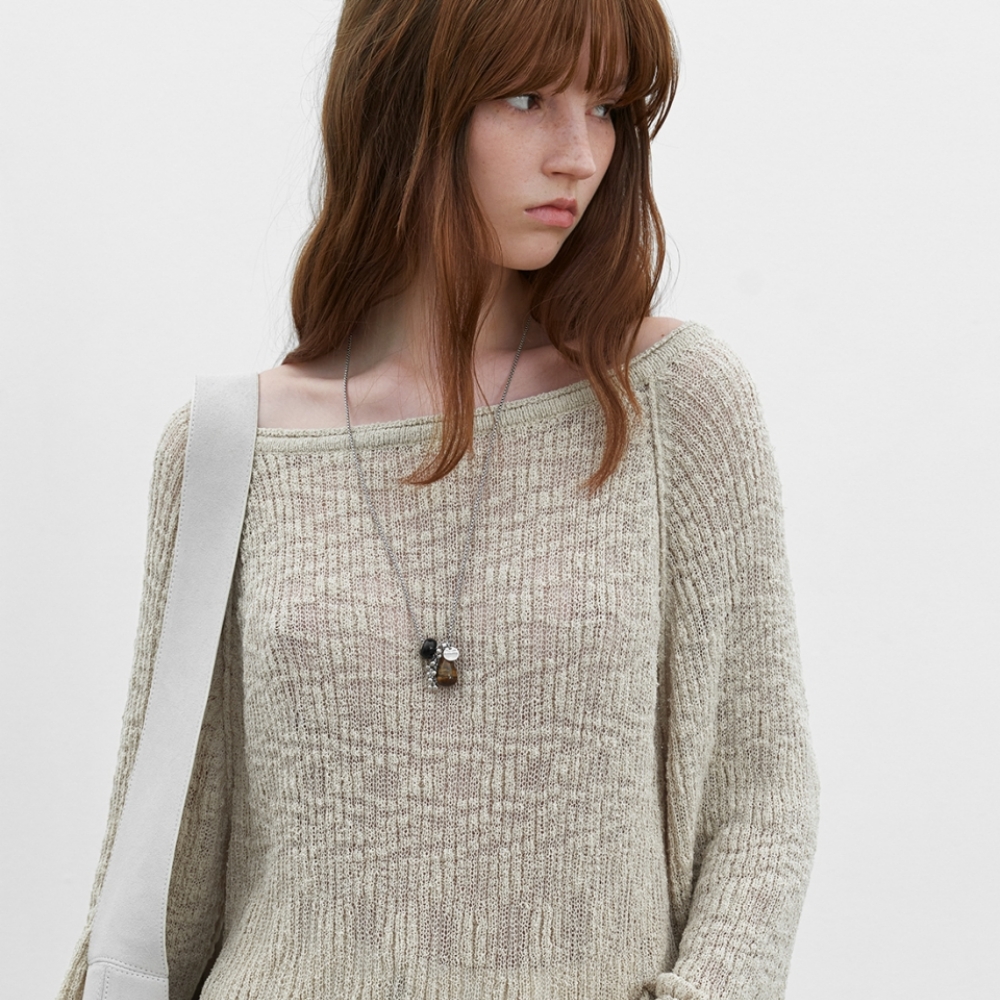 ワイドなボートネックとして、またはワンオフショルダーとしても着用でき、さまざまなアレンジが楽しめます。