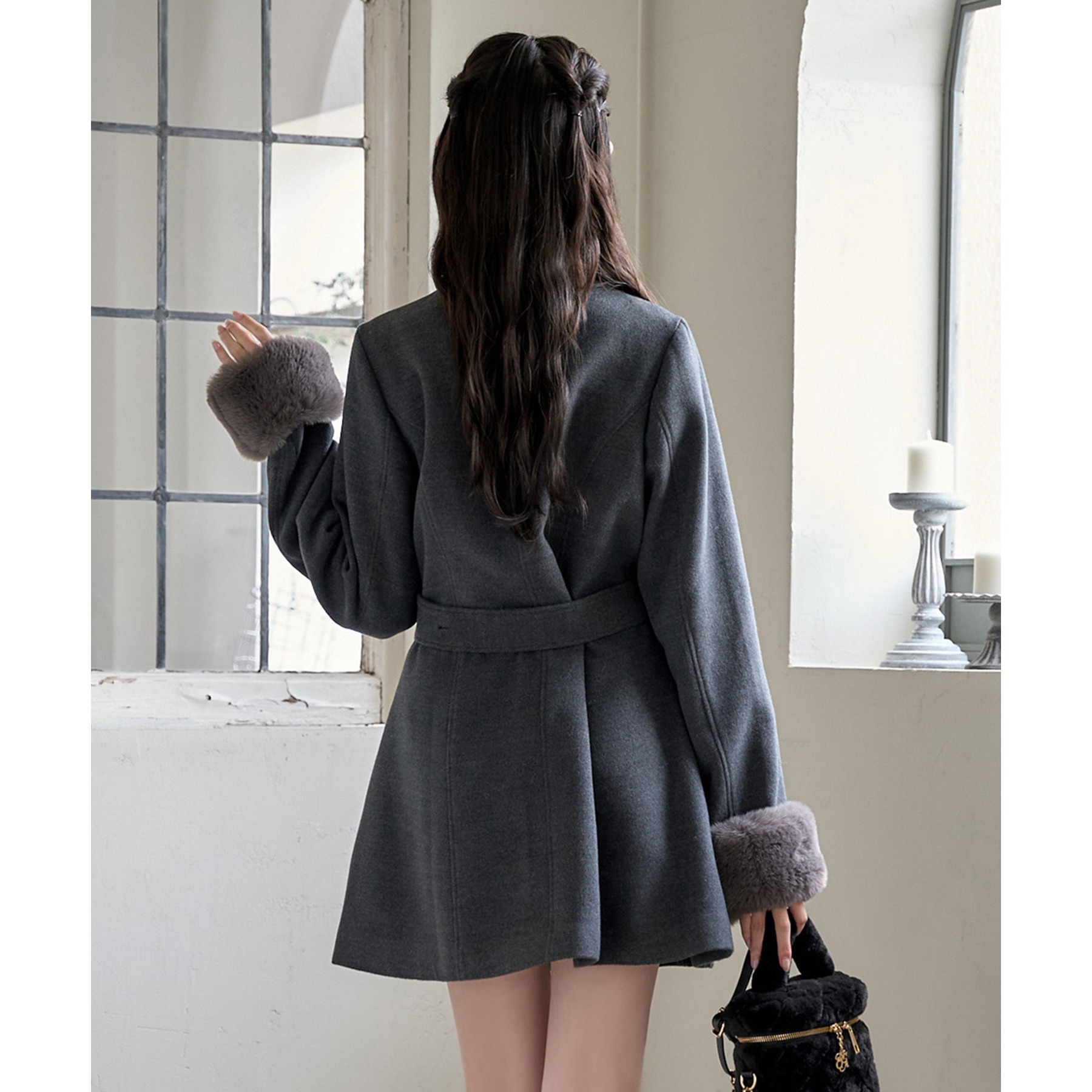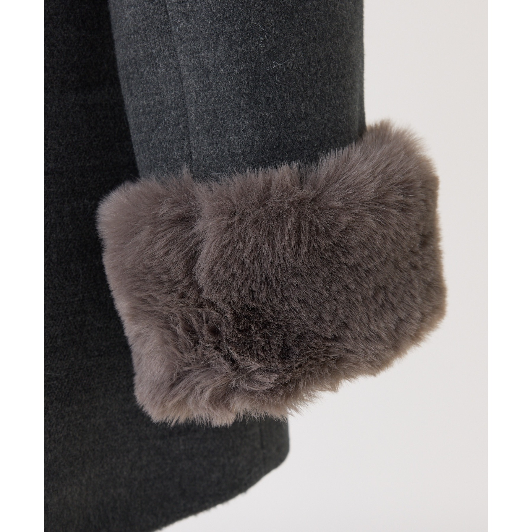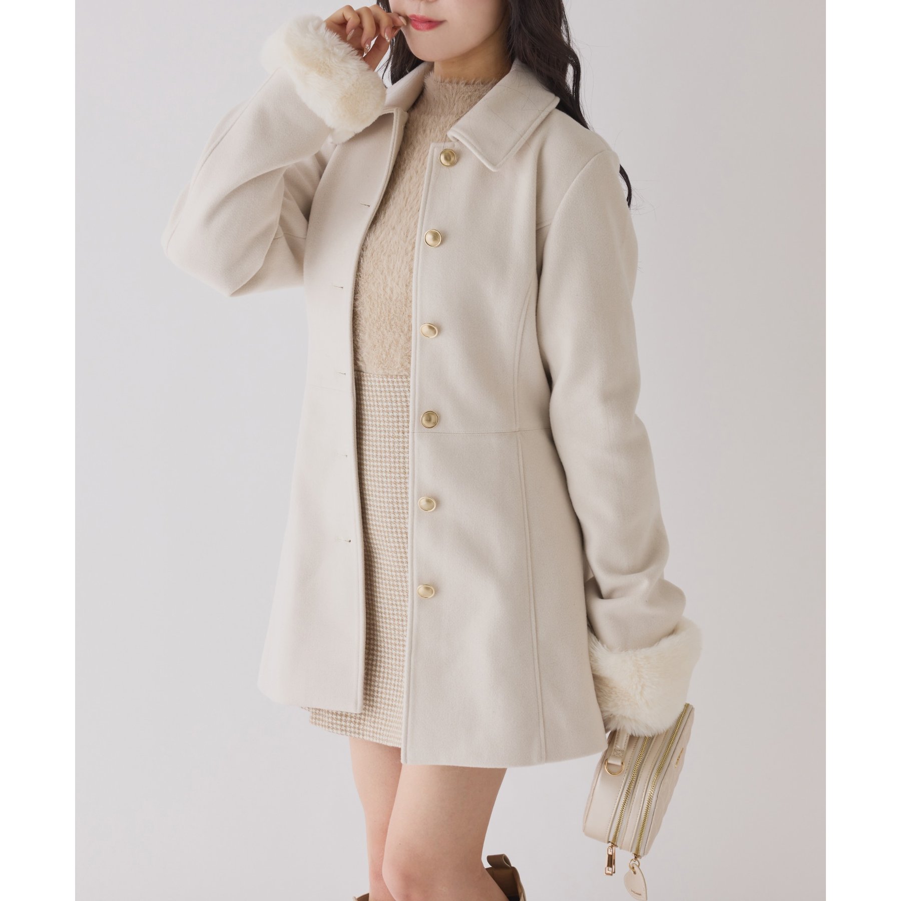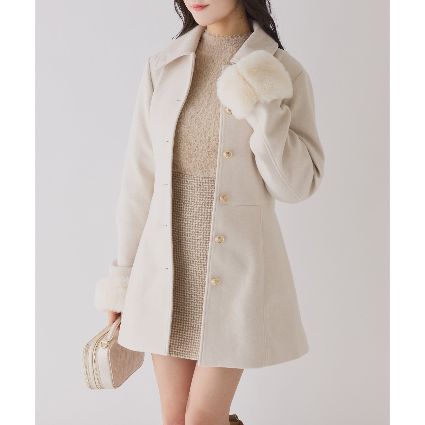 【アイボリー】表地:ポリエステル80% レーヨン20% 裏地/ファー:ポリエステル100% 【チャコールグレー】表地/裏地/ファー:ポリエステル100% 【ブラック系その他】表地:ポリエステル80% ウール20% 裏地/ファー:ポリエステル100%
