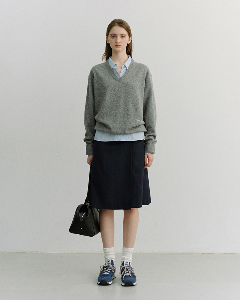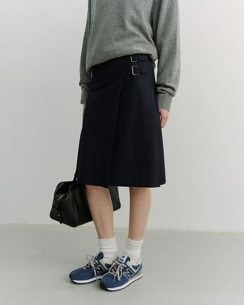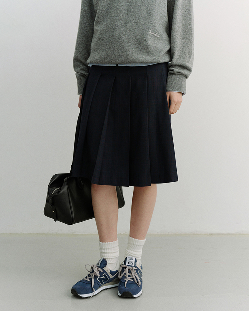 PLEATS MIDI SKIRT NAVY CHECK_UDSK6A203MU