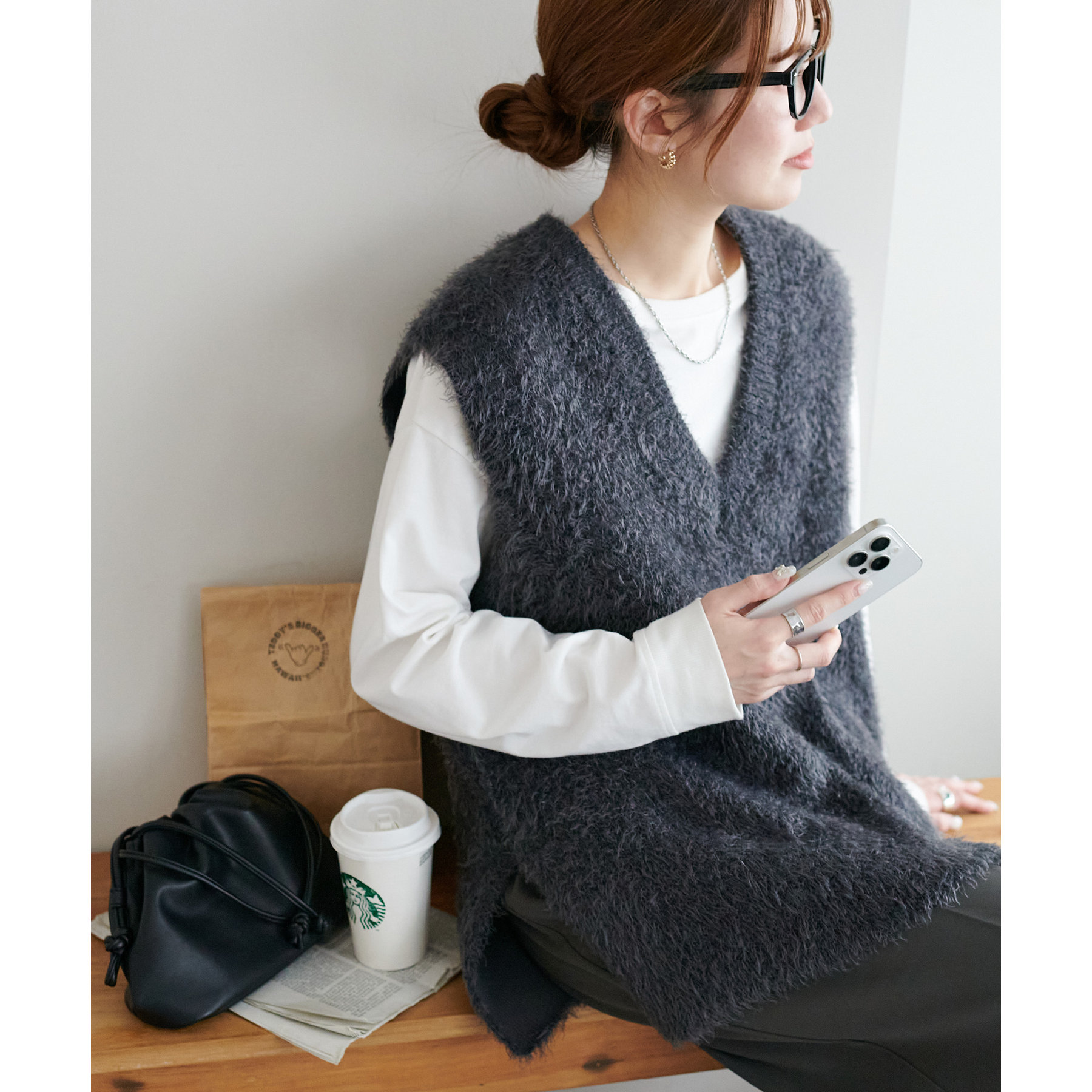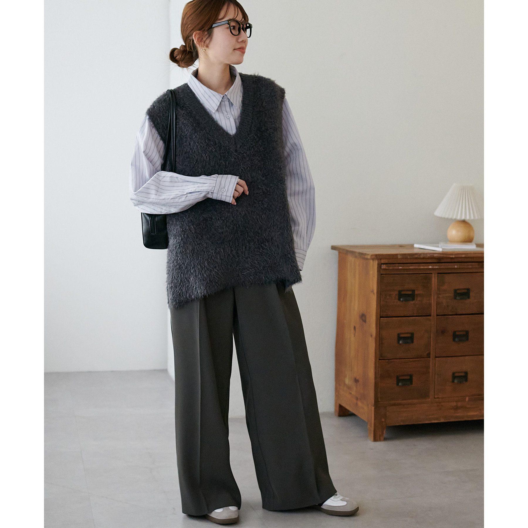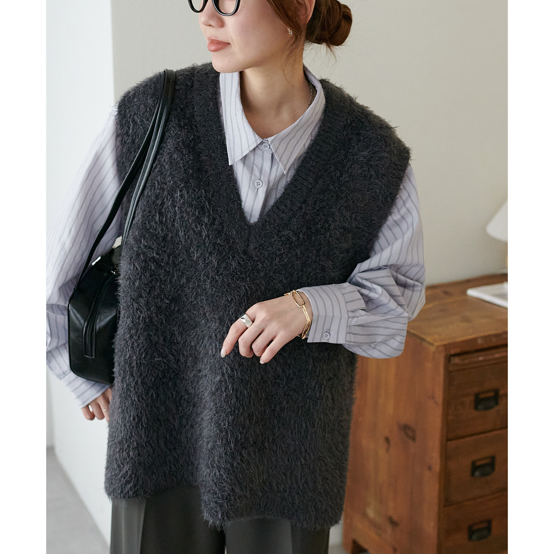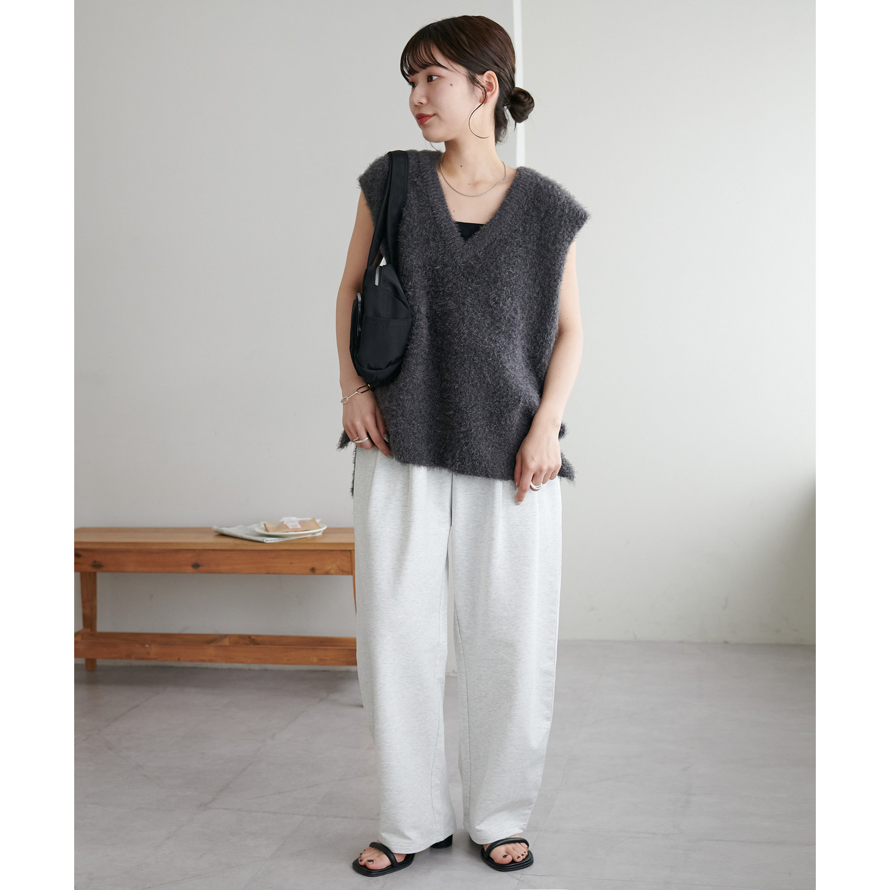 155㎝スタッフ: 着心地も触り心地も抜群なベスト。ゆったりとしたサイズ感がリラクシーな着心地に♡インナーにシャツやブラウス合わせても窮屈感なく着られます♪