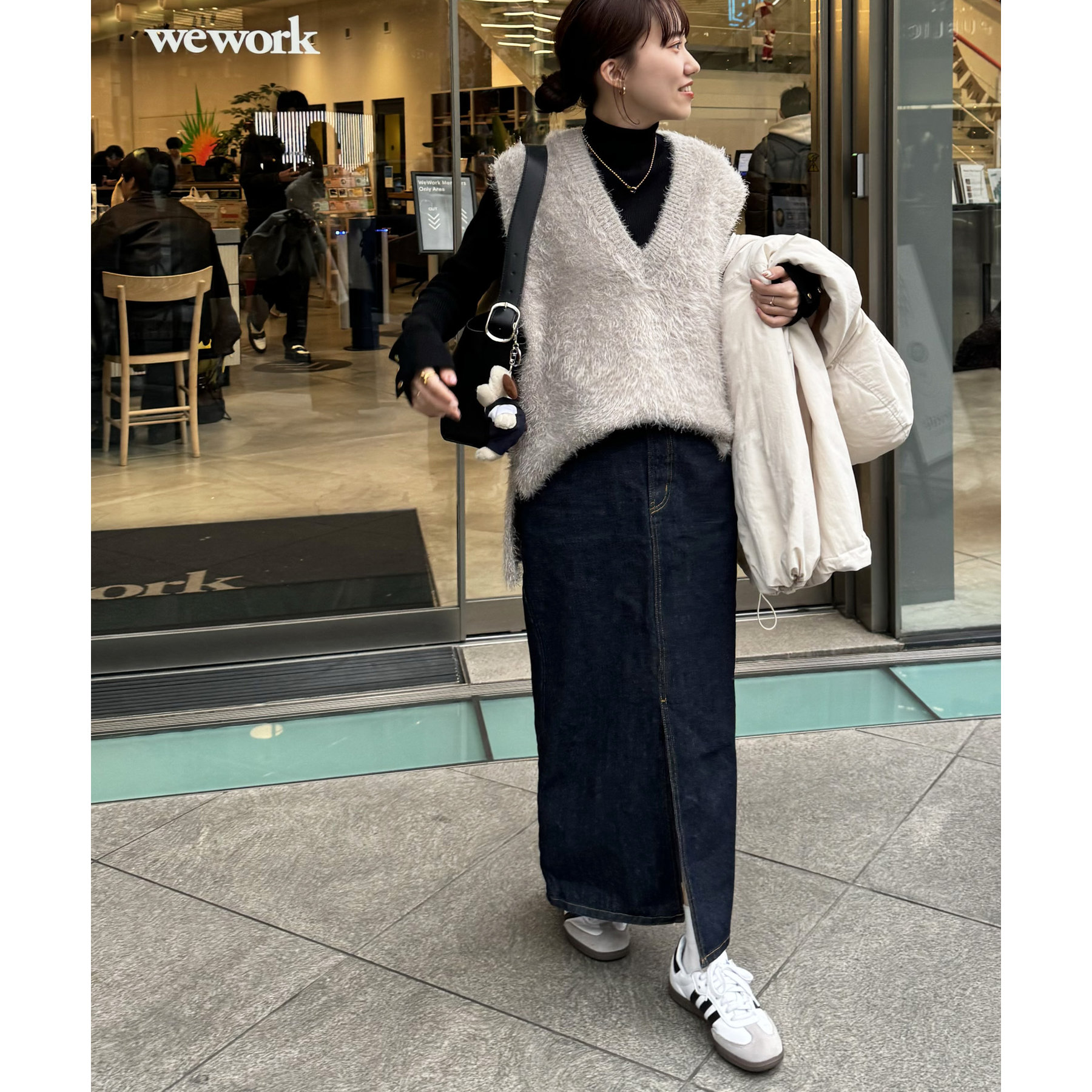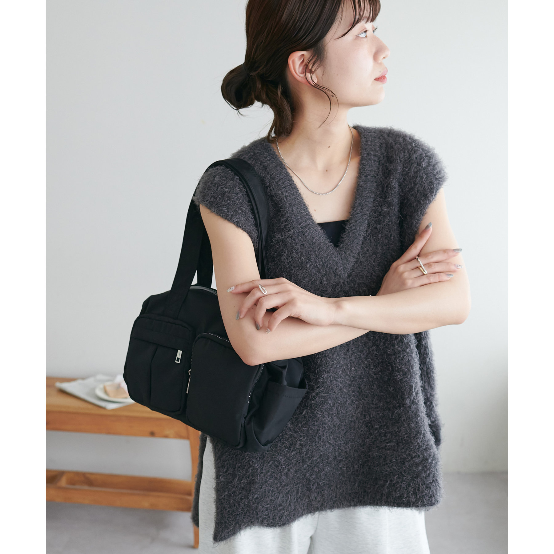 カジュアルなデニムスタイルにも、フェミニンなスカートスタイルにも合わせやすく、幅広いコーディネートで活躍してくれるアイテム。