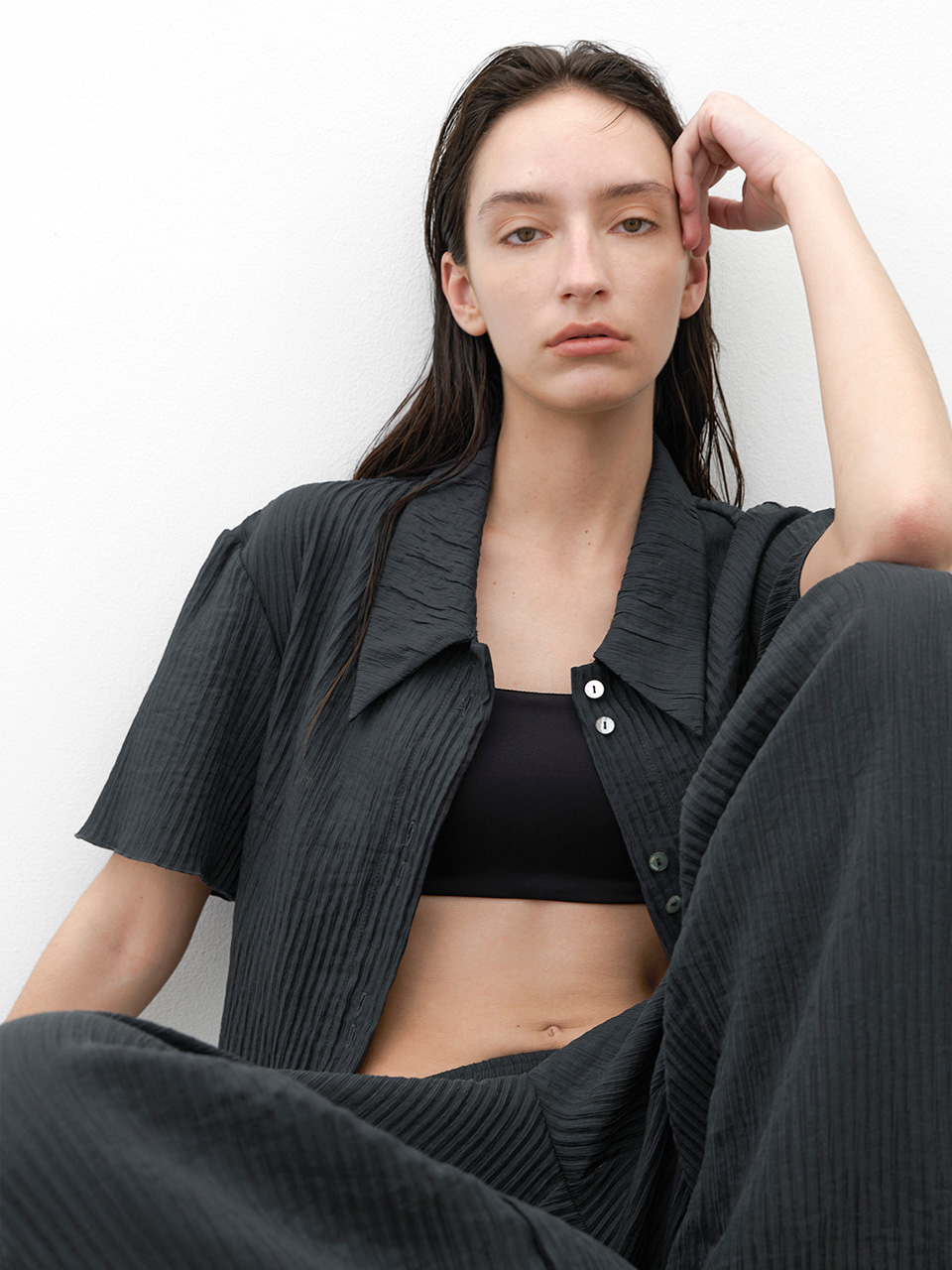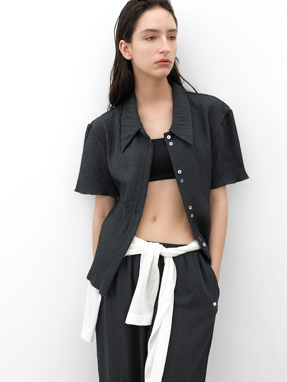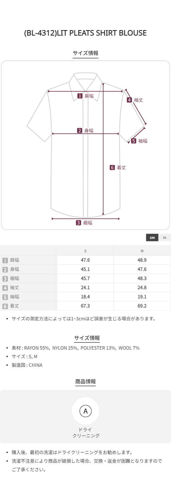 (BL-4312)LIT PLEATS SHIRT BLOUSE