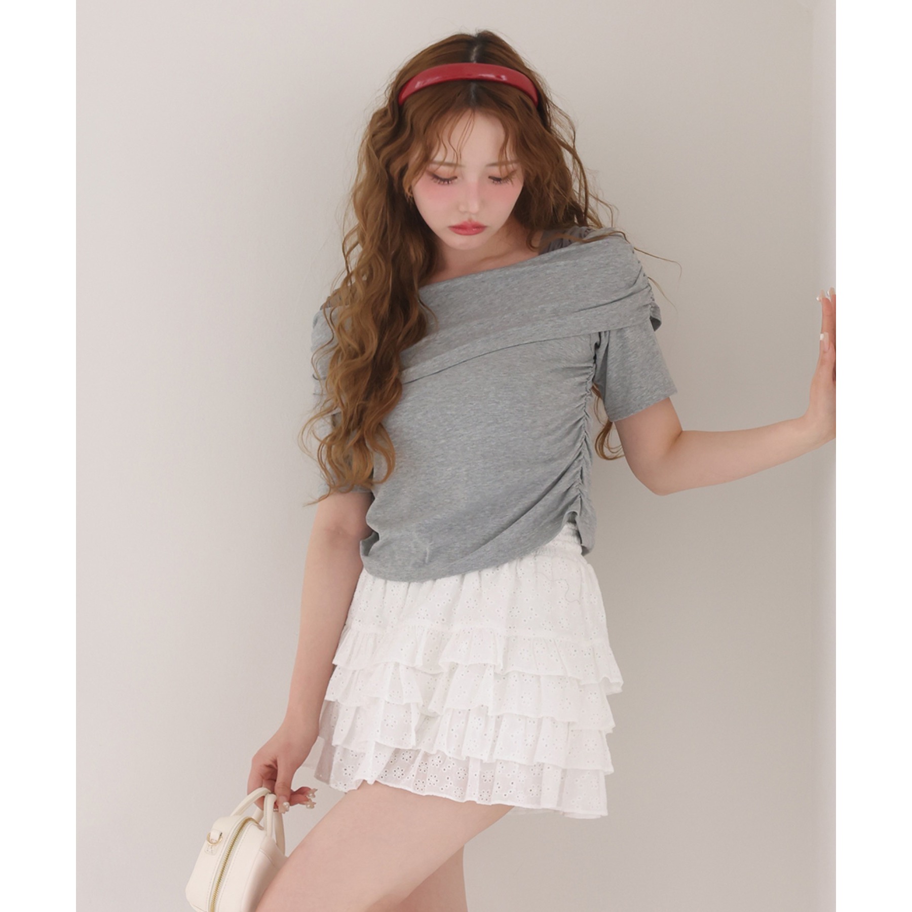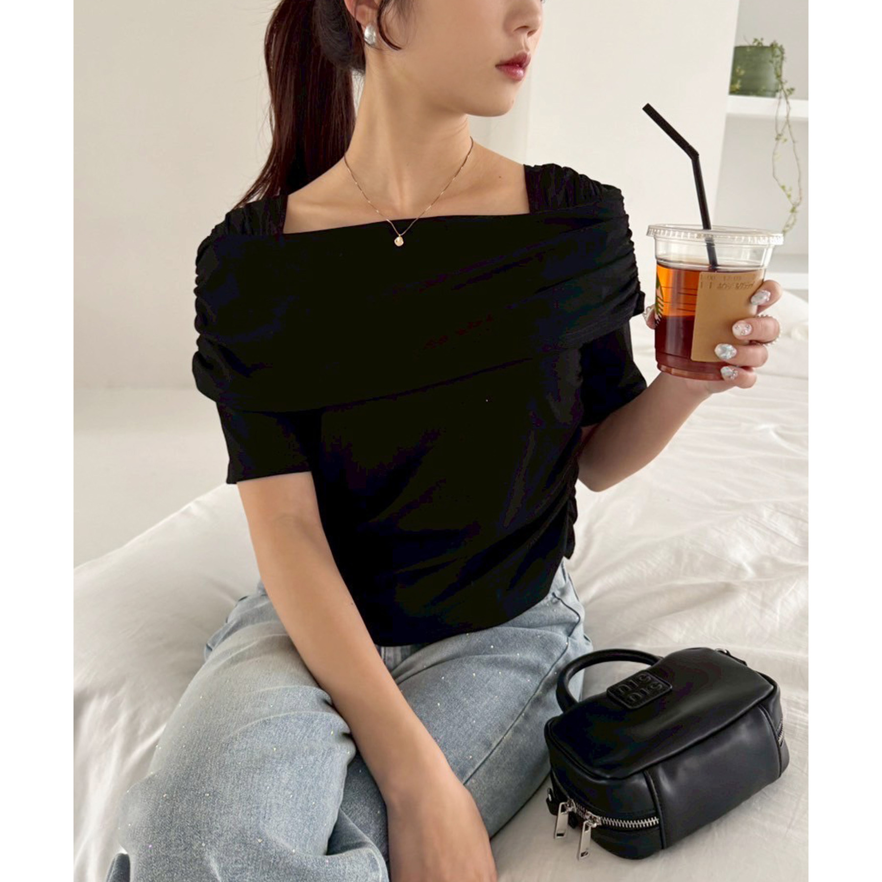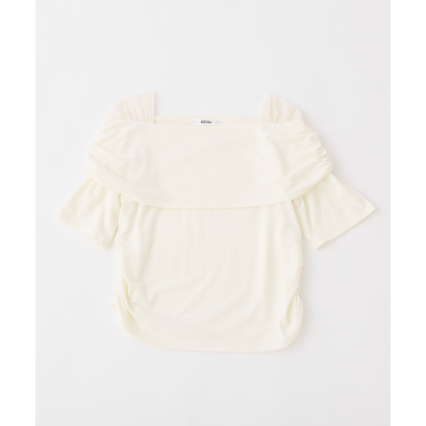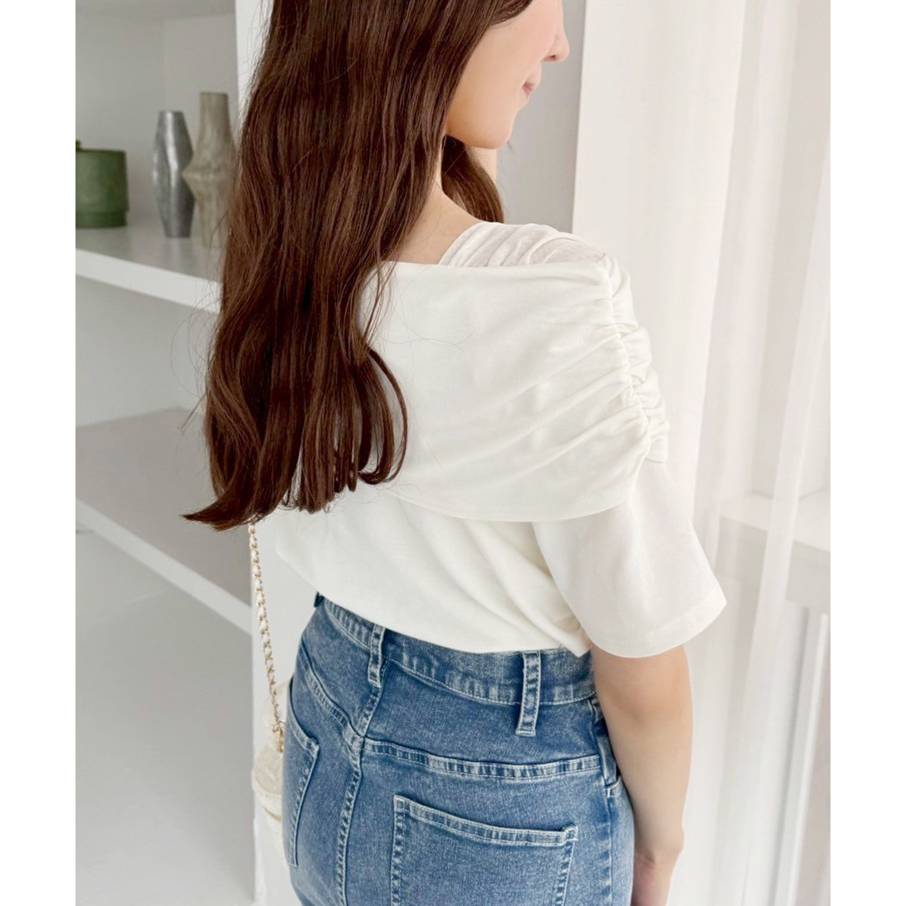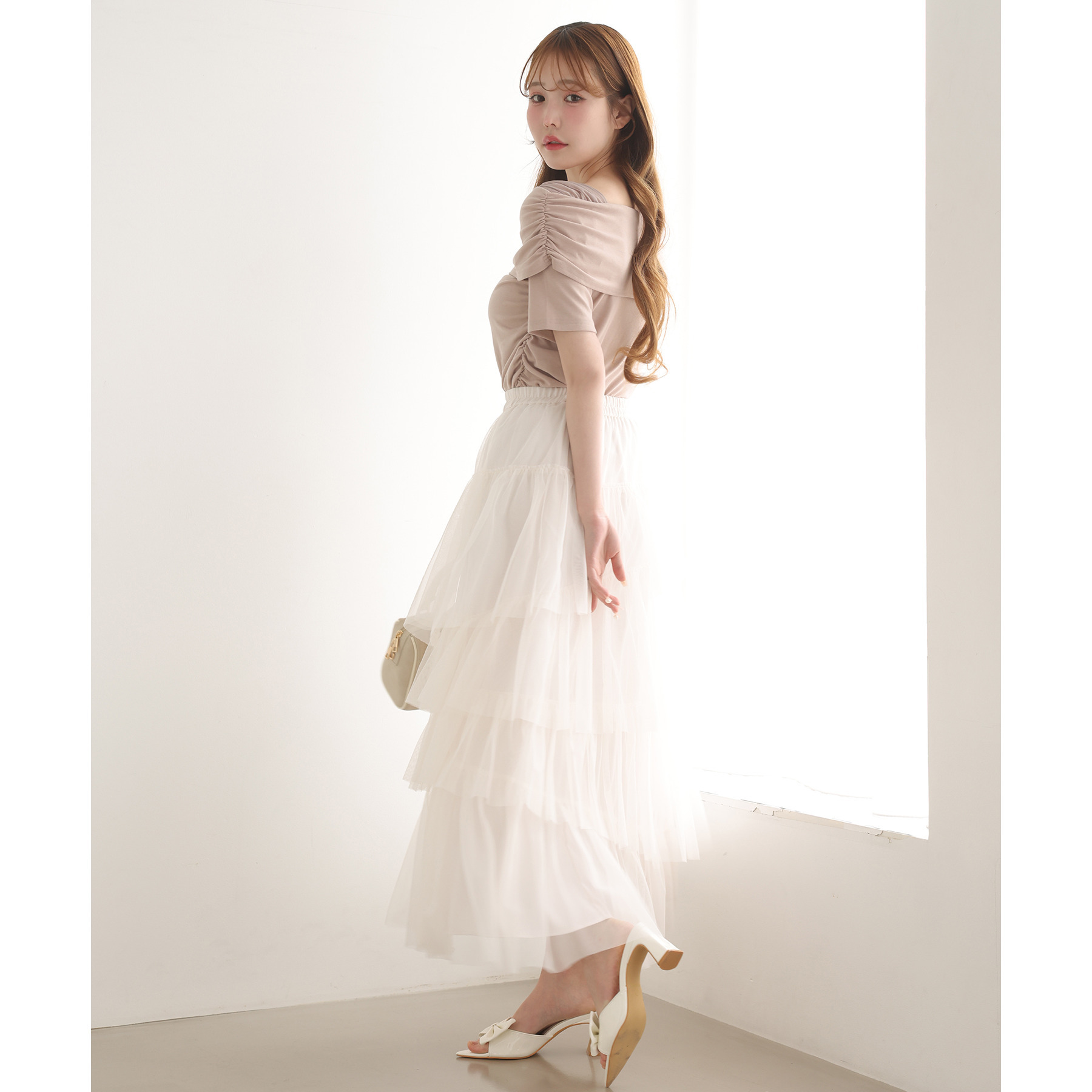 オフショル部分は大きく折り返しているので大人っぽい印象に。