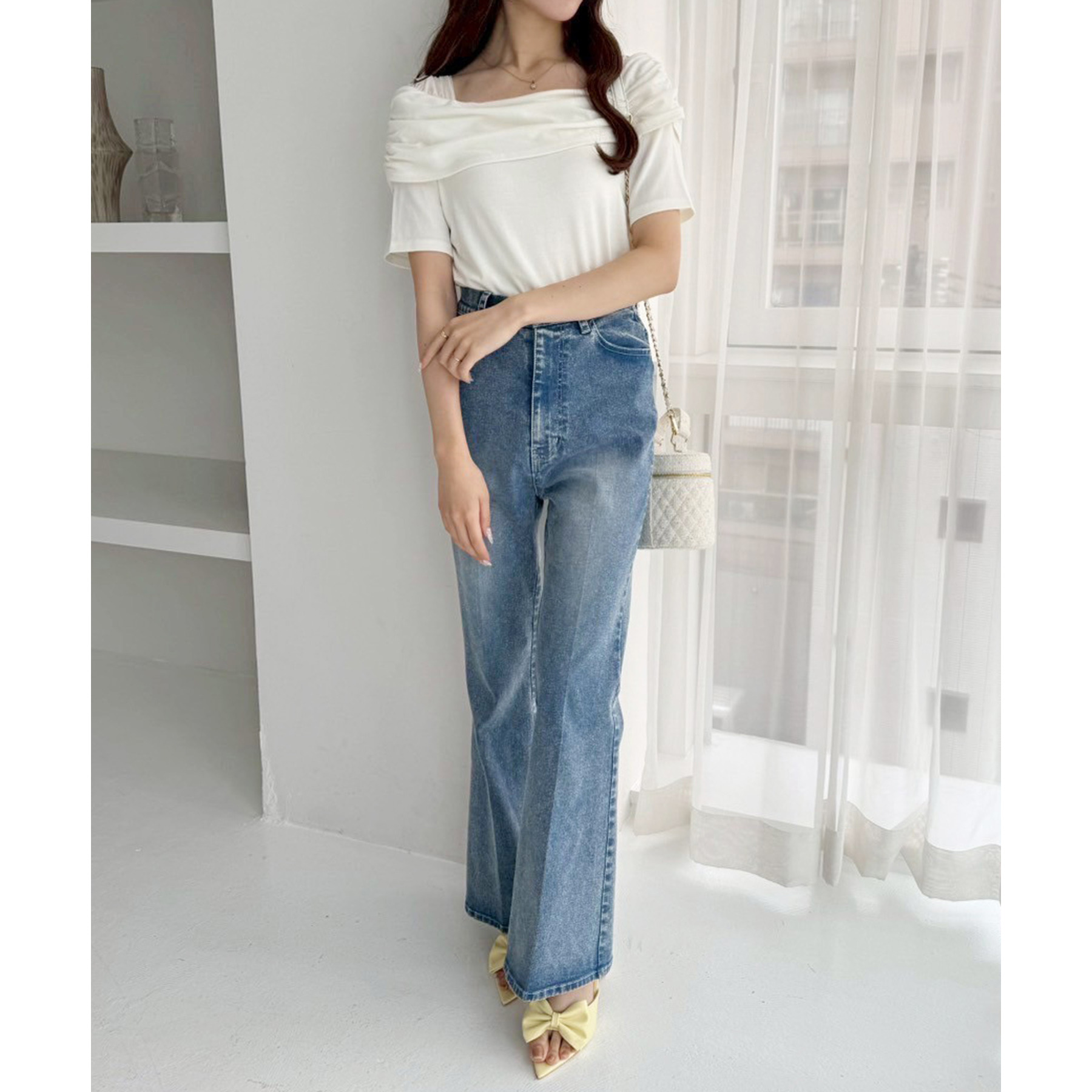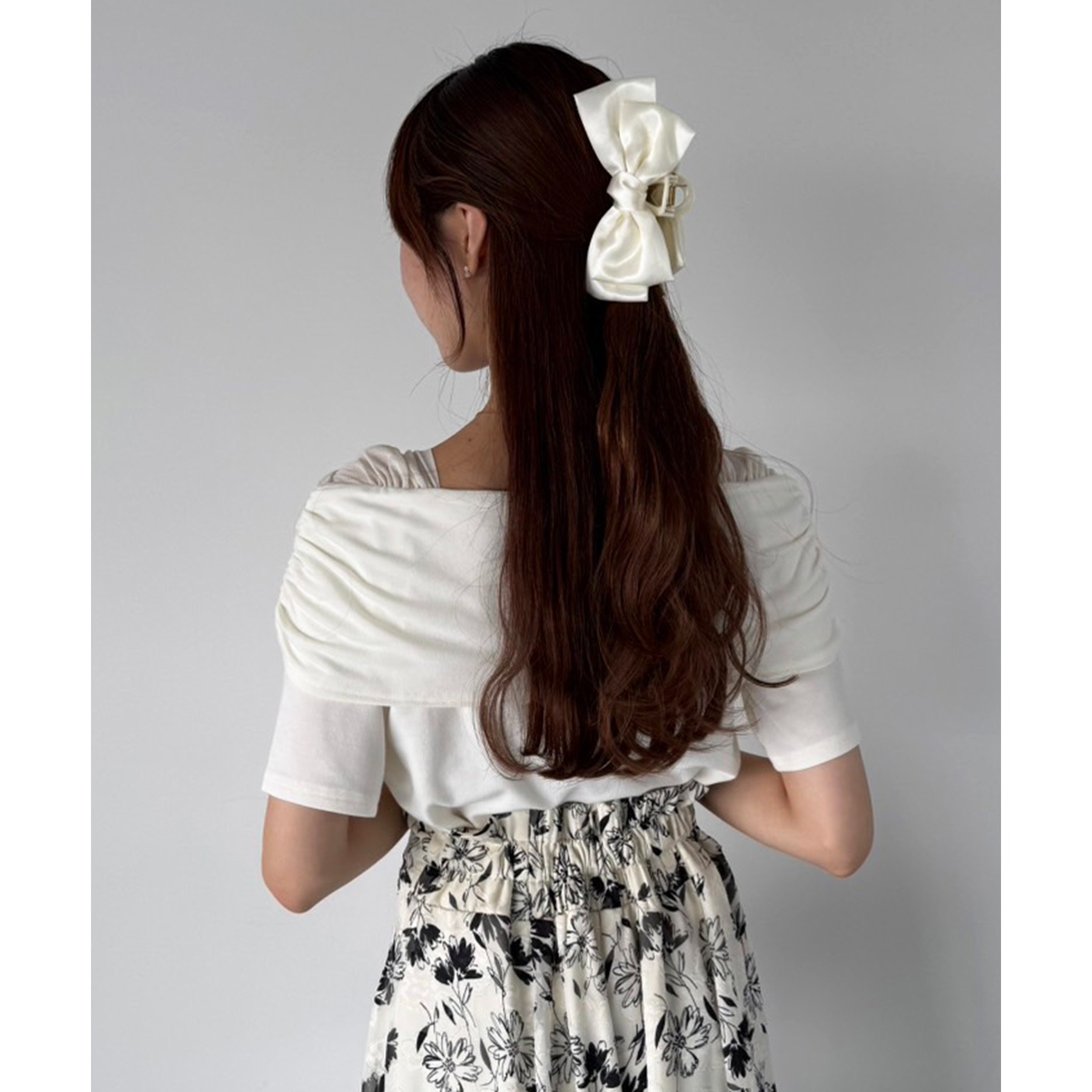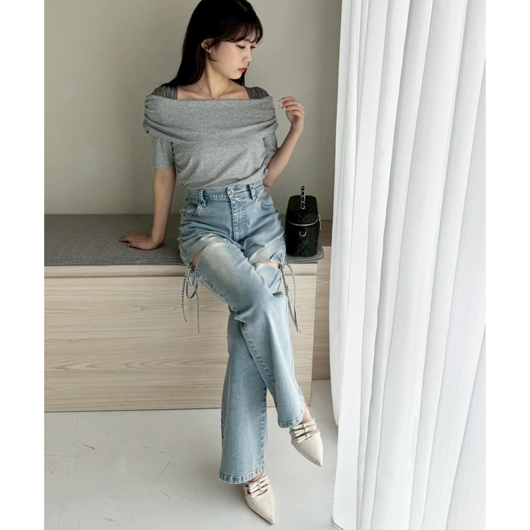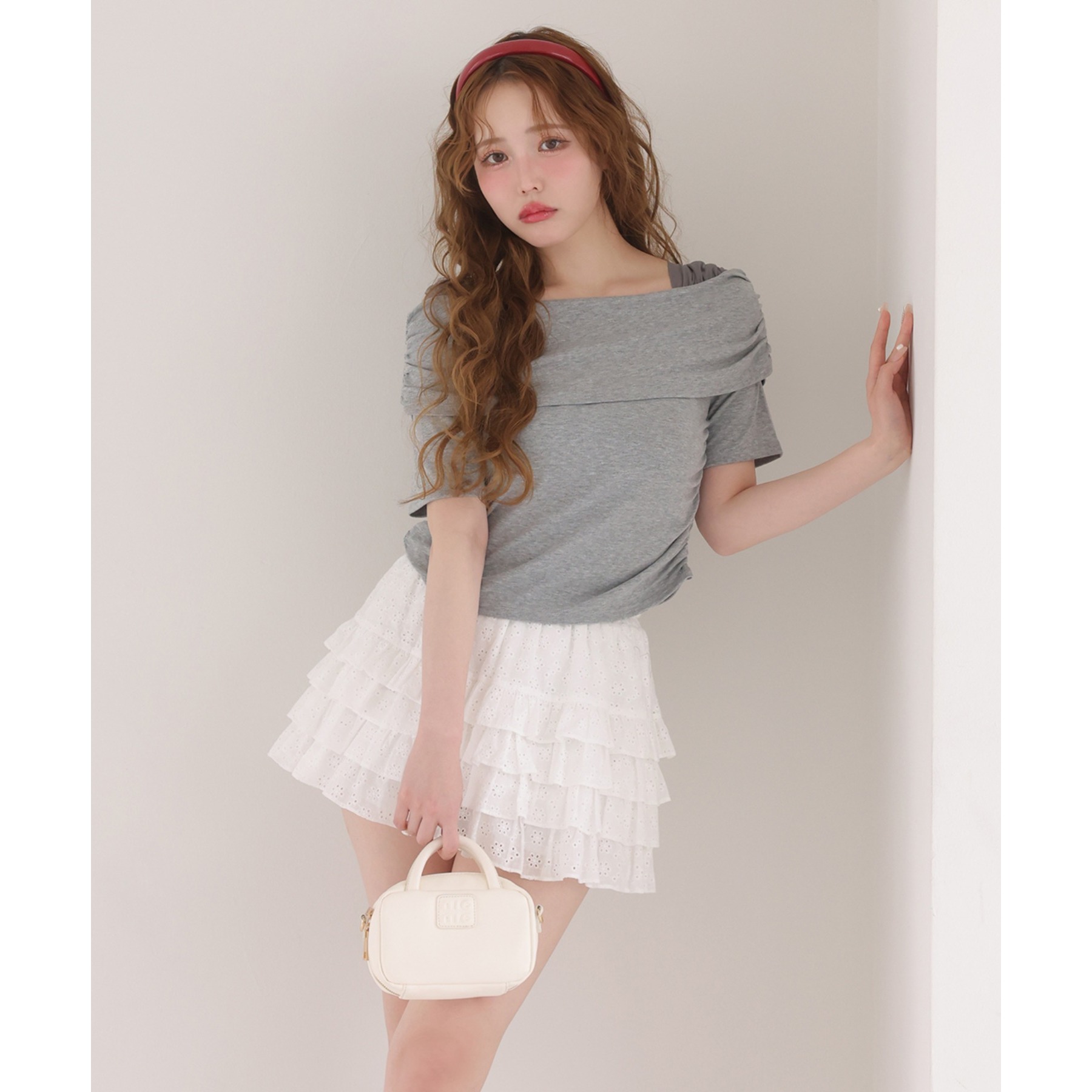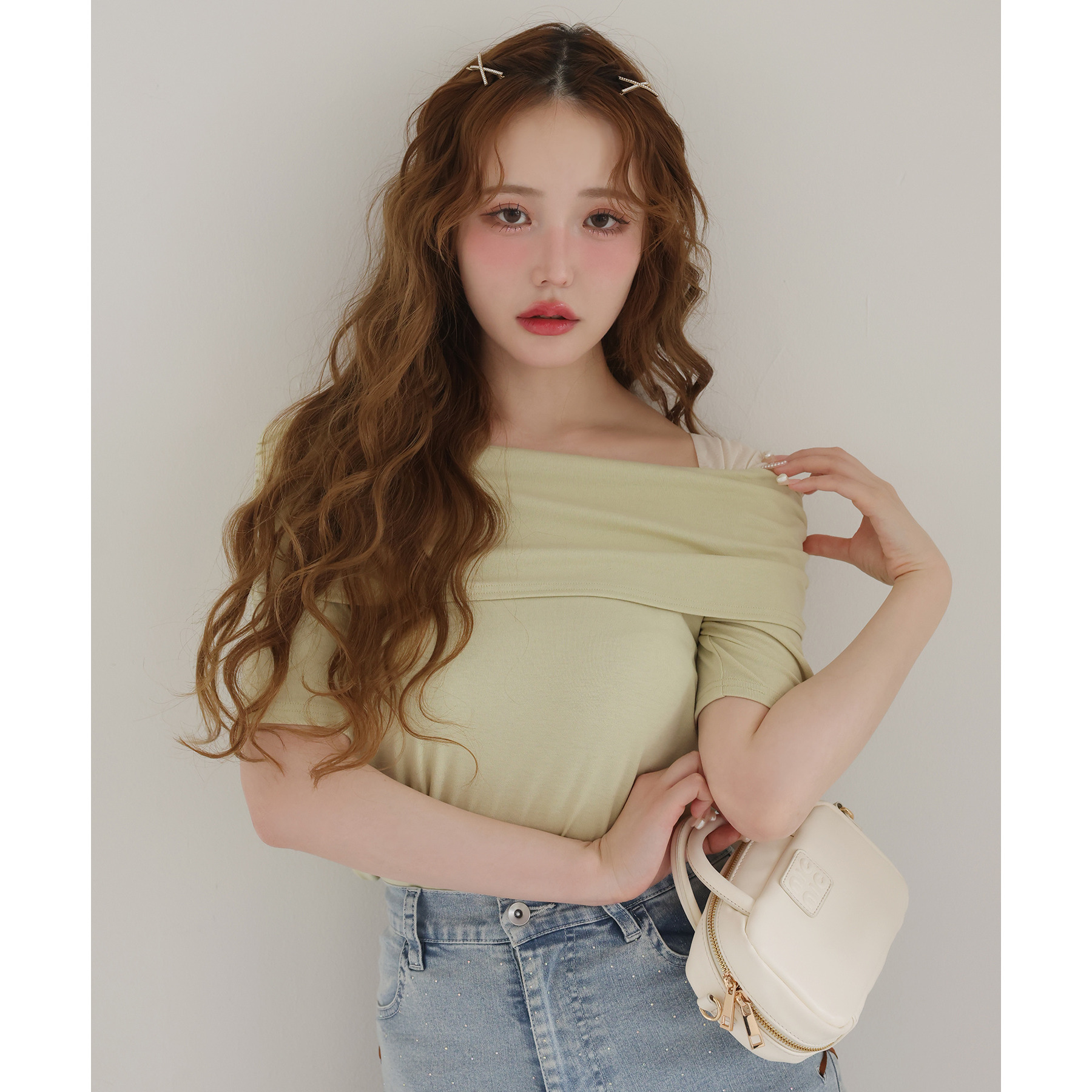 オフショル部分は大きく折り返しているので大人っぽい印象に。