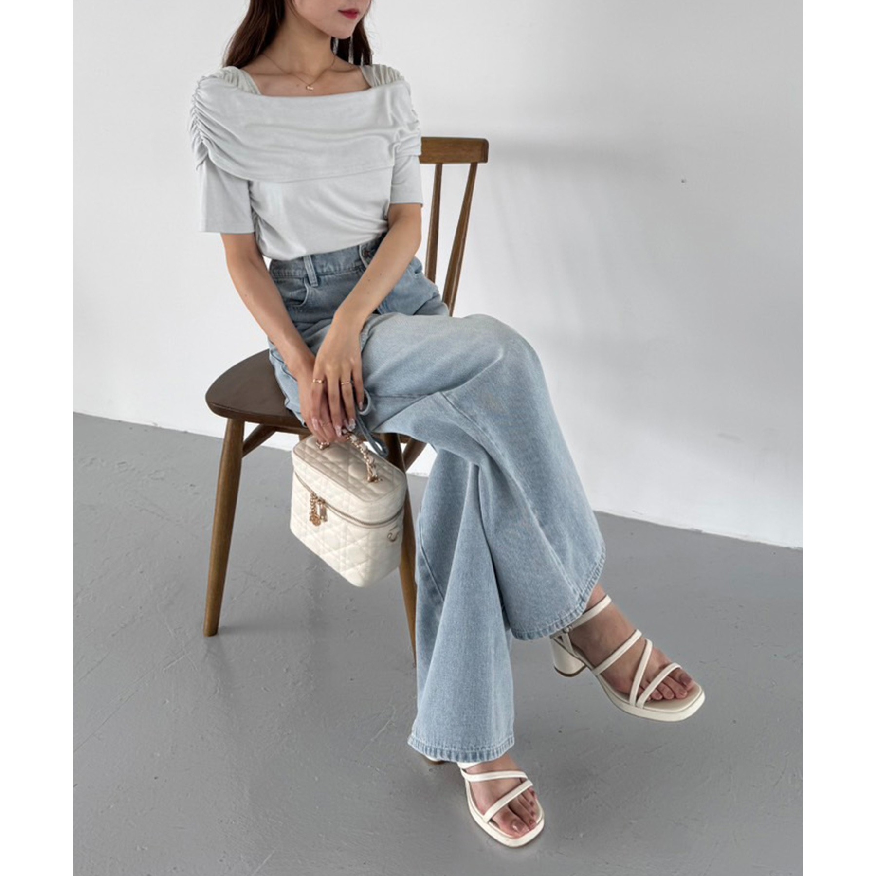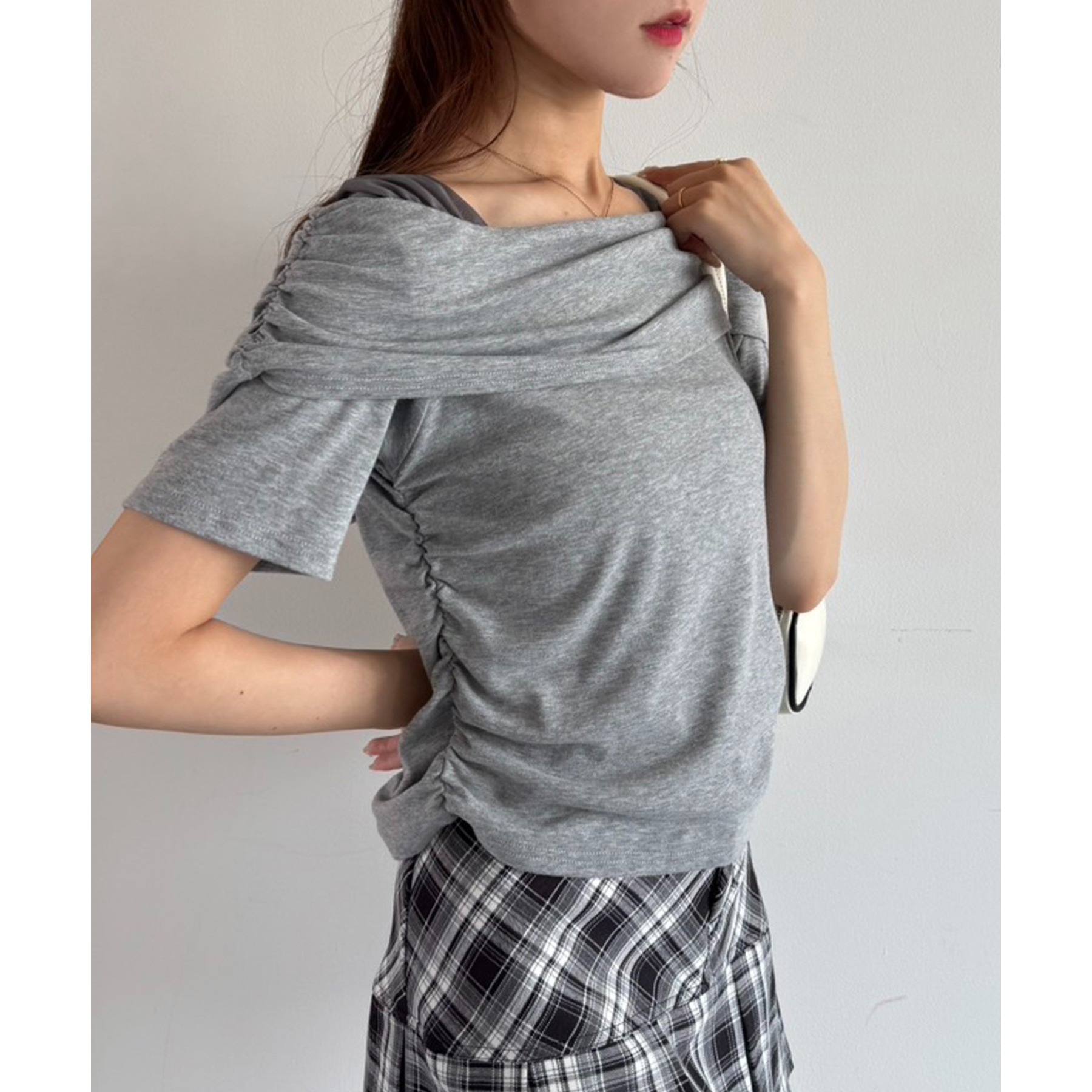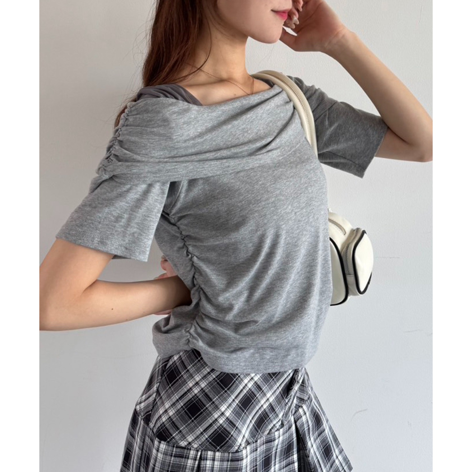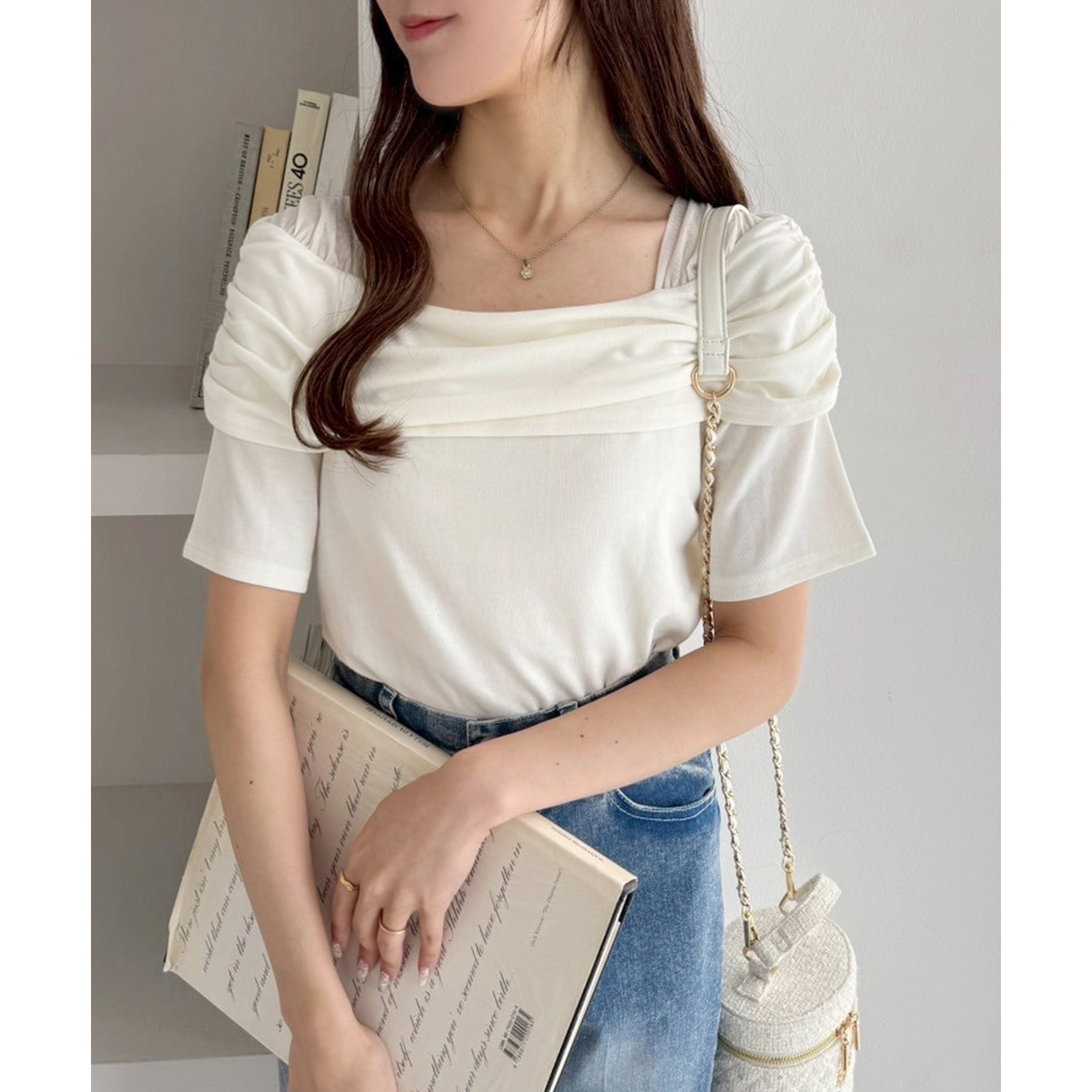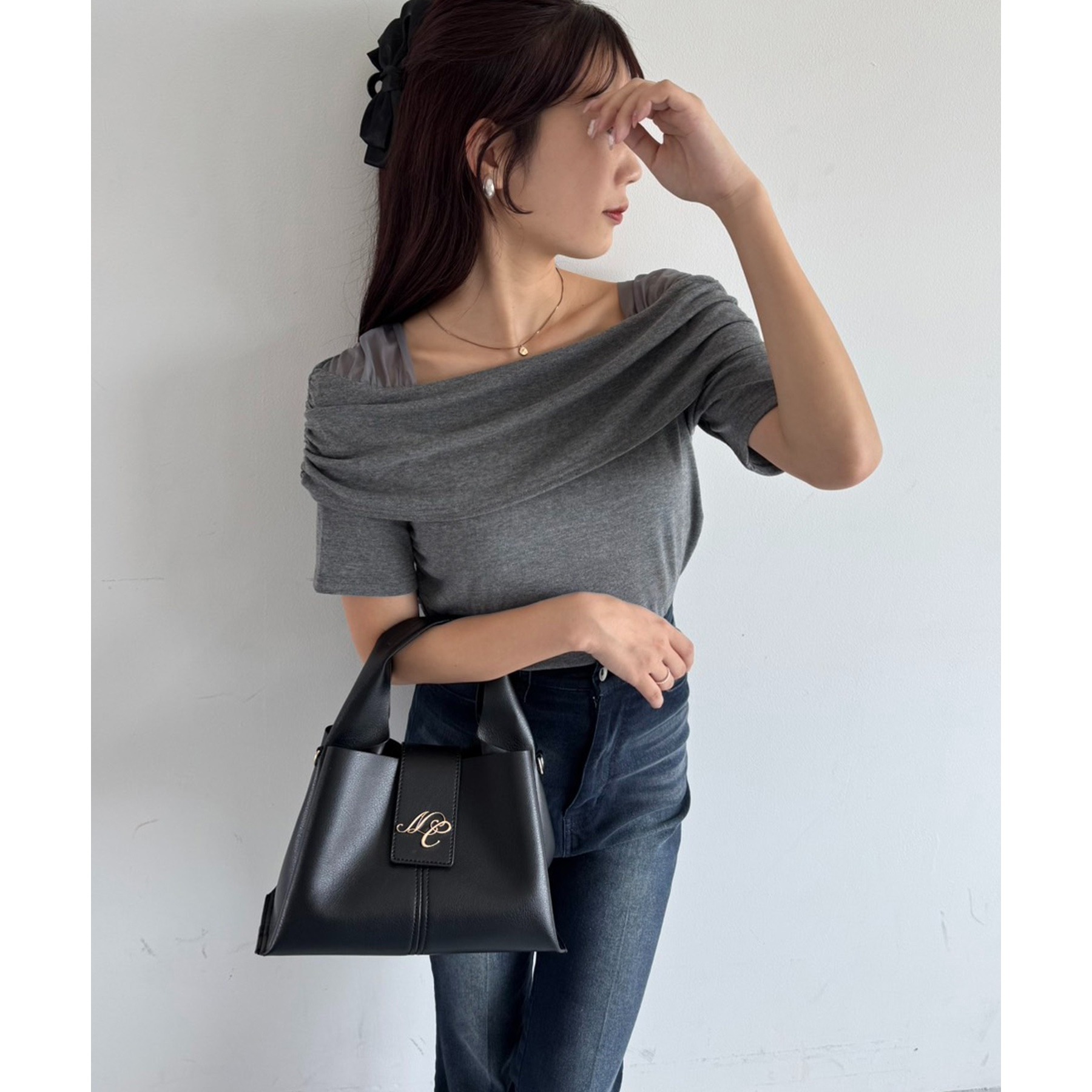 オフショル部分は大きく折り返しているので大人っぽい印象に。