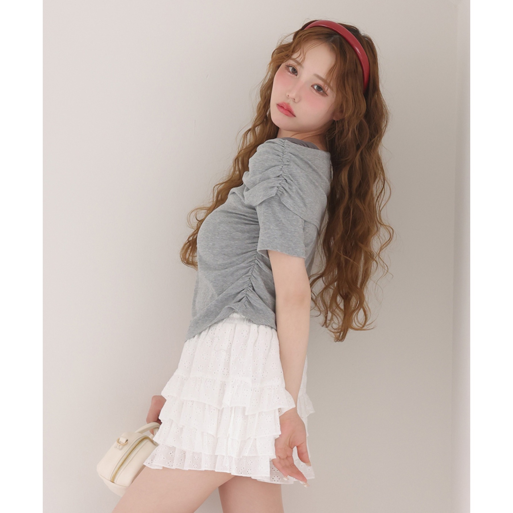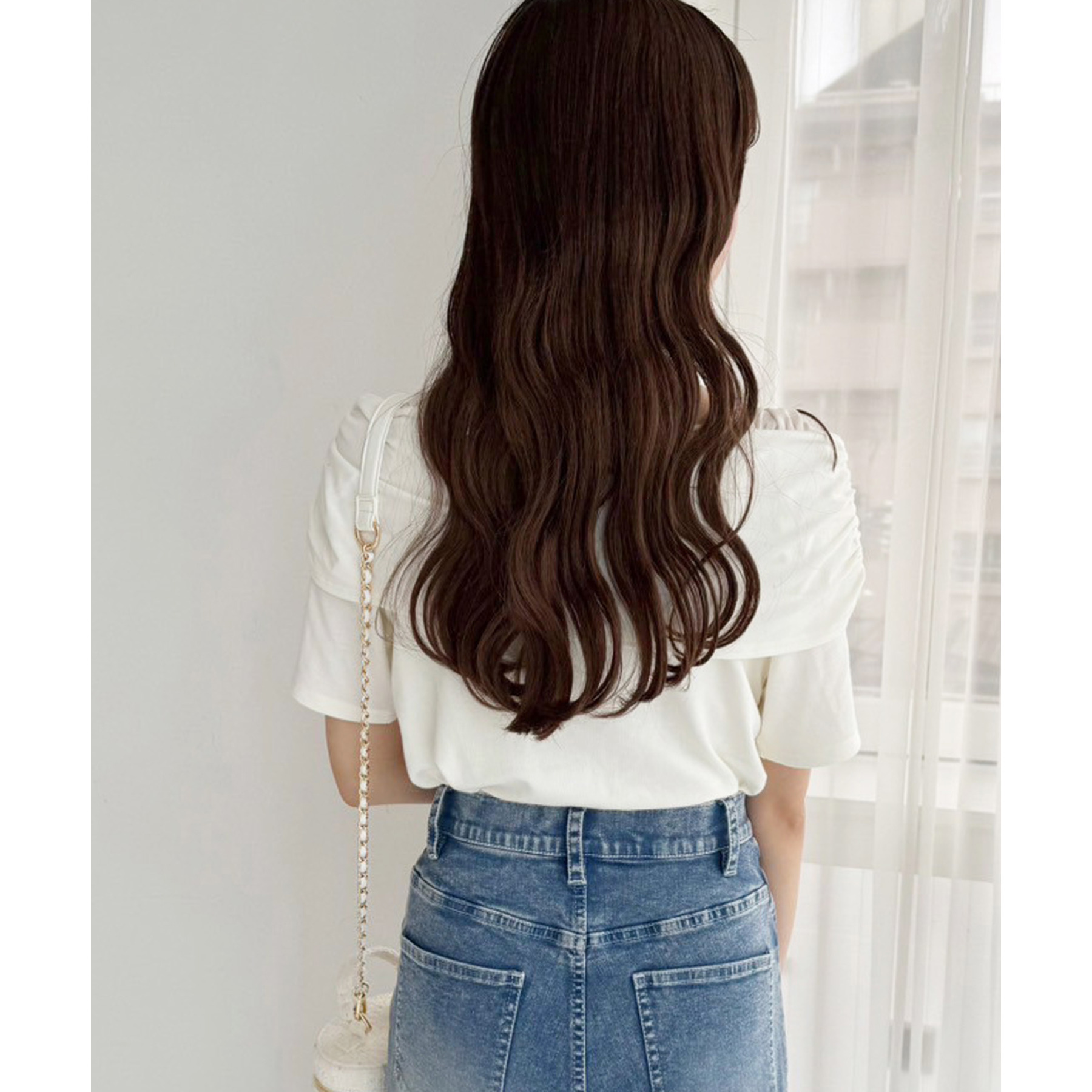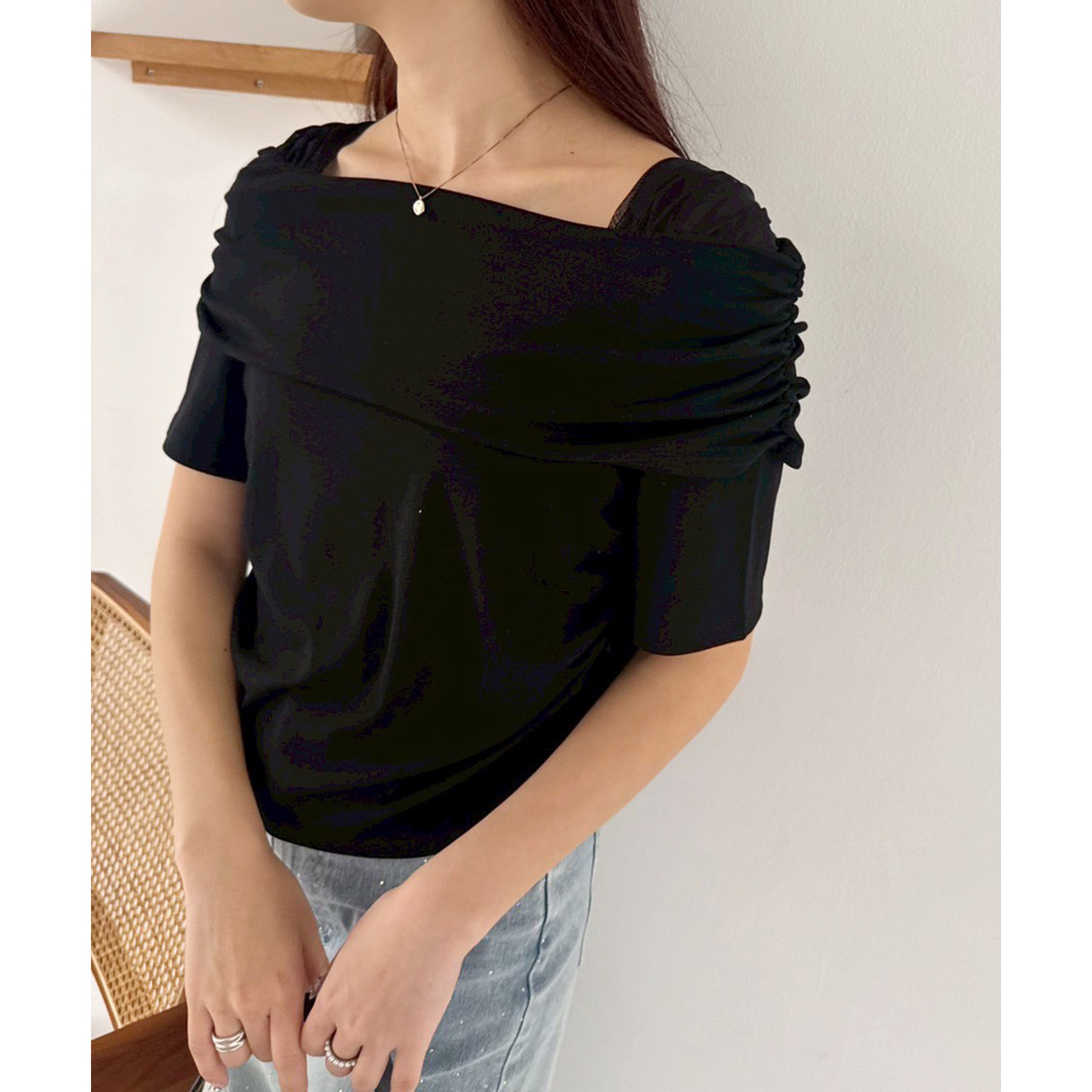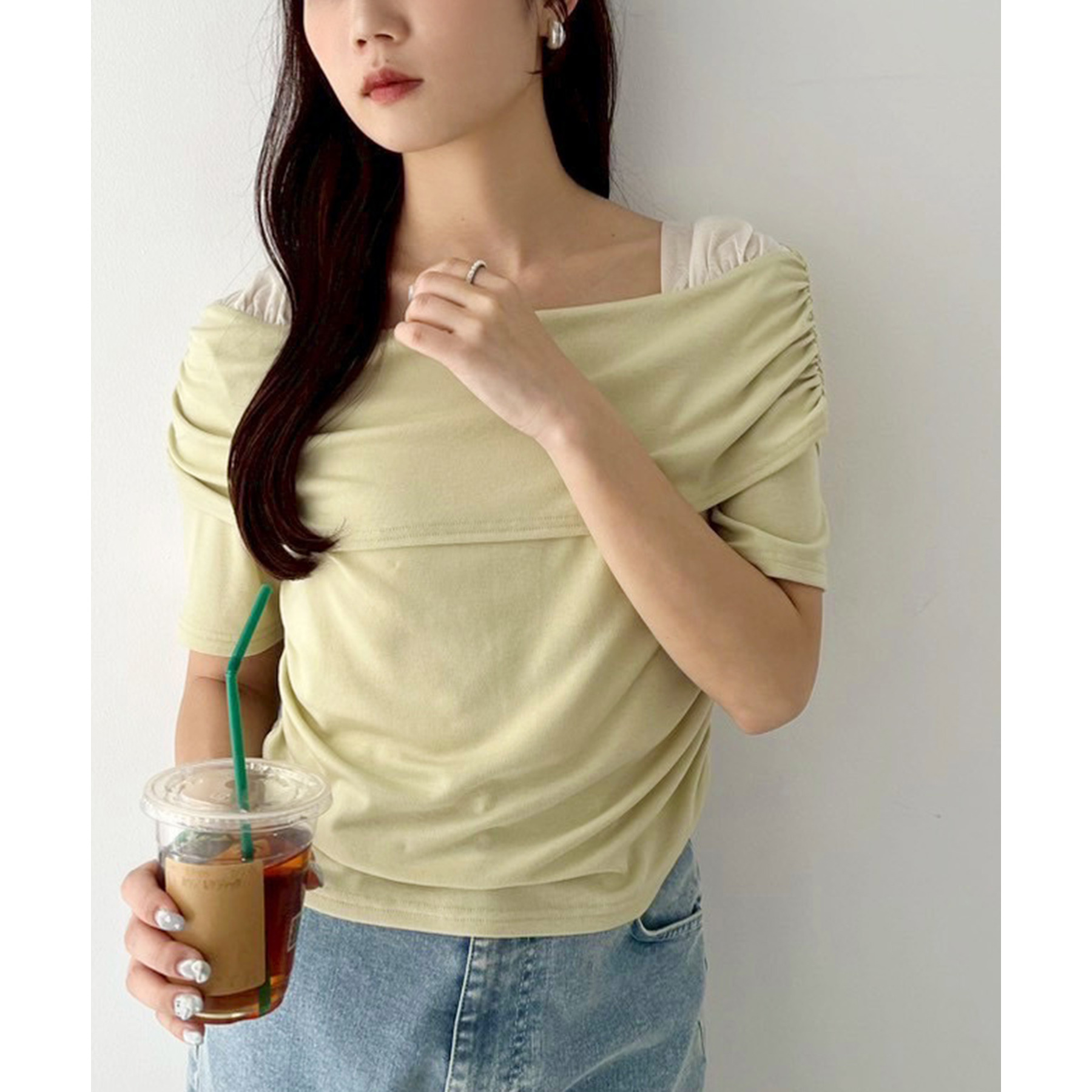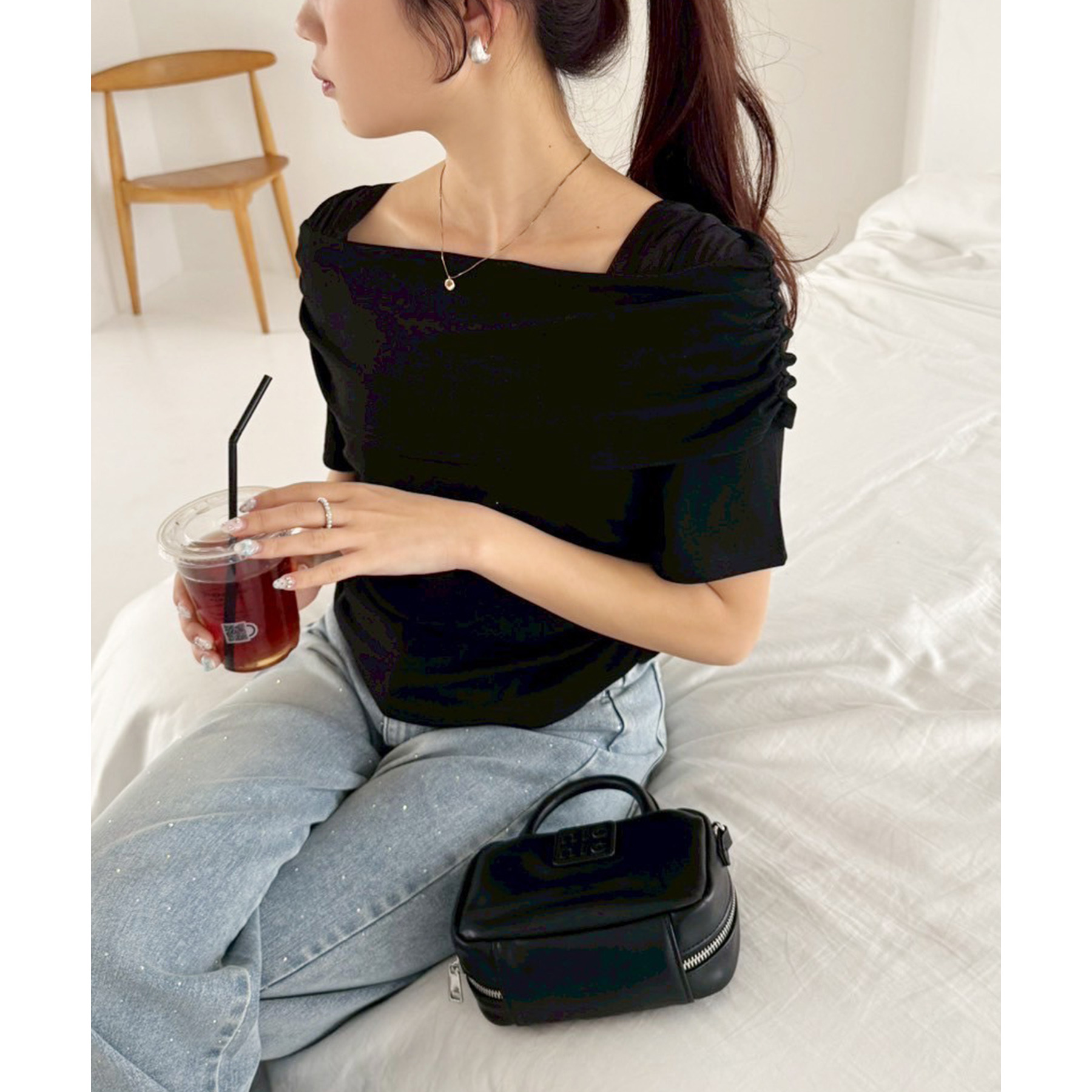 オフショル部分は大きく折り返しているので大人っぽい印象に。