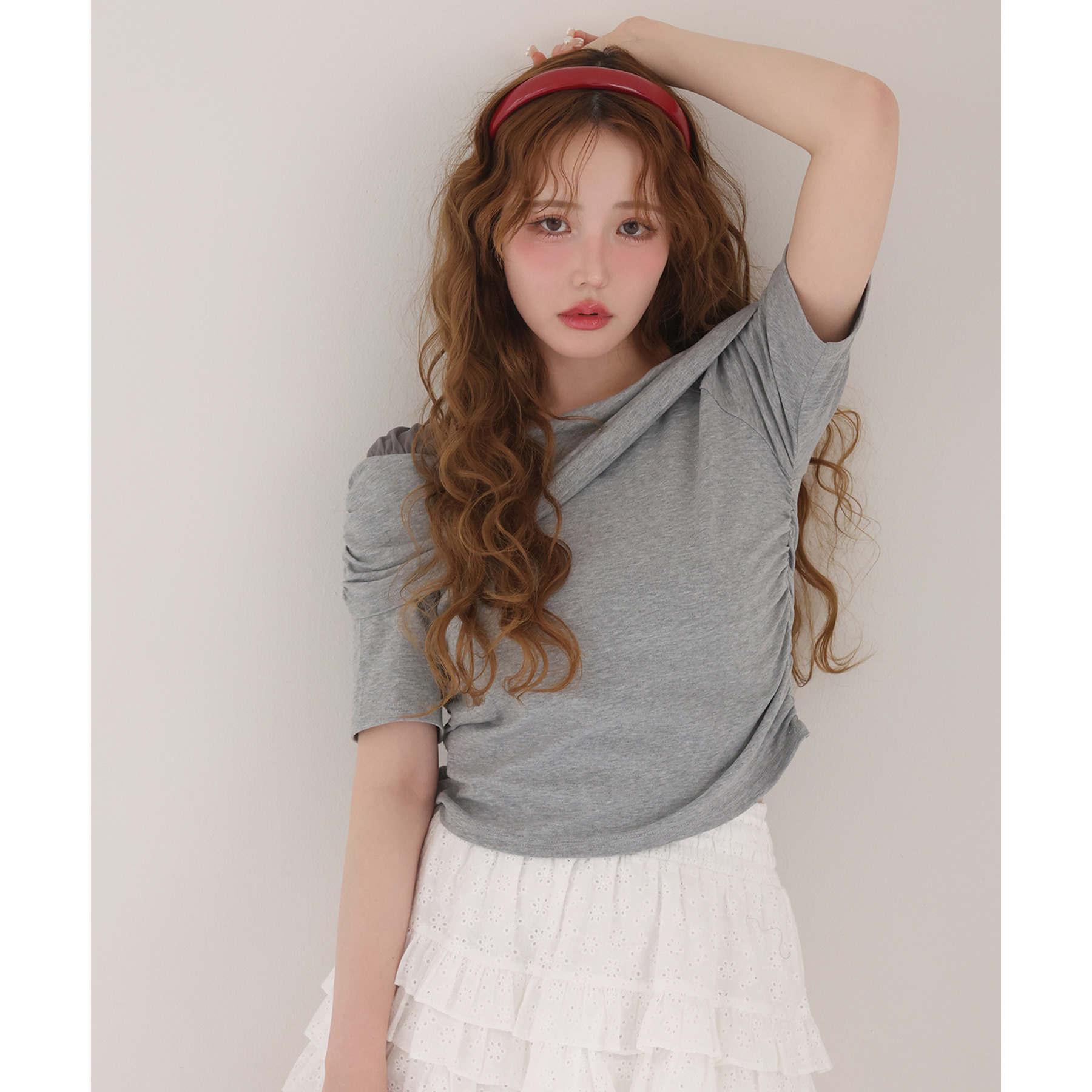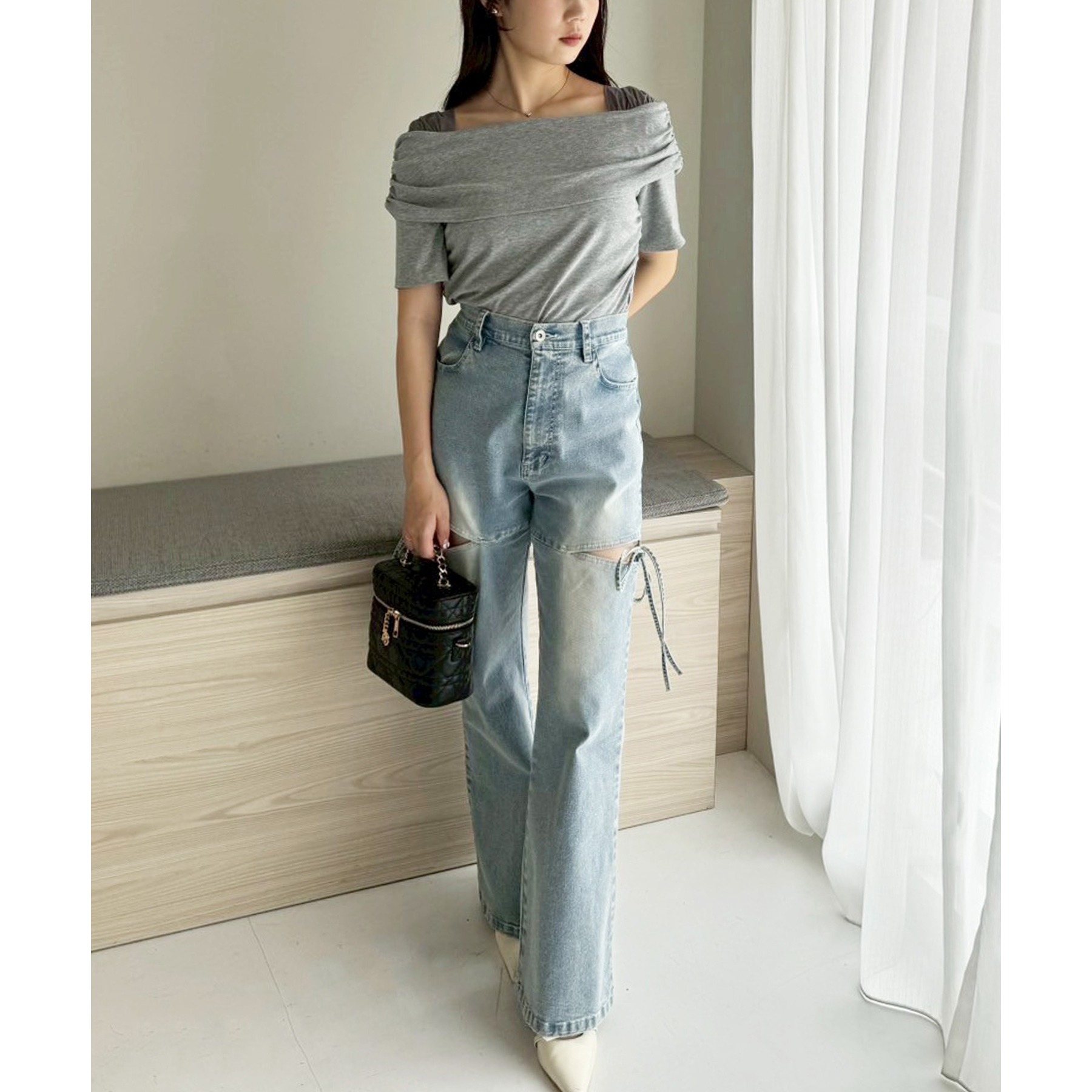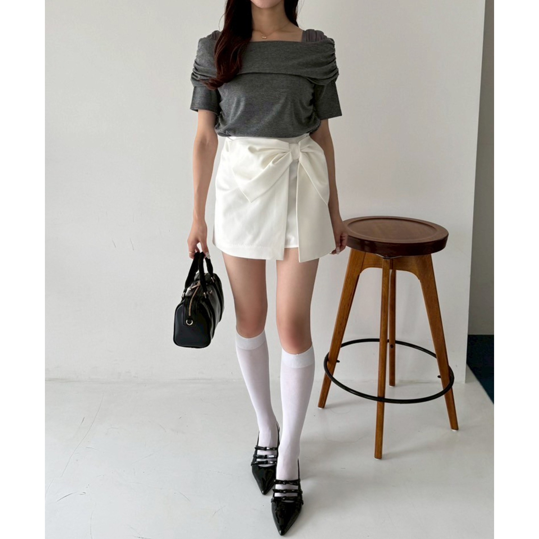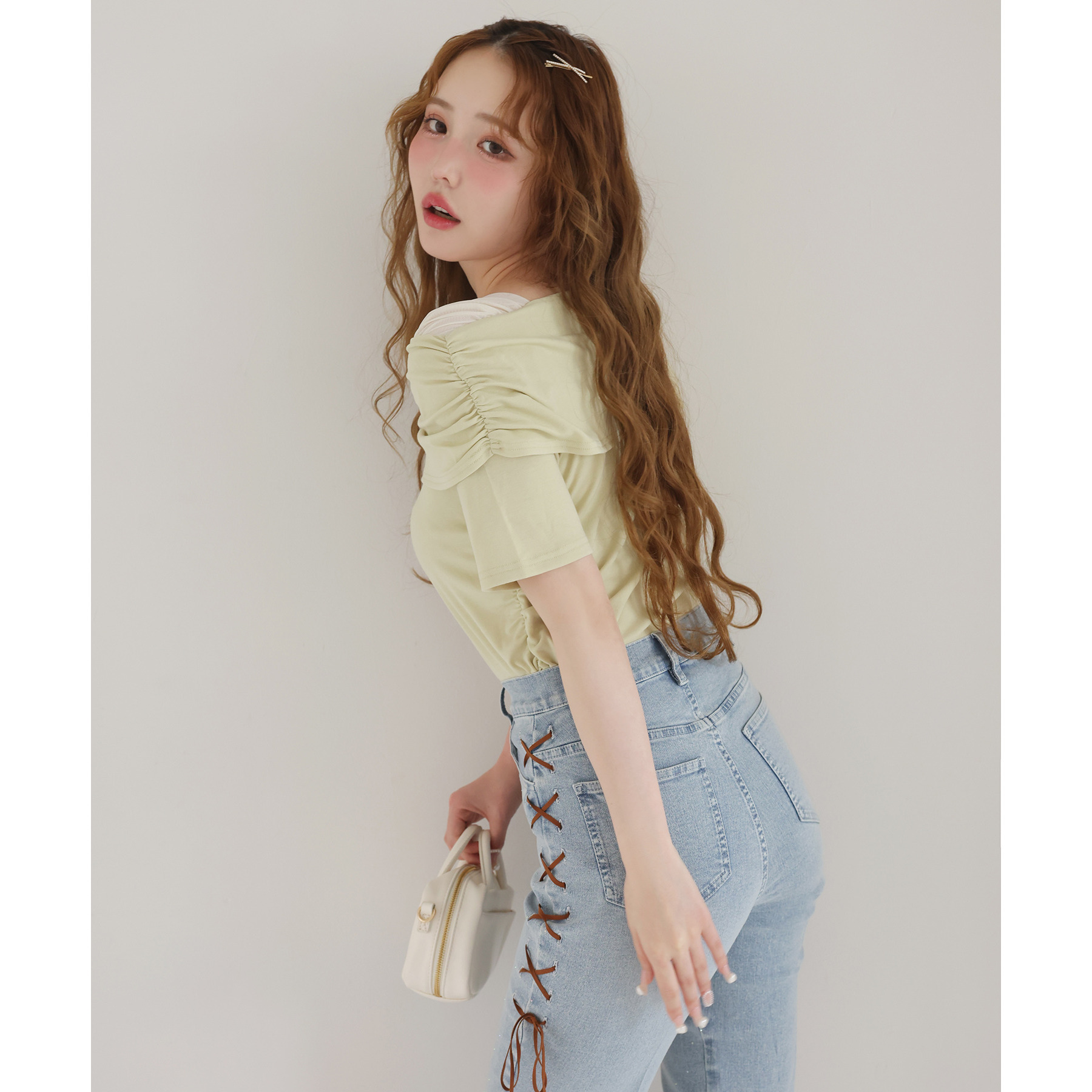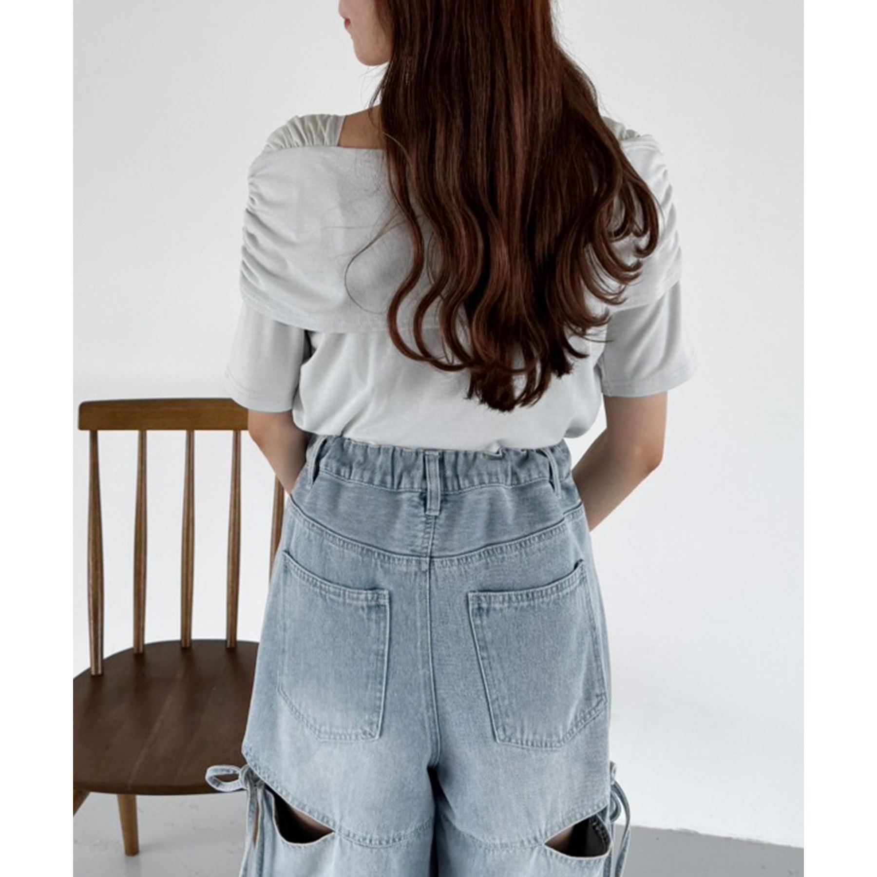 オフショル部分は大きく折り返しているので大人っぽい印象に。