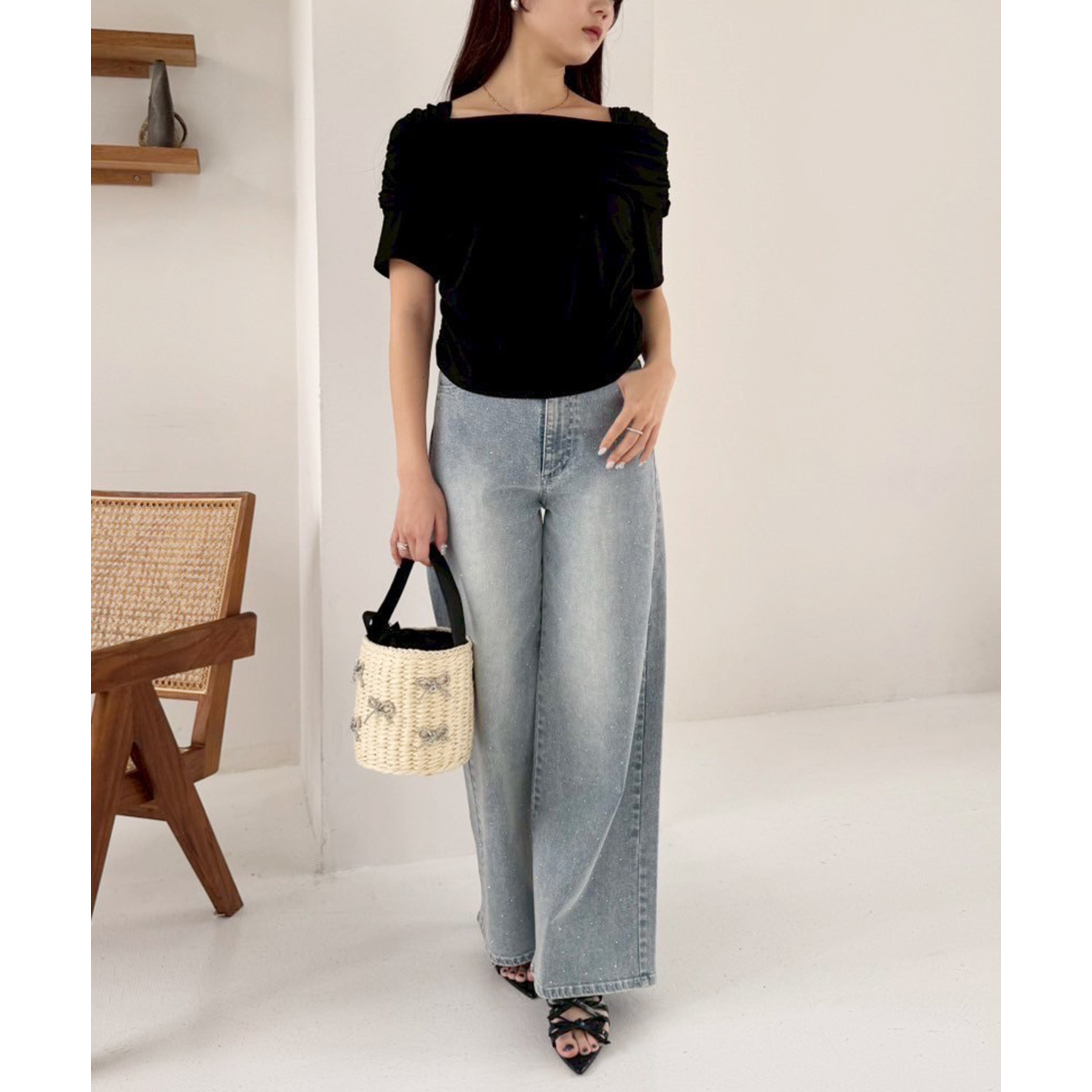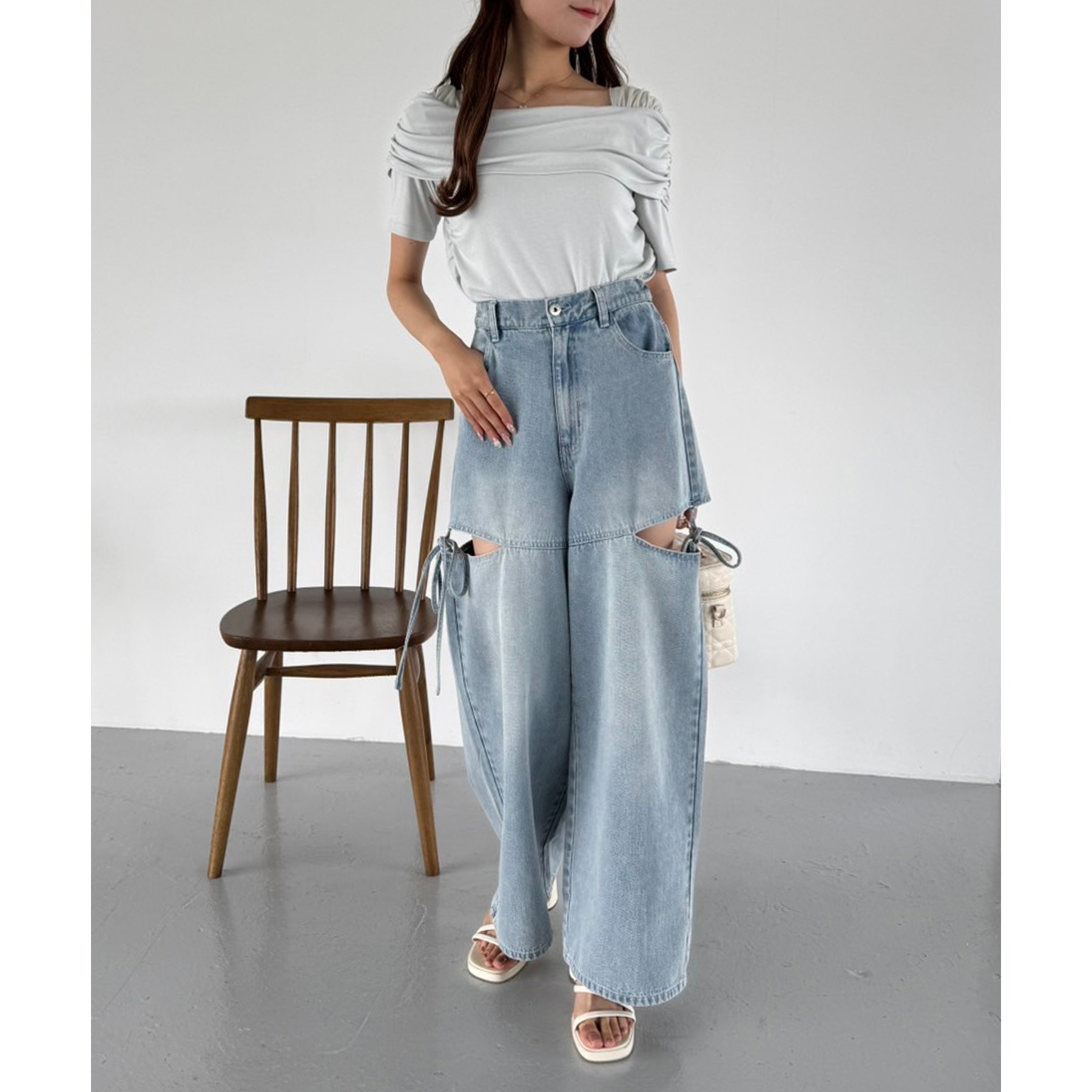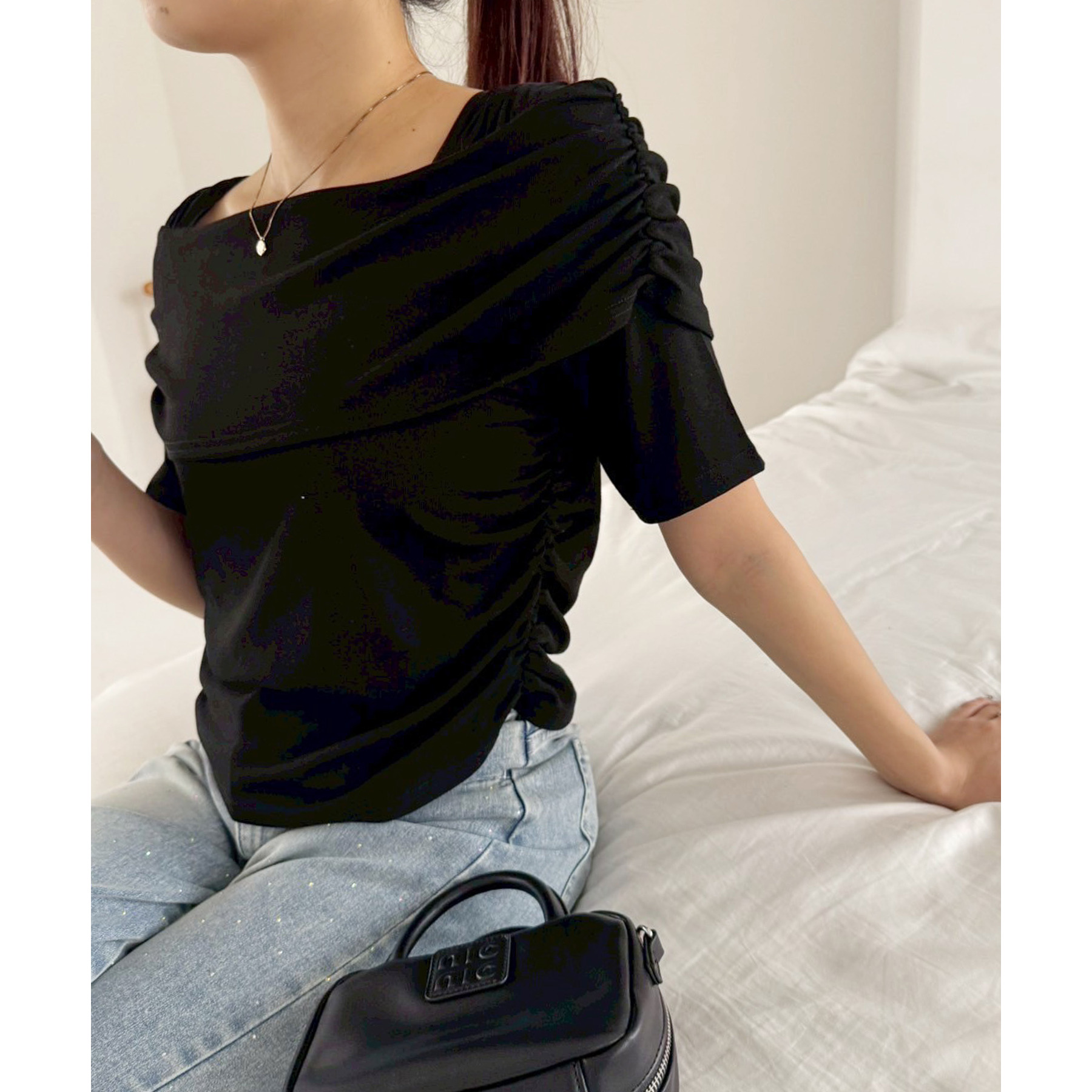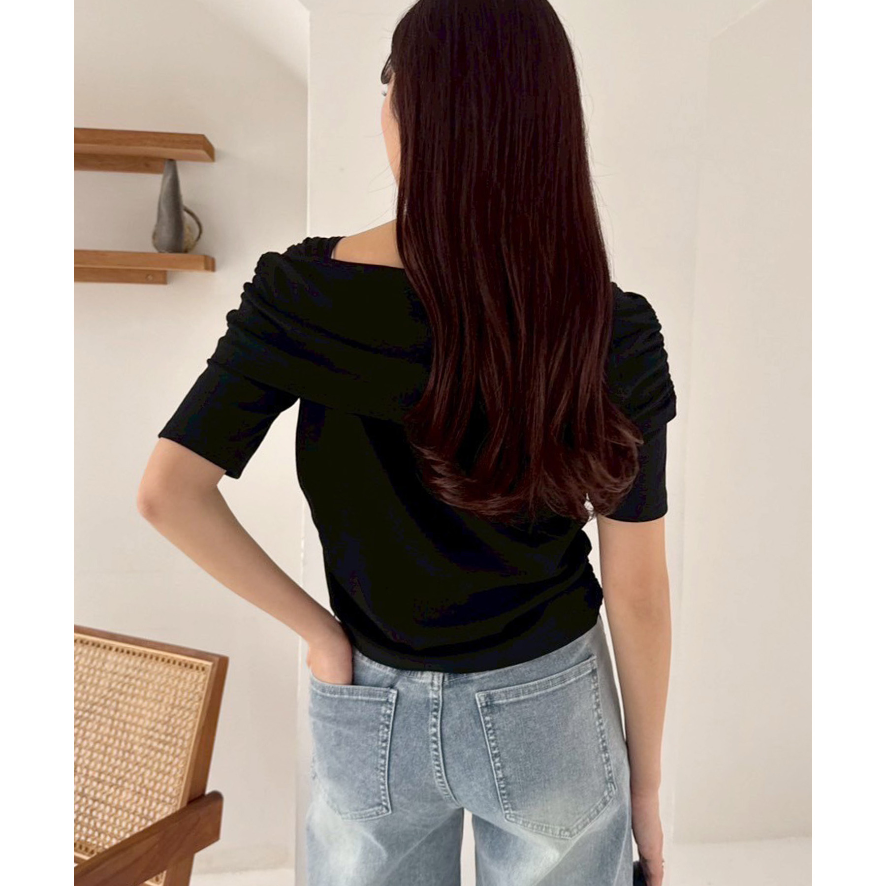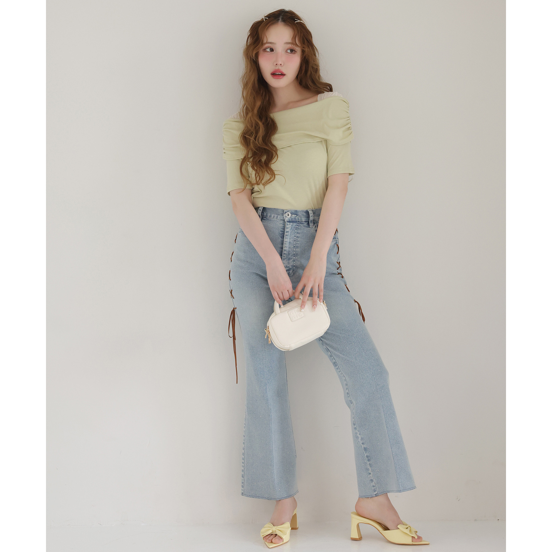 オフショル部分は大きく折り返しているので大人っぽい印象に。