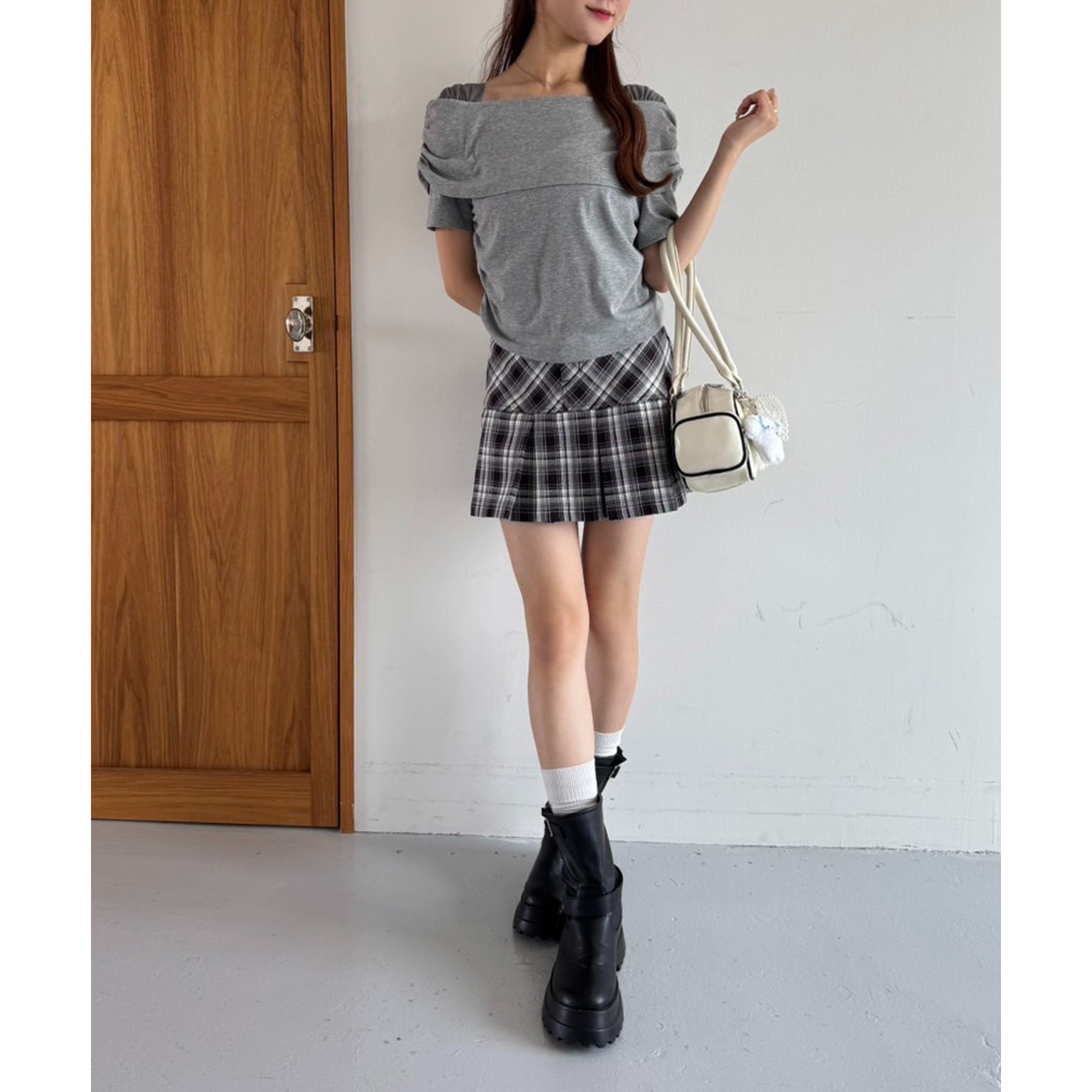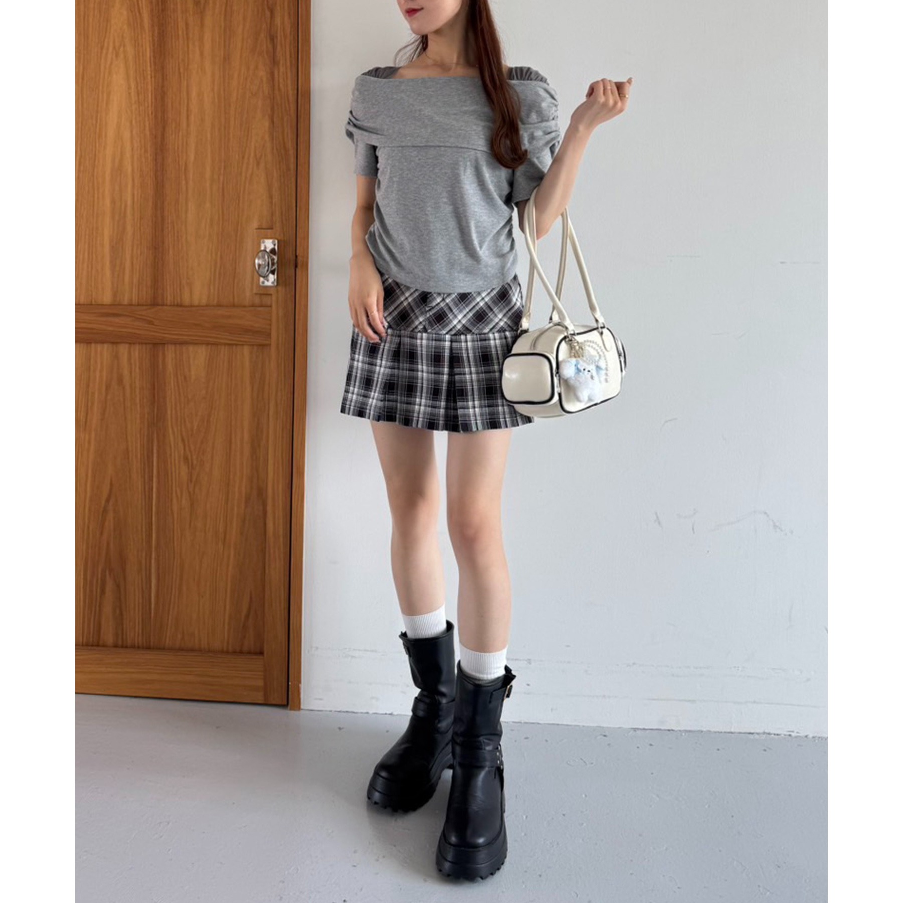 ミニボトムにロングブーツの合わせや、